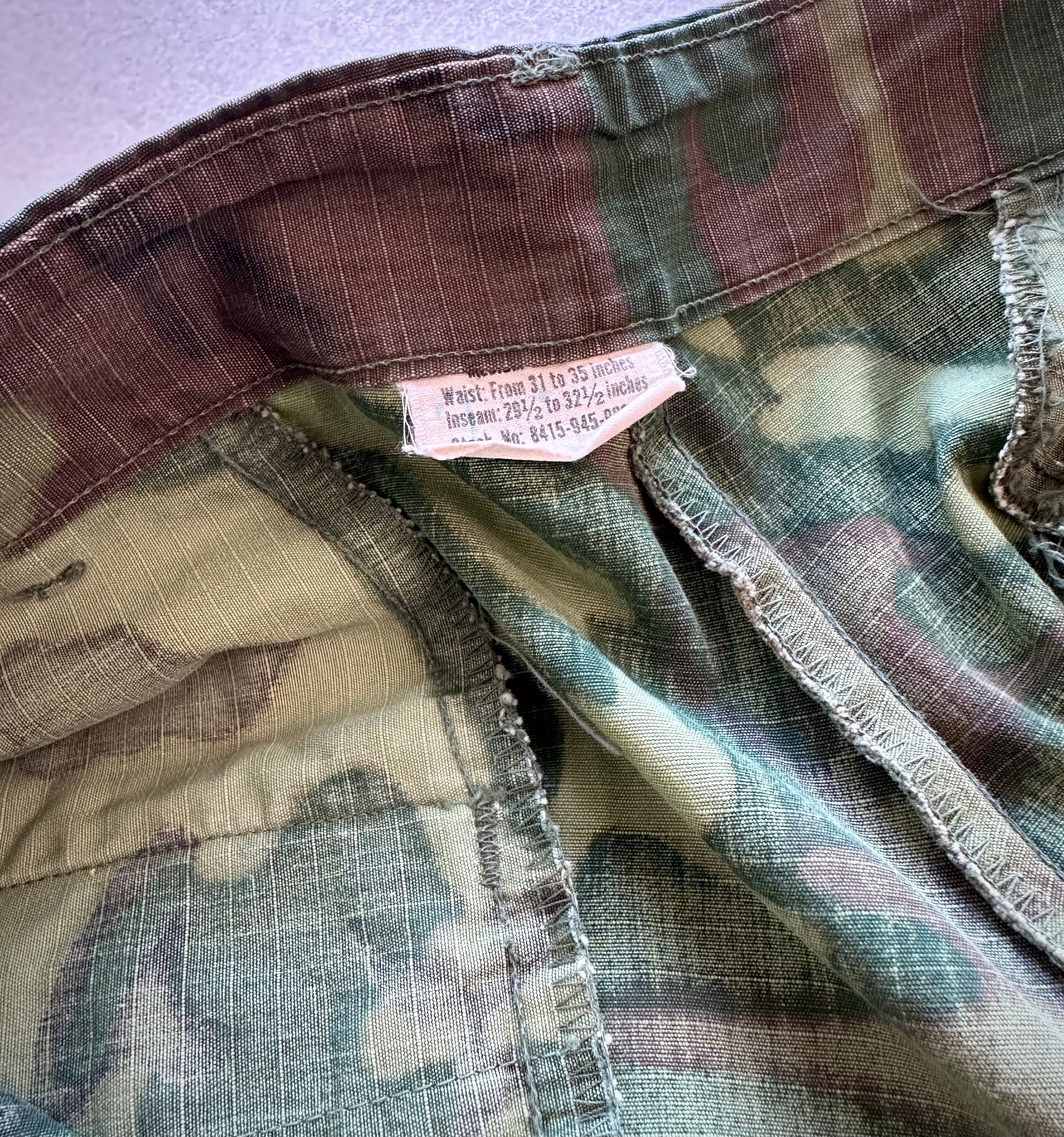 68s “ US.ARMY ” ERDL GREEN LEAF RIP-STOP JUNGLE FATIGUE OLD VINTAGE 。