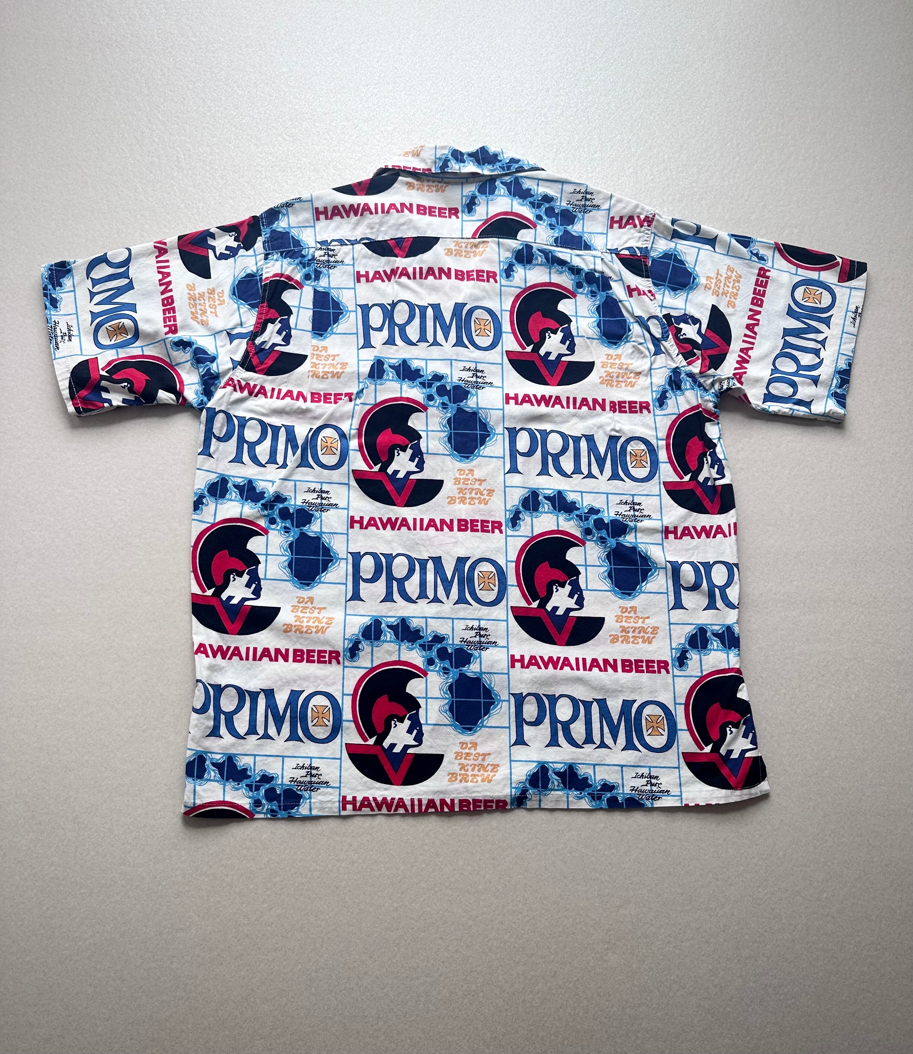 数多あるラインナップでも非常に人気の高いハワイの伝統的なラガービール《 PRIMO BEER 》のデザインを全面に纏った雰囲気バッチリなハワイアンシャツ。