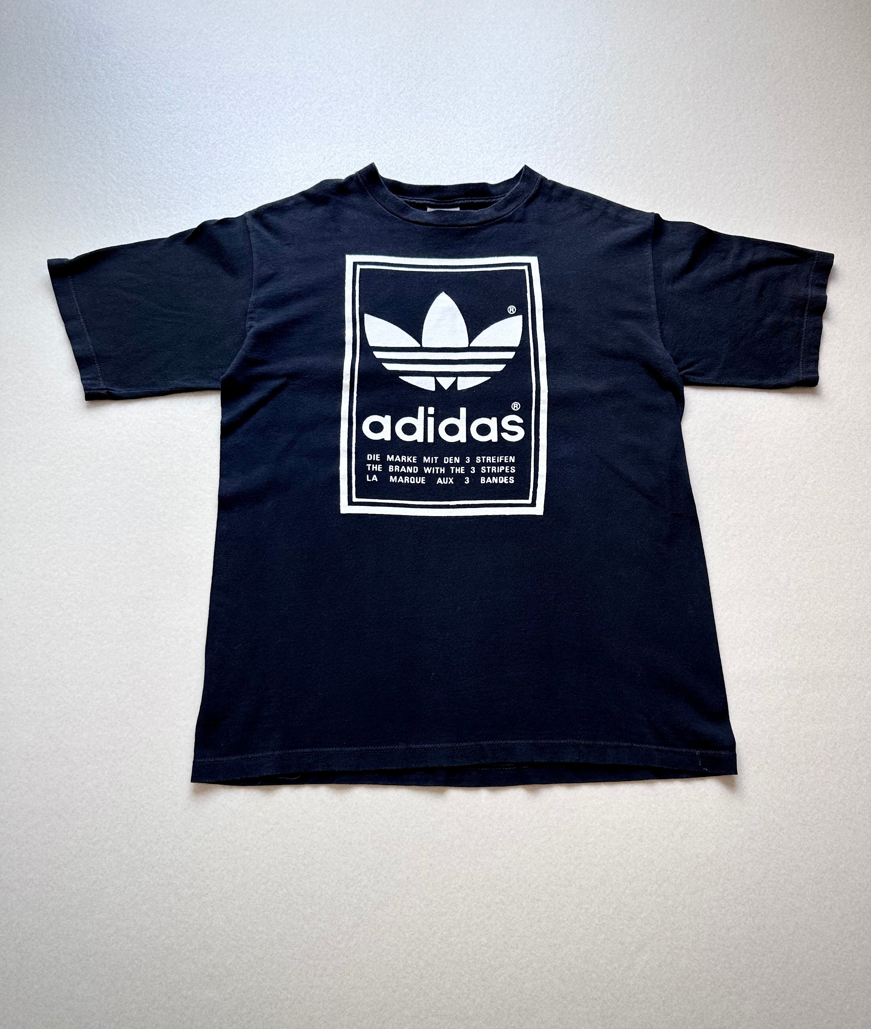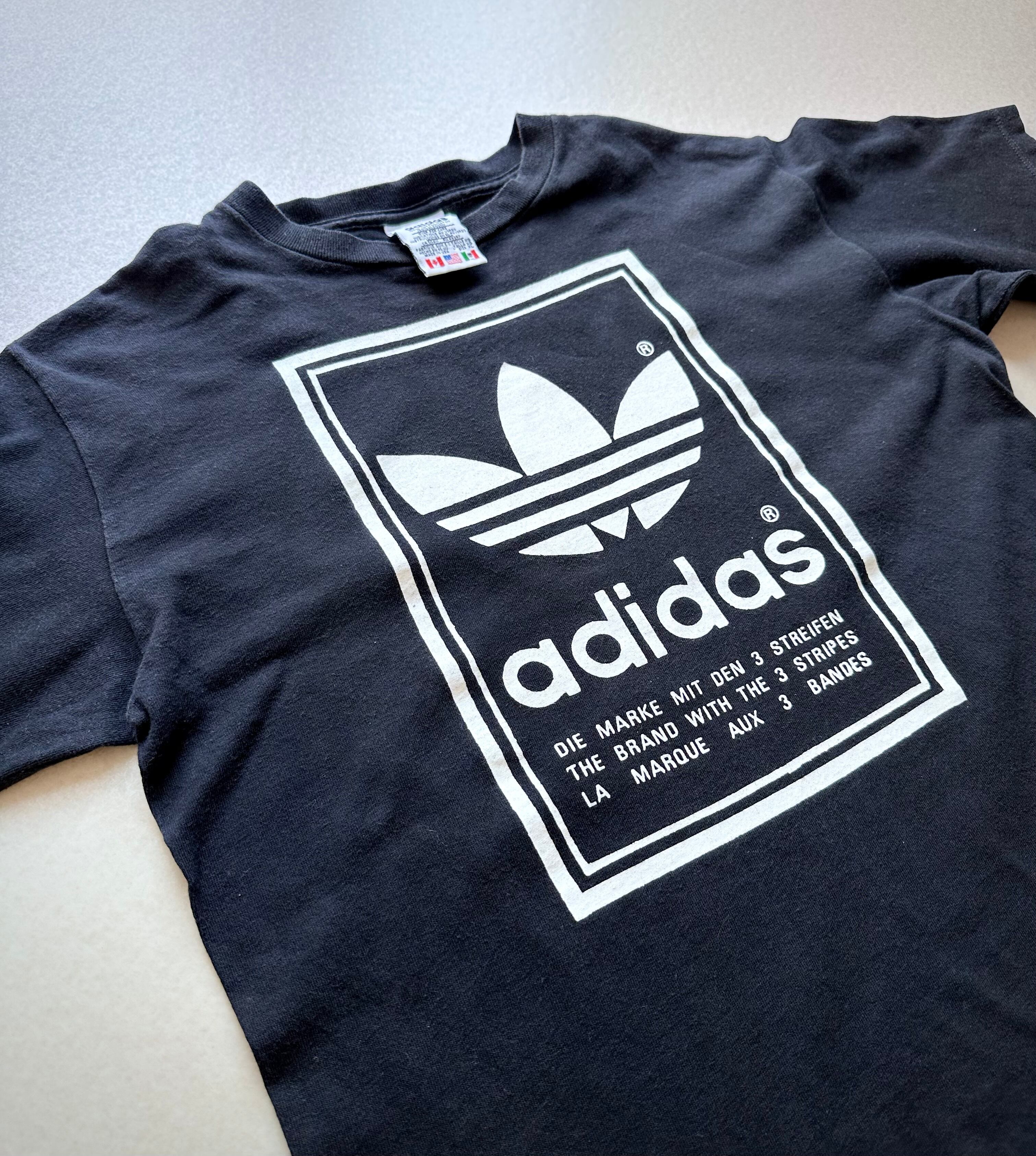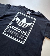 90s〜 MADE IN USA “ ADIDAS ” TREFOIL W-PRINT TEE BLACK OLD VINTAGE 。