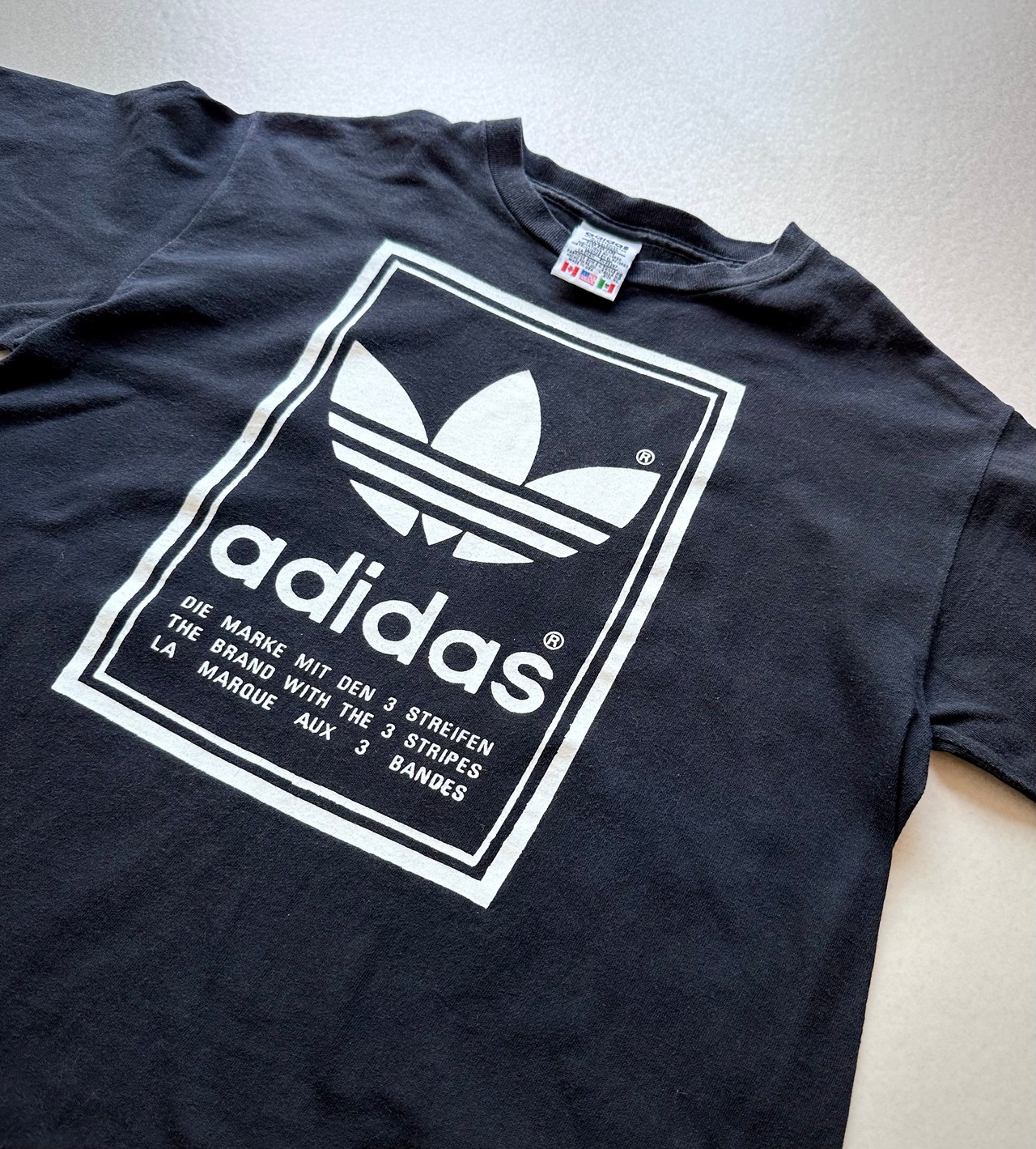 90s USA製 “ ADIDAS ” TREFOIL W-PRINT TEE BLACK OLD VINTAGE アメリカ製 アディダス トレフォイル ダブルプリントTシャツ オールド ビンテージ