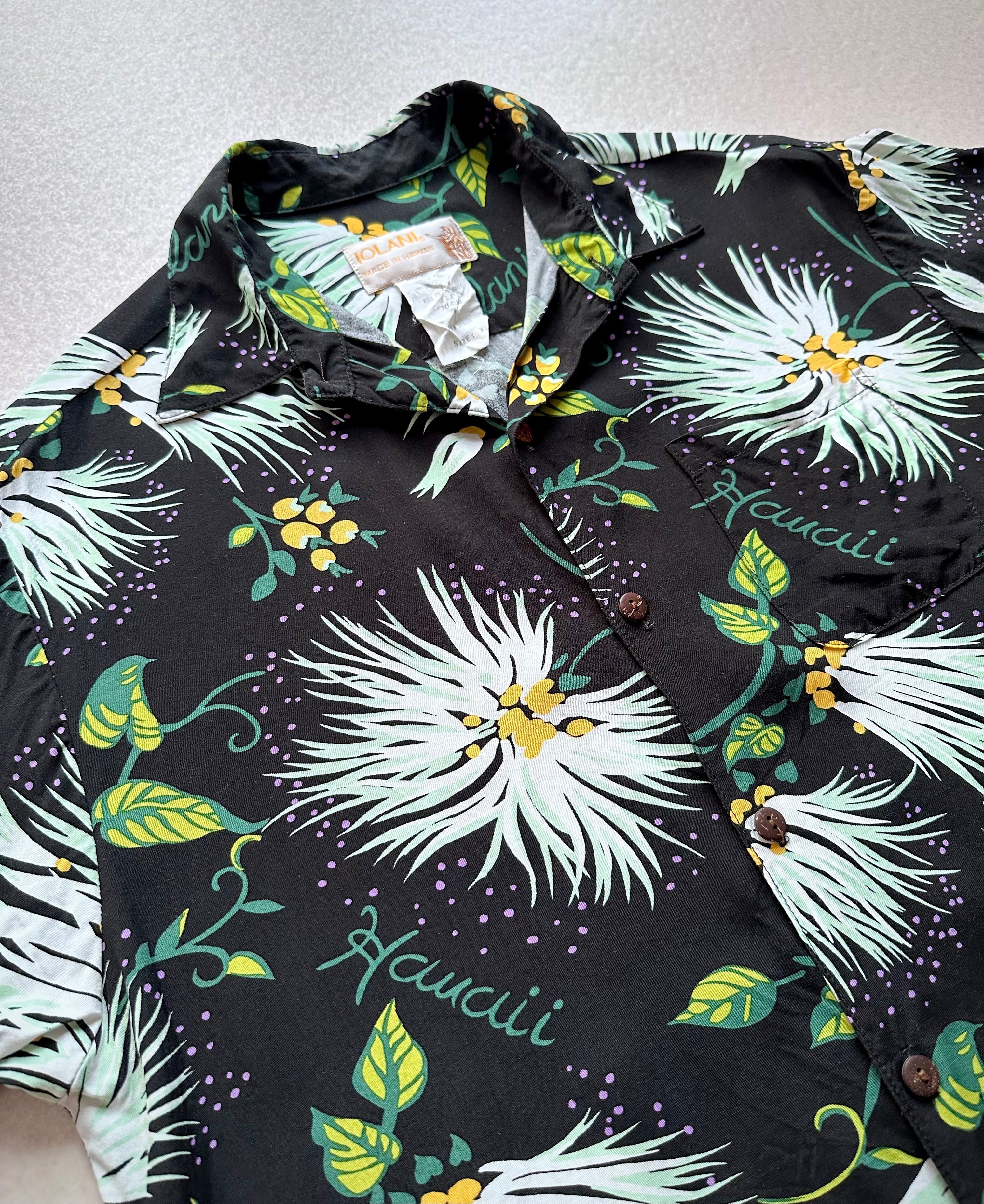 HAWAII製 “ IOLANI ” OHI’A LEHUA TROPICAL HAWAIIAN SHIRT ハワイ製 イオラニ オヒアレフア トロピカル ハワイアンシャツ