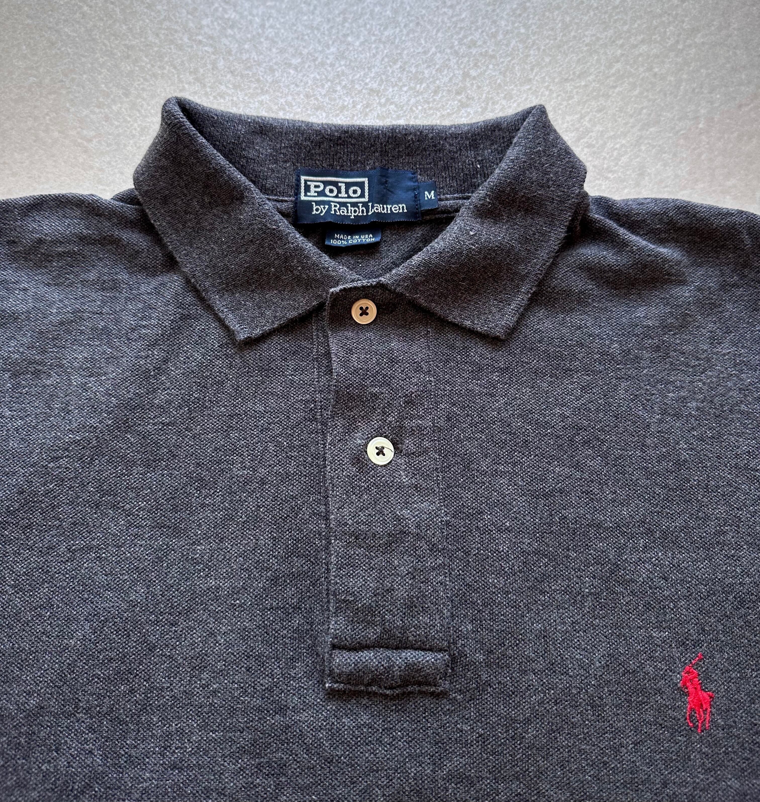 90s〜 USA製 “ RALPH LAUREN ” CLASSICS POLO SHIRT CHARCOAL OLD VINTAGE アメリカ製 ラルフローレン クラシックポロシャツ チャコール オールド ビンテージ