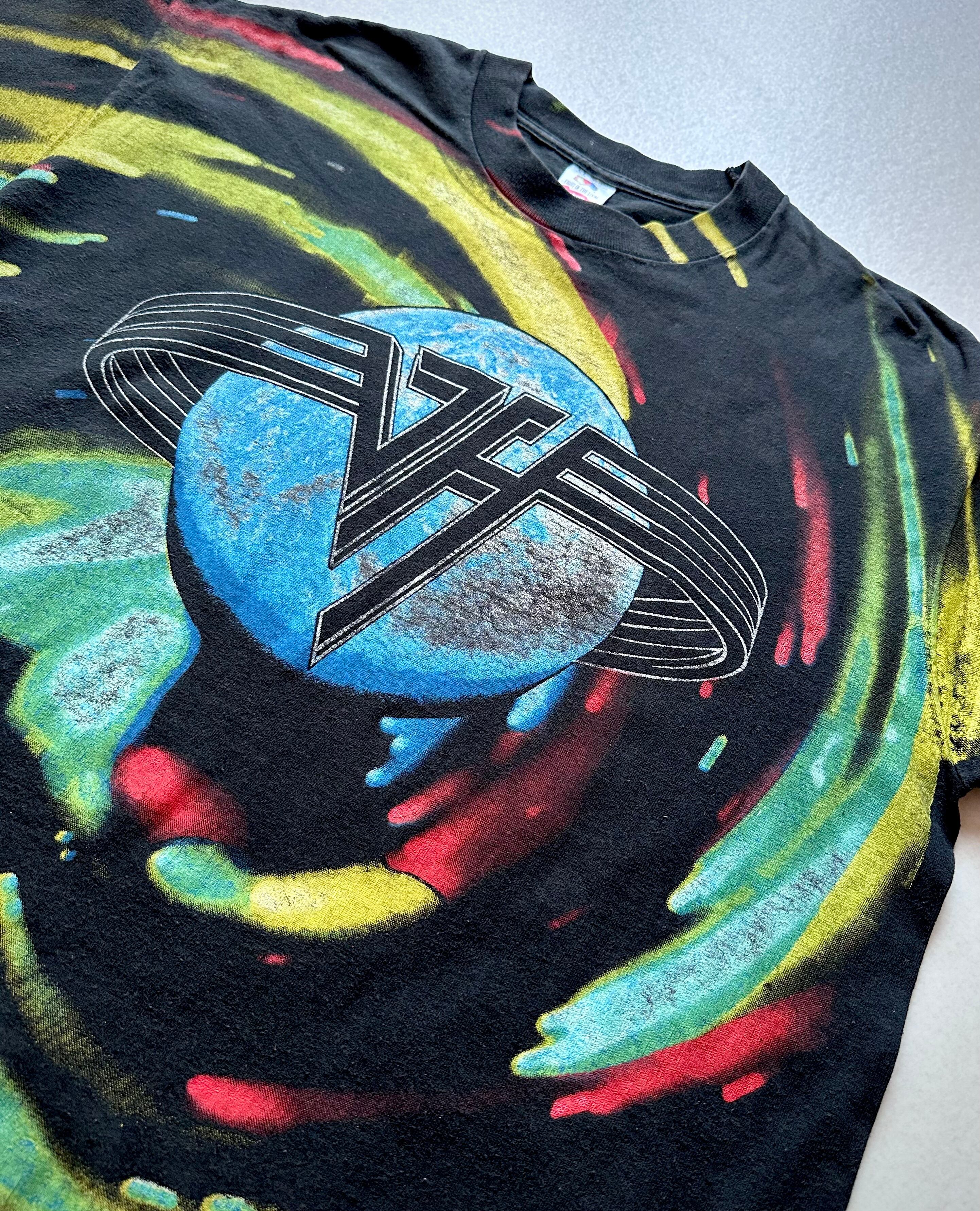 お馴染みとなっているバンドのVHロゴや宇宙空間を連想させるカラフルな色使いにツアー都市が描かれた非常に面構えの良いグッドなデザイン、数あるシリーズの中でも珍しくコレクションにも相応しいコンディションの良い1枚、お好きな方は是非この機会にいかがでしょうか。