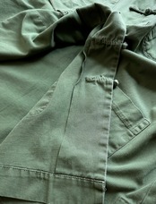 よくあるフレンチチャイナとは少しディティールが異なり珍しいオリーブグリーンを纏ったコットンツイル仕立てのミリタリーライクなライトジャケットです。