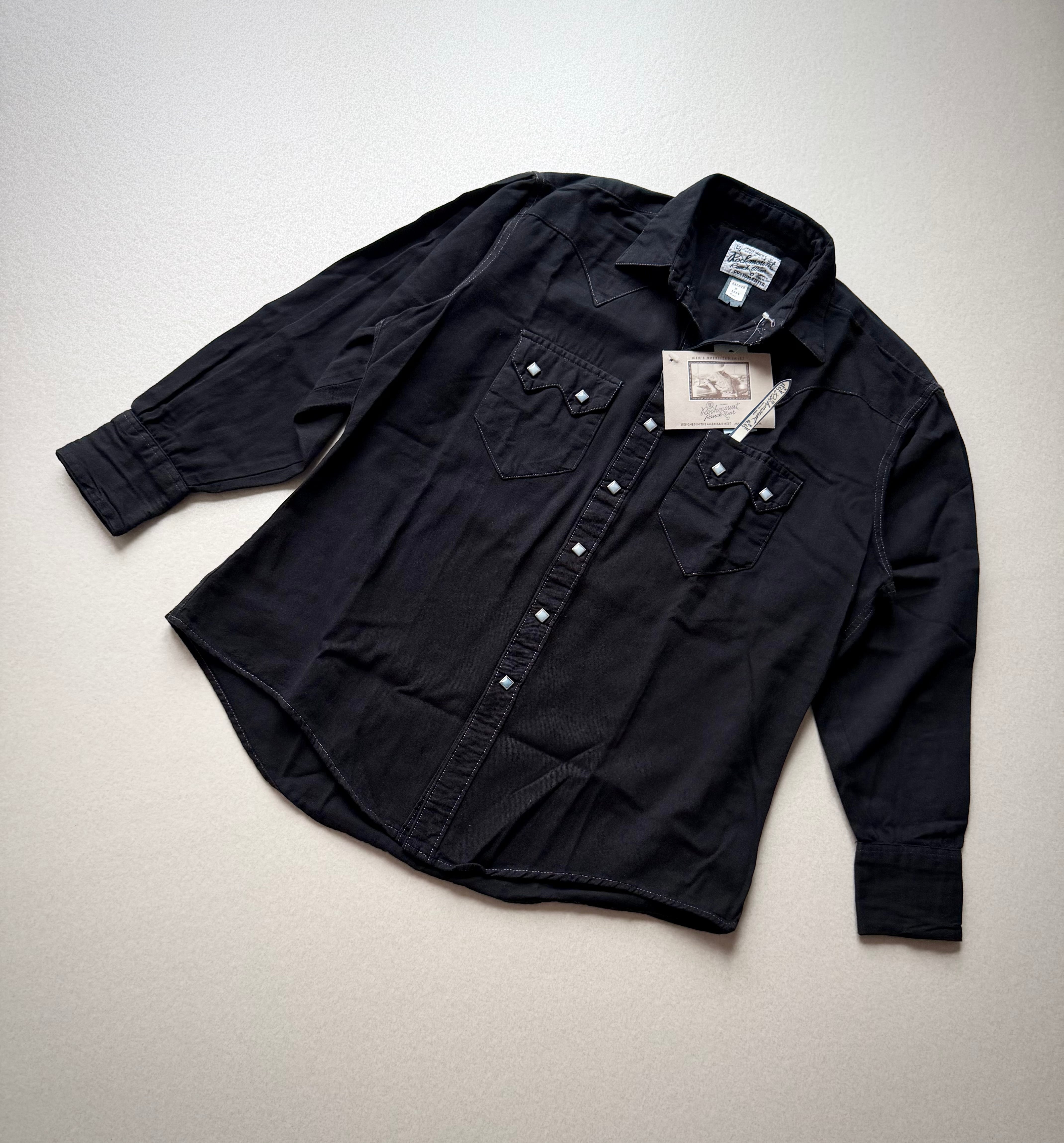 DEAD STOCK MADE IN USA “ ROCK MOUNT ” CUSTOM FITTED BLACK TWILL WESTERN SHIRT OLD VINTAGE 。