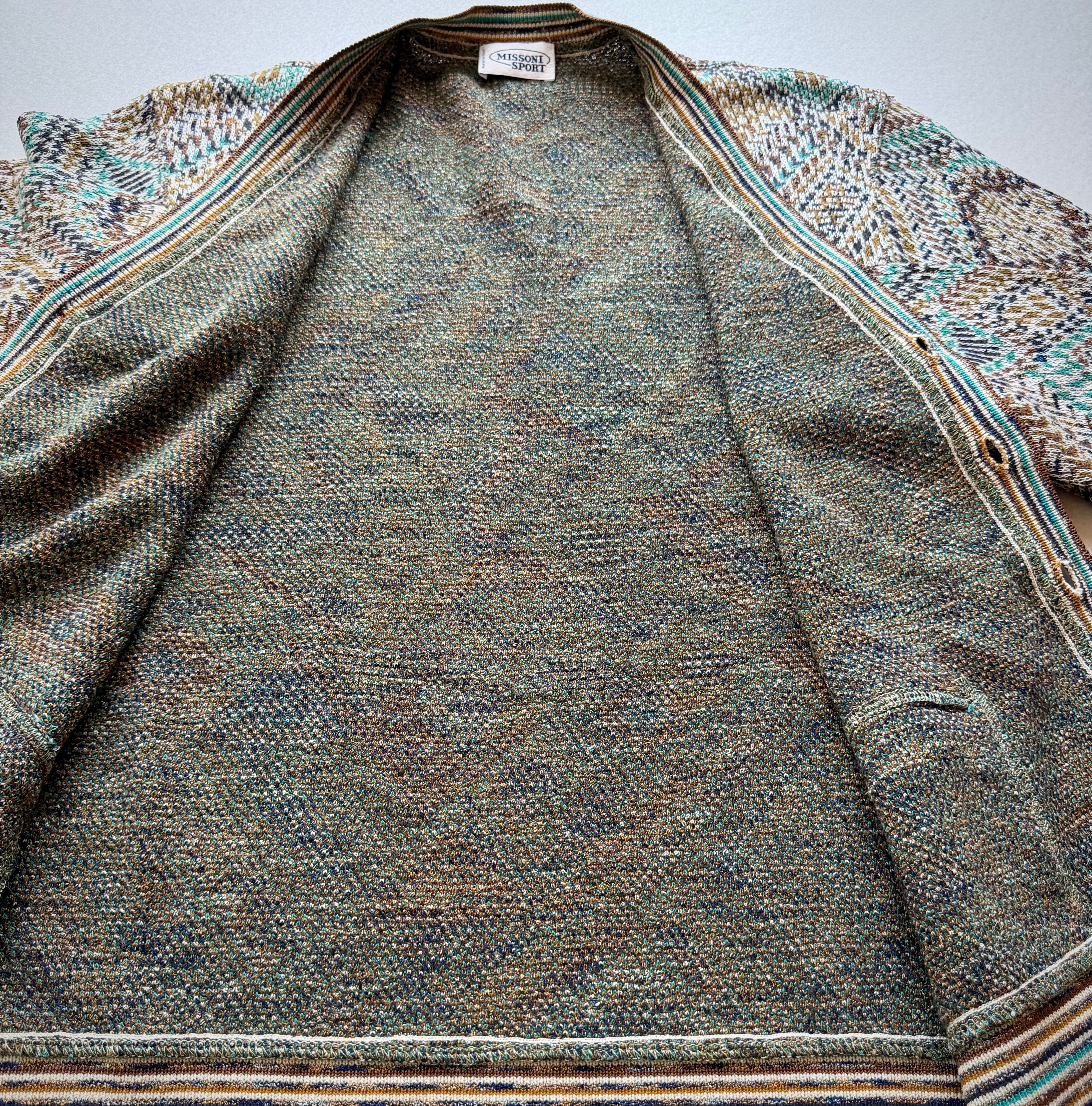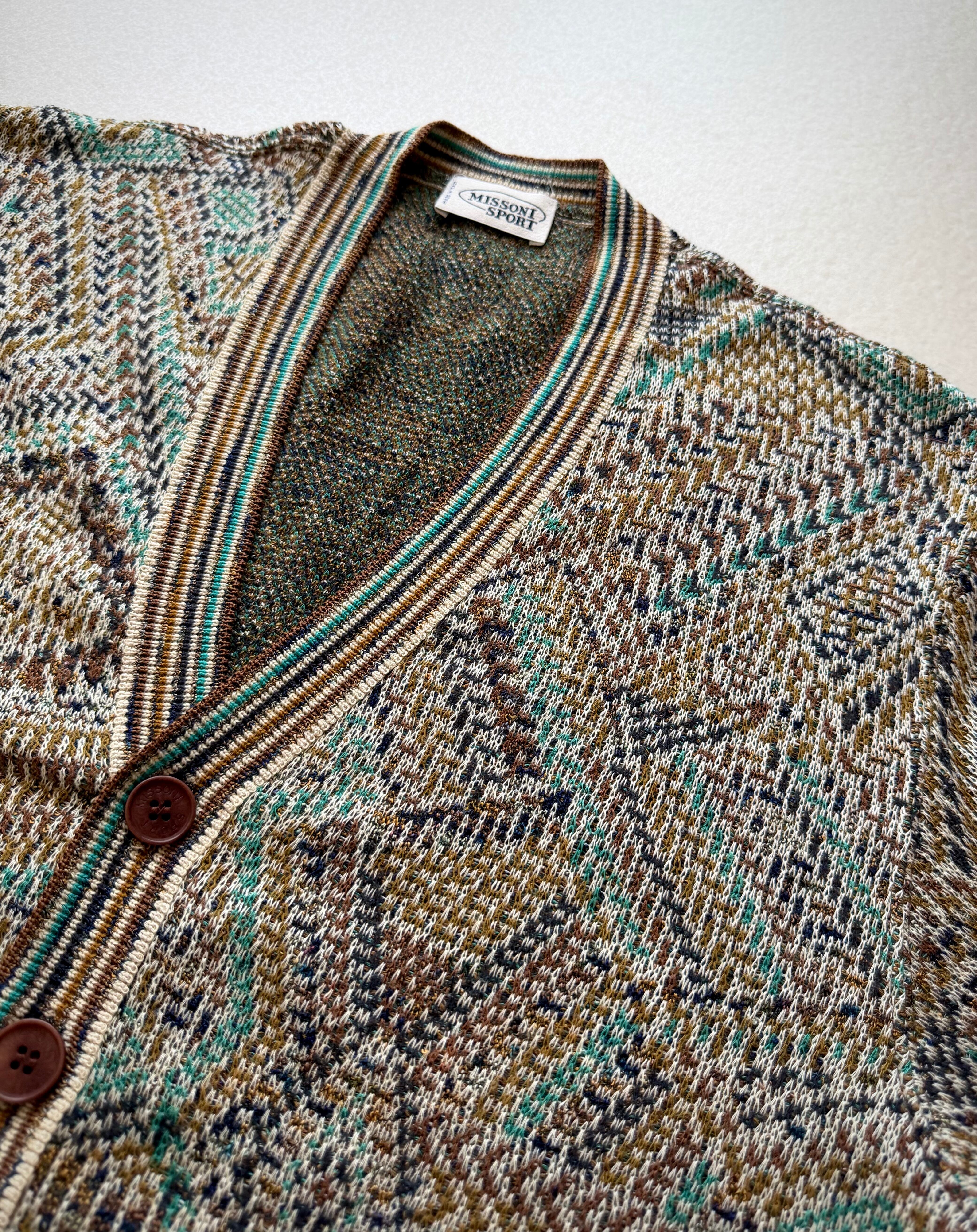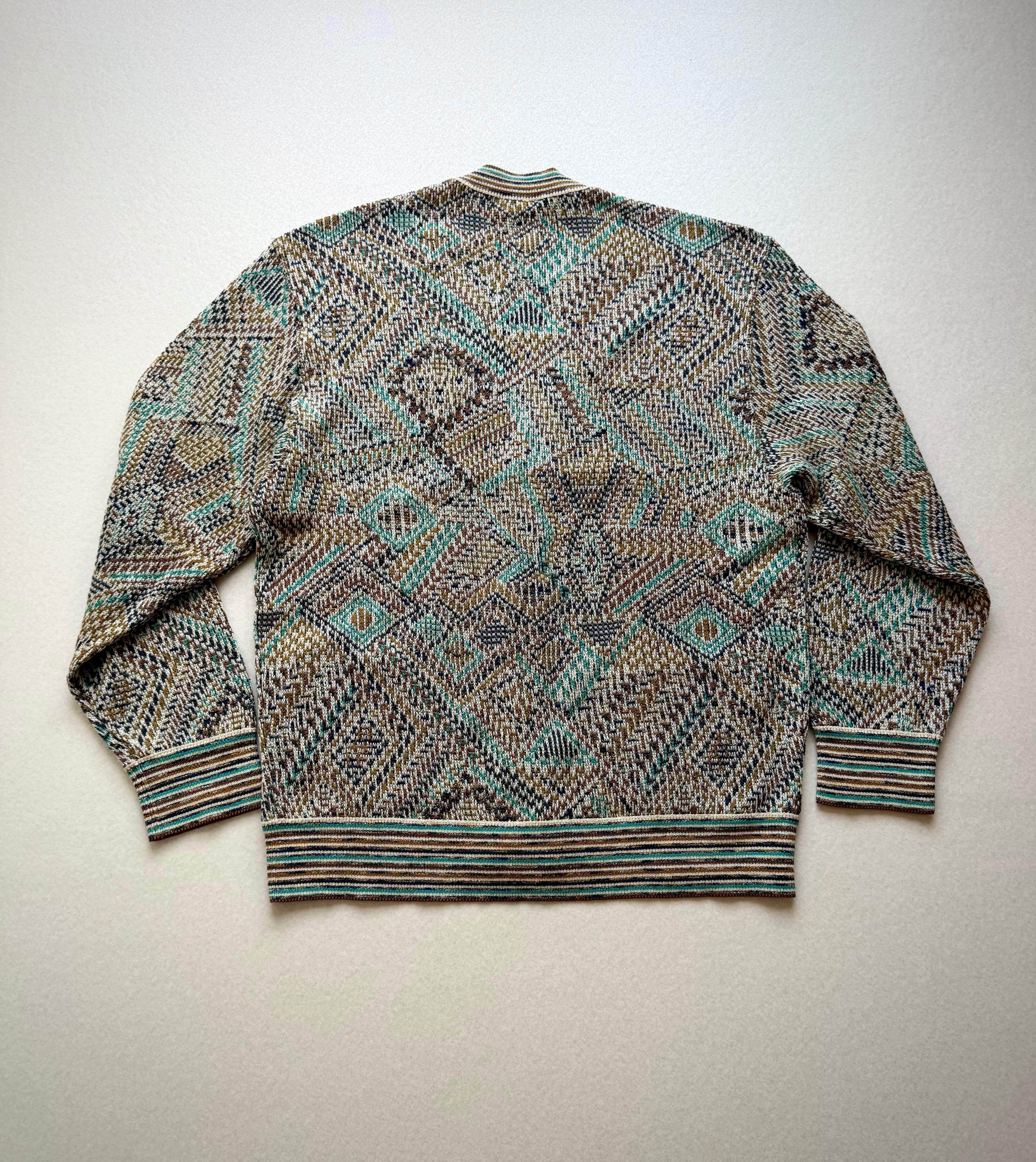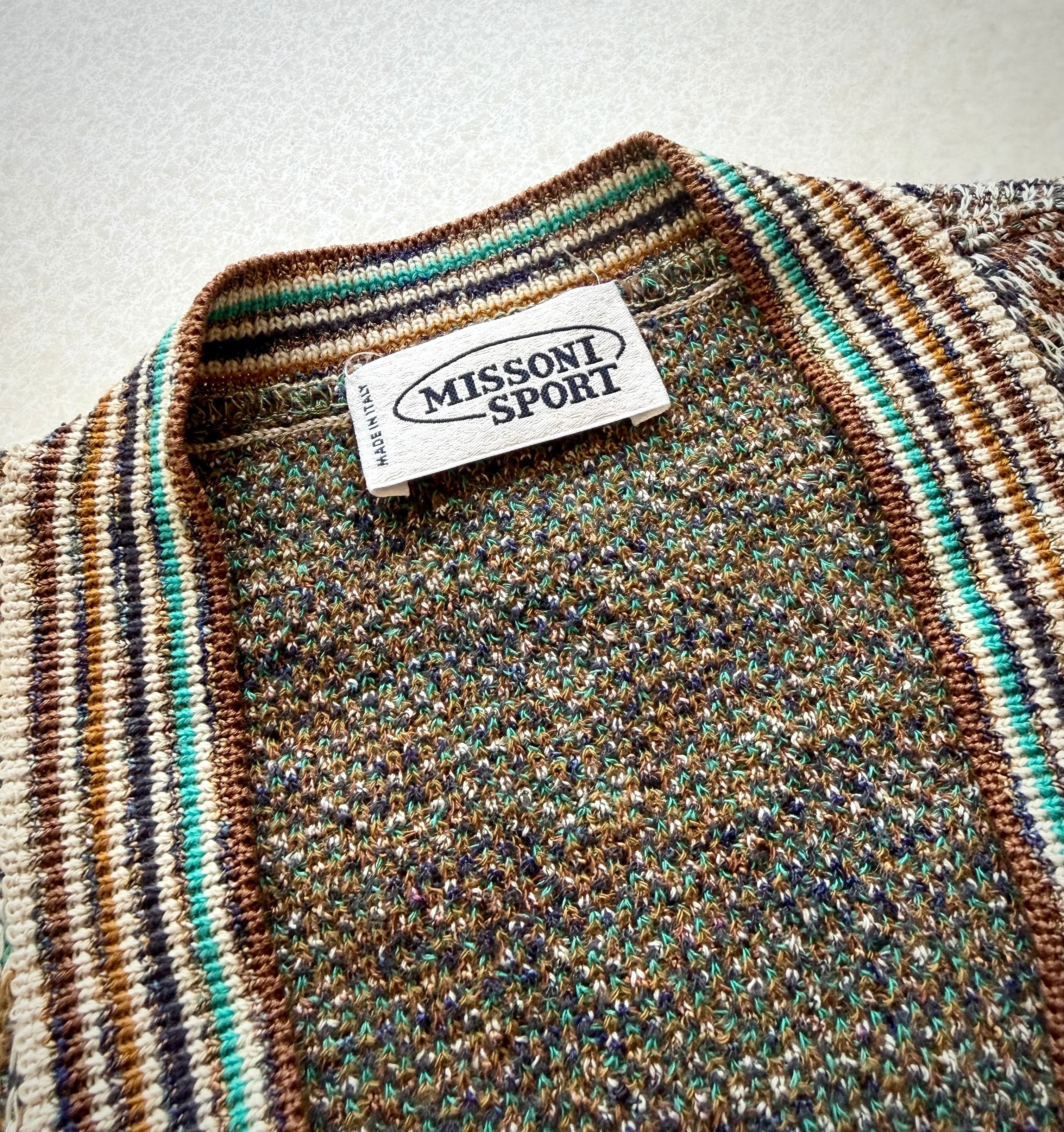 90s〜 MADE IN ITALY “ MISSONI SPORT ” GEOMETRIC CARDIGAN OLD VINTAGE 。