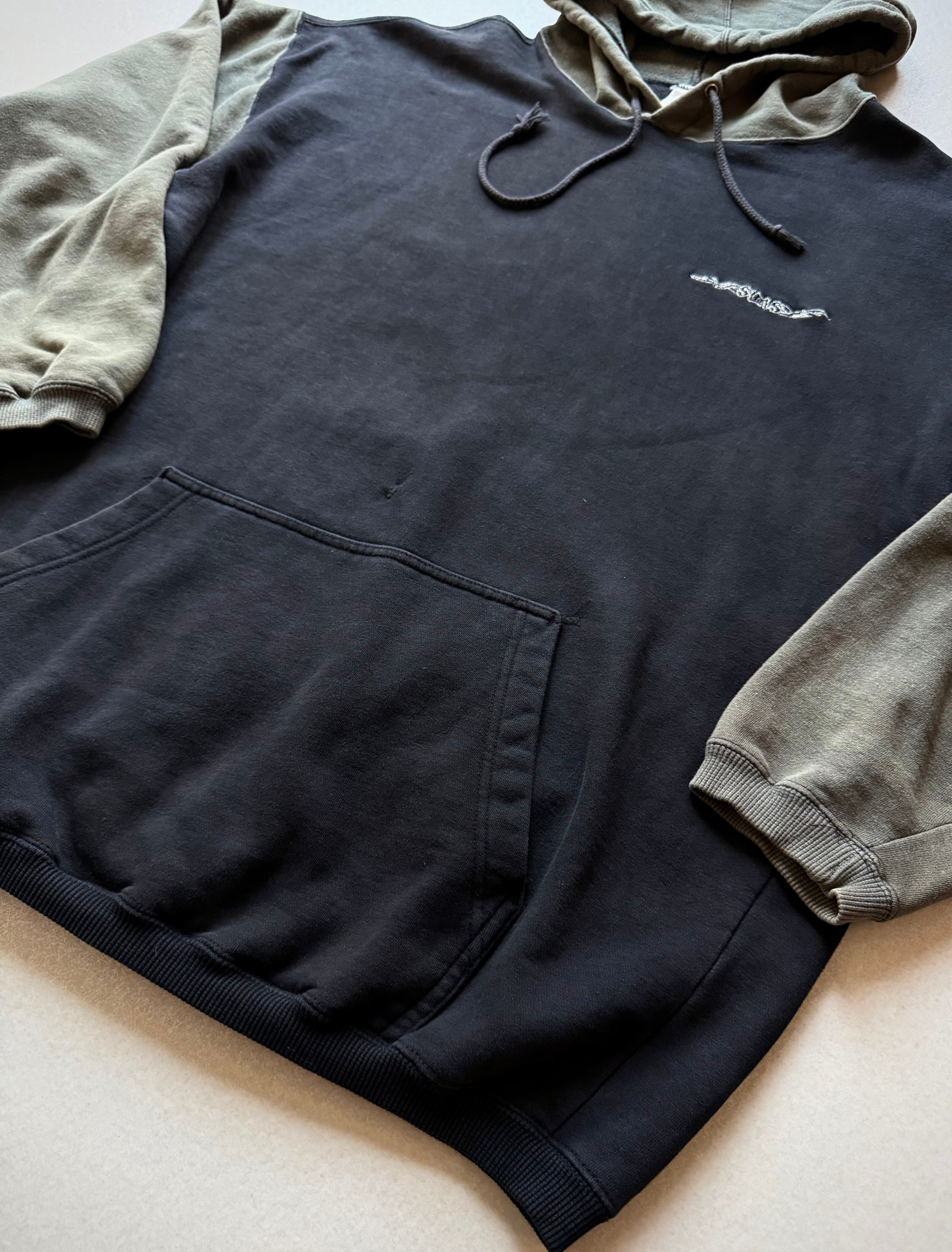 アイコンでもあるブランドロゴがワンポイントにてデザインされた90sらしいプルオーバーパーカー、ストリート感満載なビッグシルエットにブラックをベースにした嬉しいツートーンタイプと当時ならではデザイン。