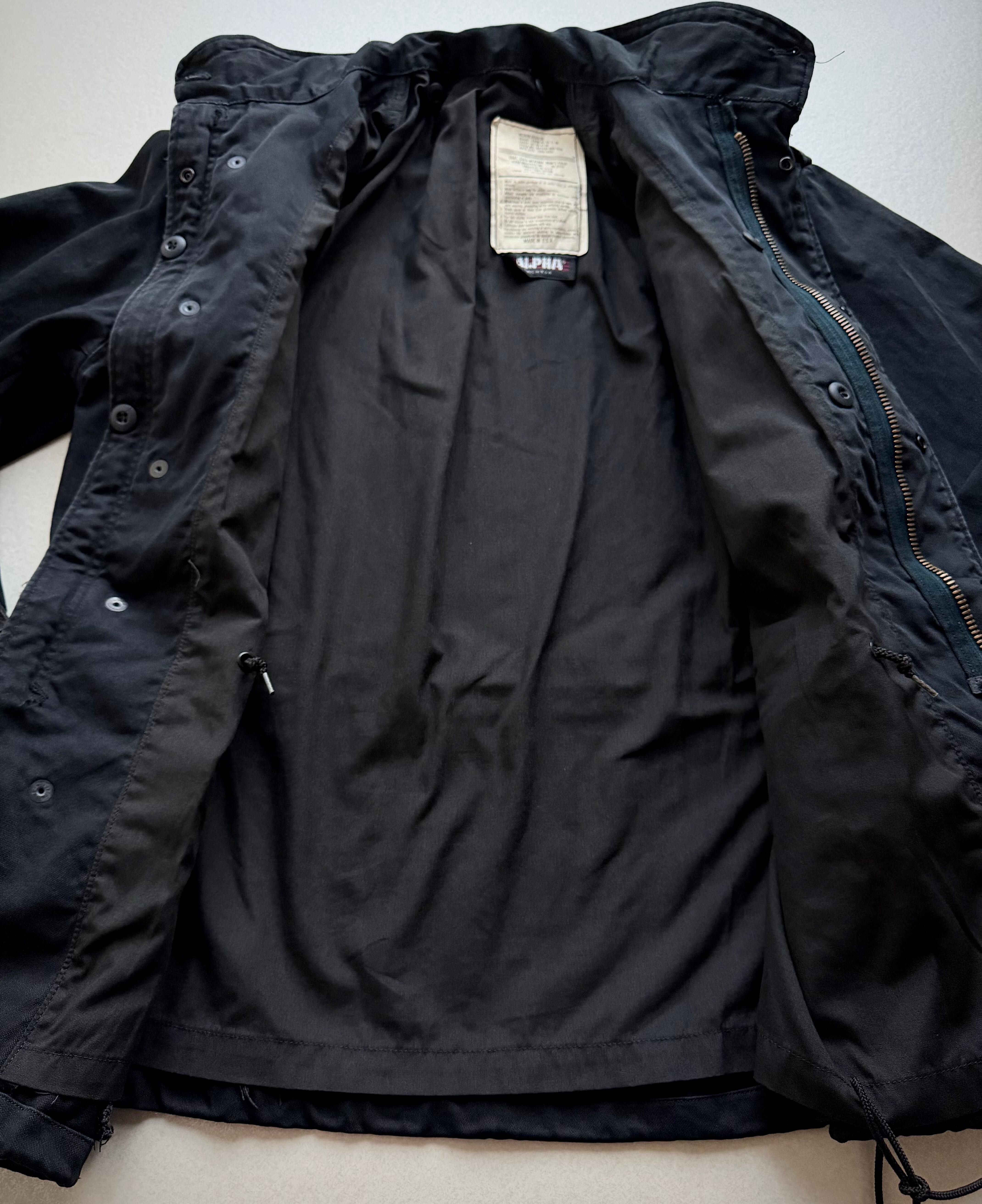 80s USA製 “ ALPHA ” M-65 FIELD JACKET ALL COTTON BLACK OLD VINTAGE アメリカ製 アルファ社 M65 フィールドジャケット オールコットン ブラック オールド ビンテージ