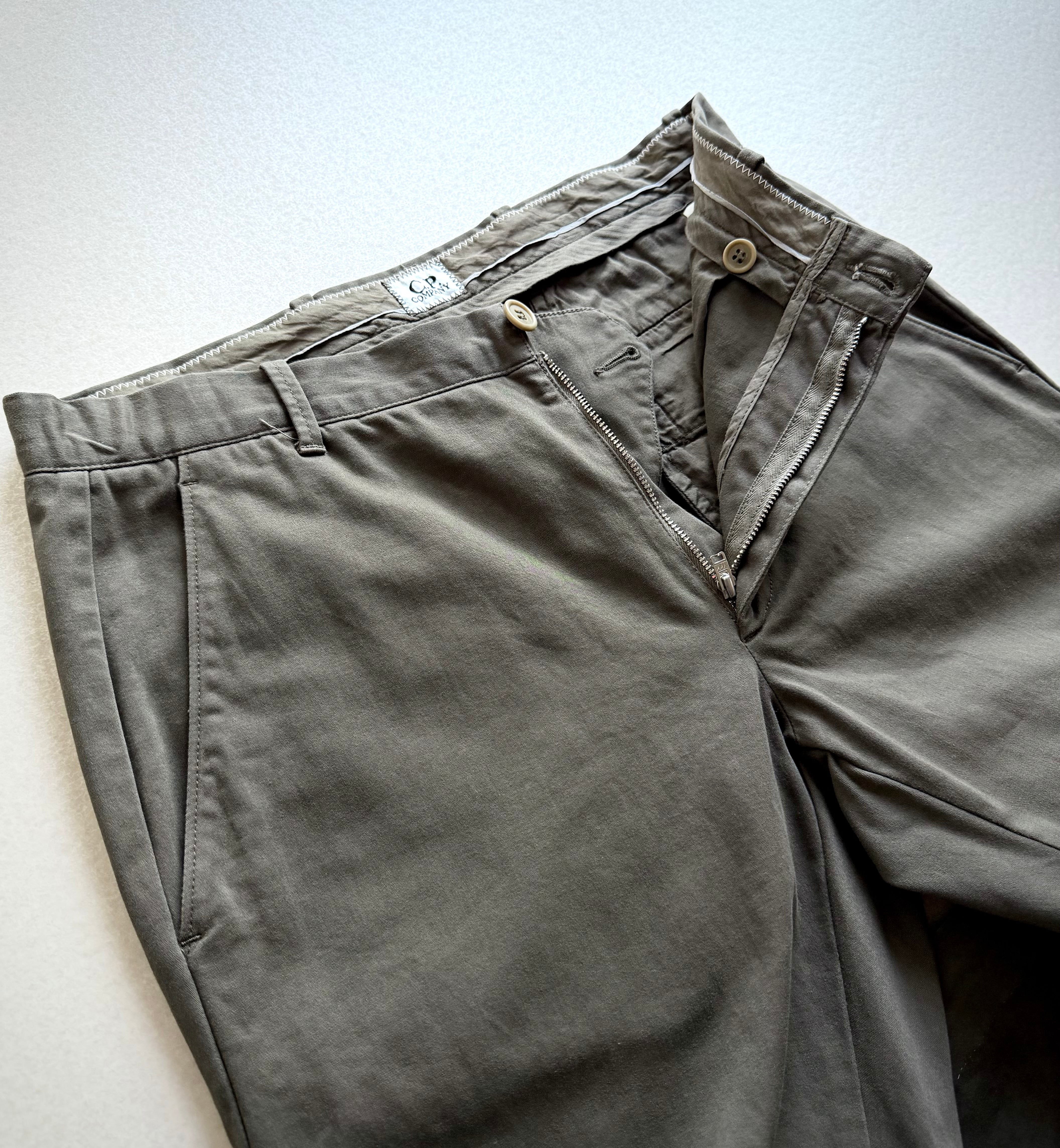 ミリタリーライクなオリーブカラーに両玉縁ポケットやスッキリとしたシルエットとシンプルなデザイン、程良いストレッチで着用感も良くどんなスタイルにもすんなりとハマる“CP.COMPANY ”、お好きな方は是非この機会にいかがでしょうか。