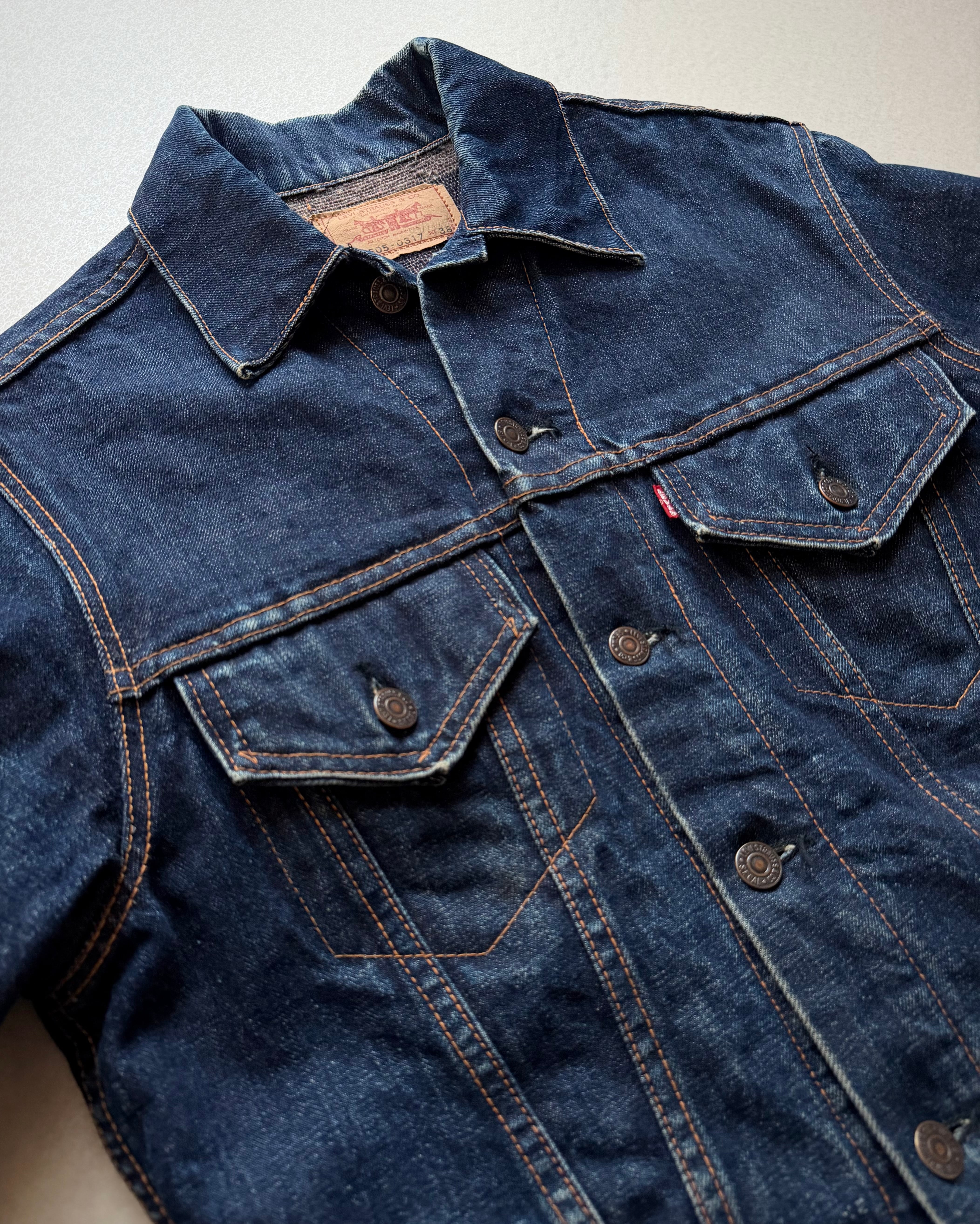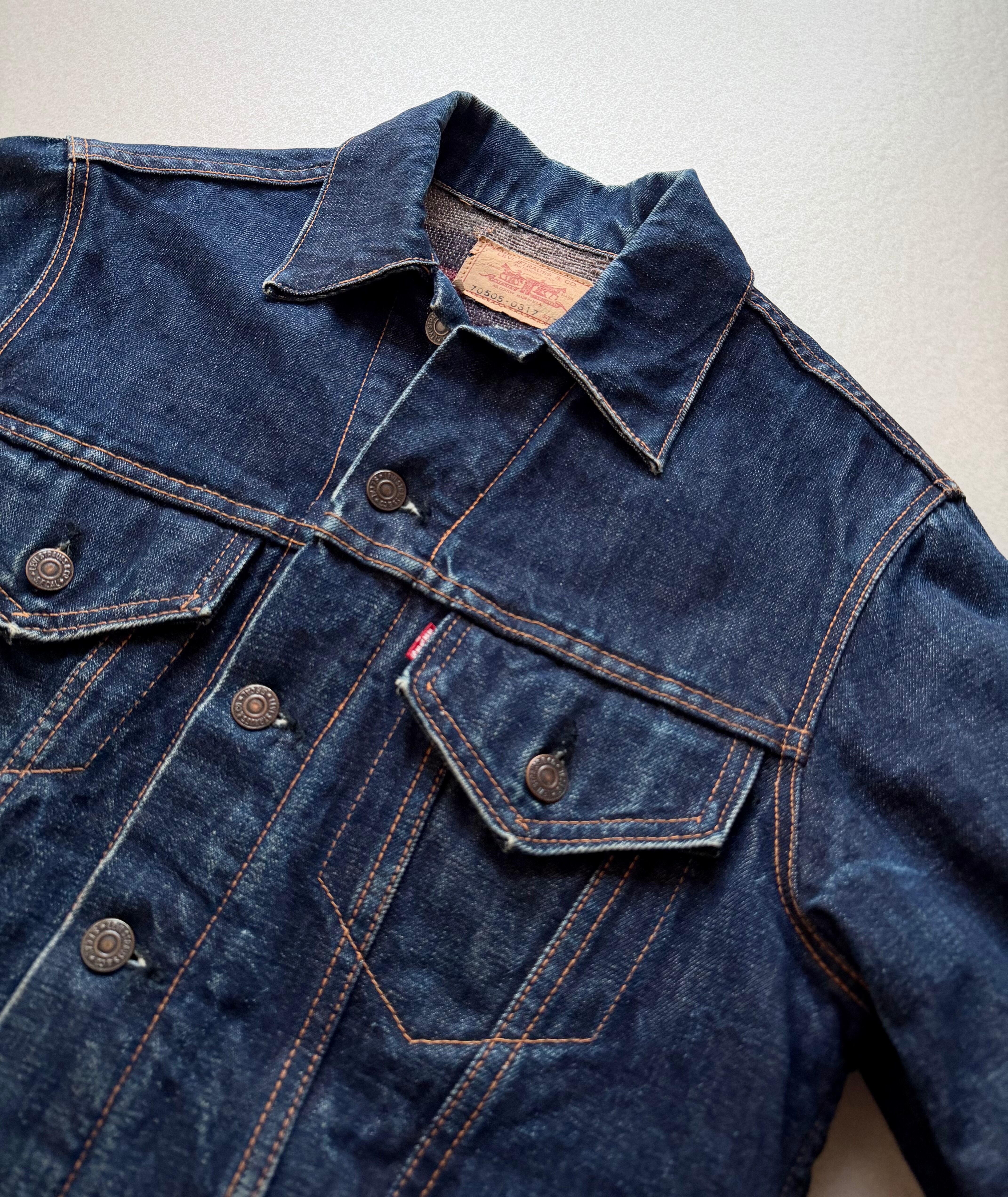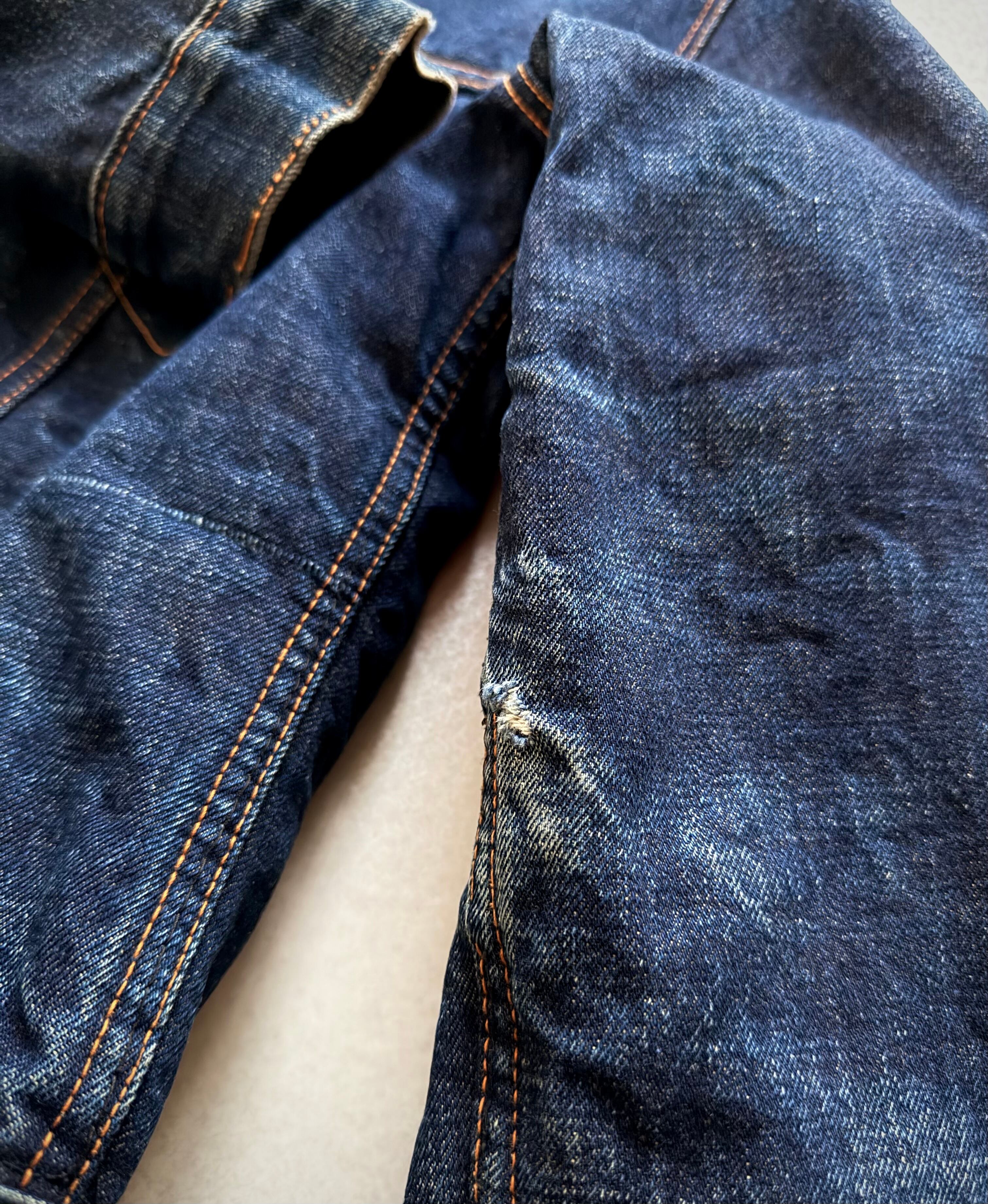 USED.ビンテージならではの多少使用感,細かいスレ,左袖中央に小さな擦り切れ,右腰ライニングにステッチアウトが見受けられますが、年代を考慮しても濃紺で綺麗なグッドコンディション状態だと思います。