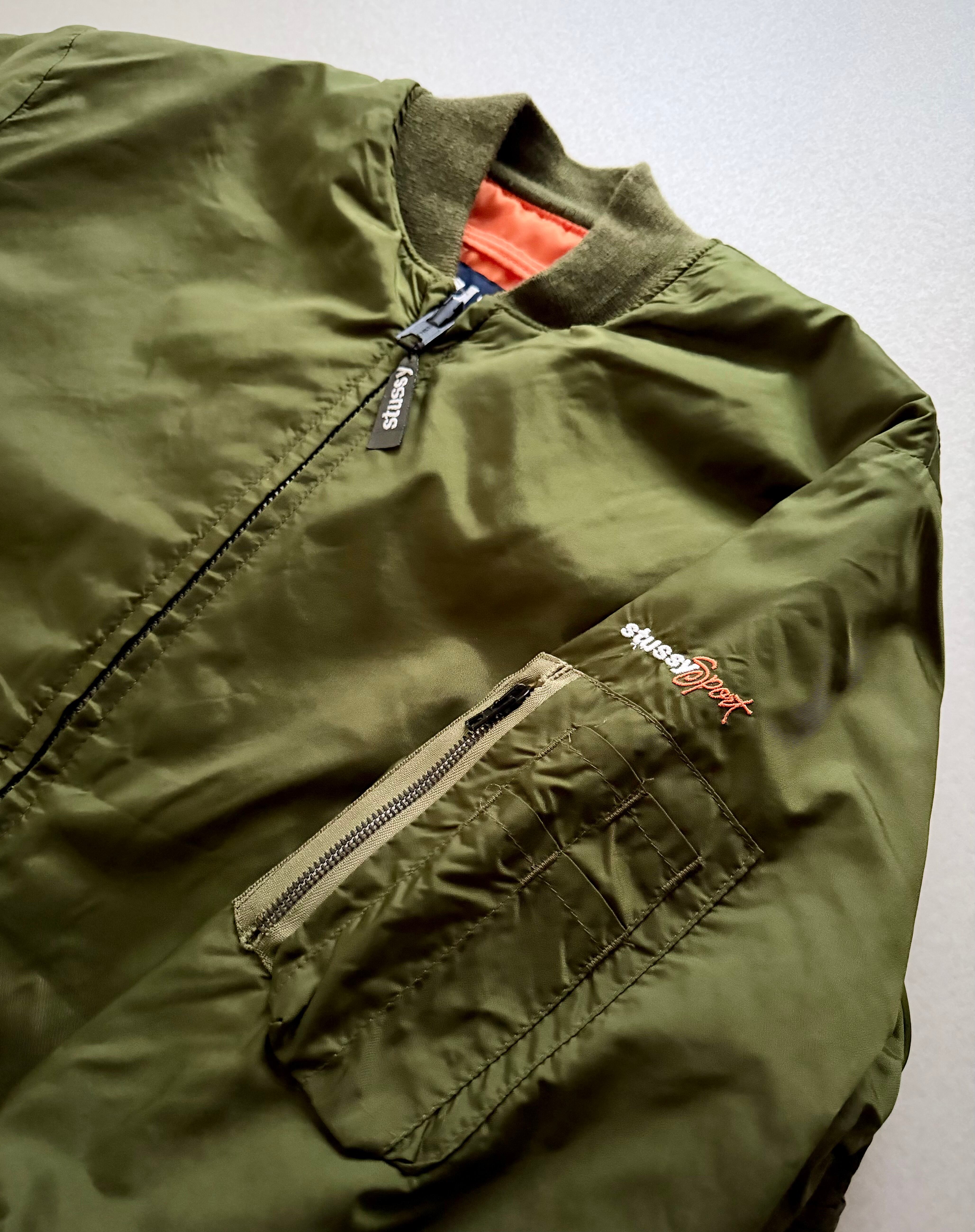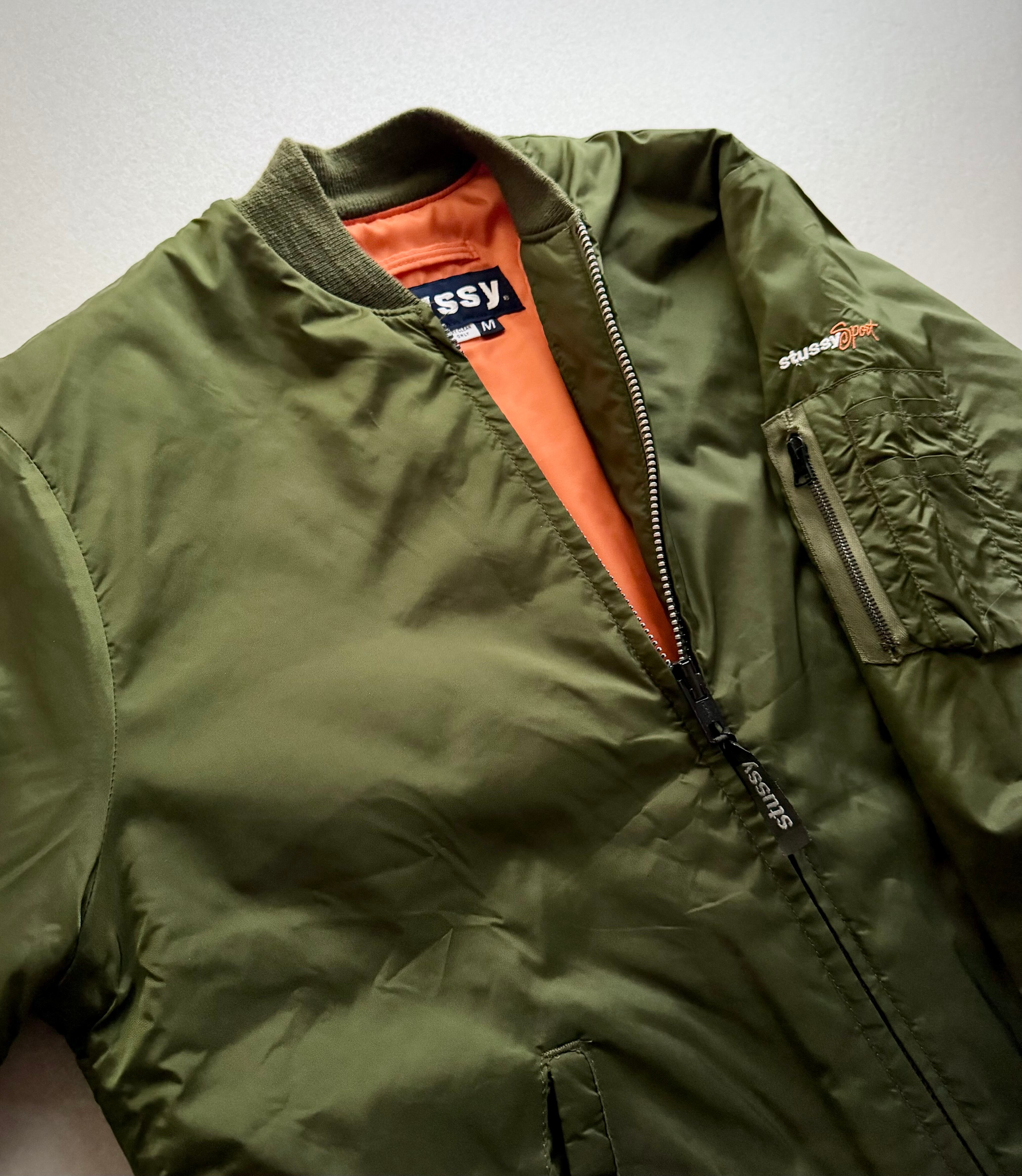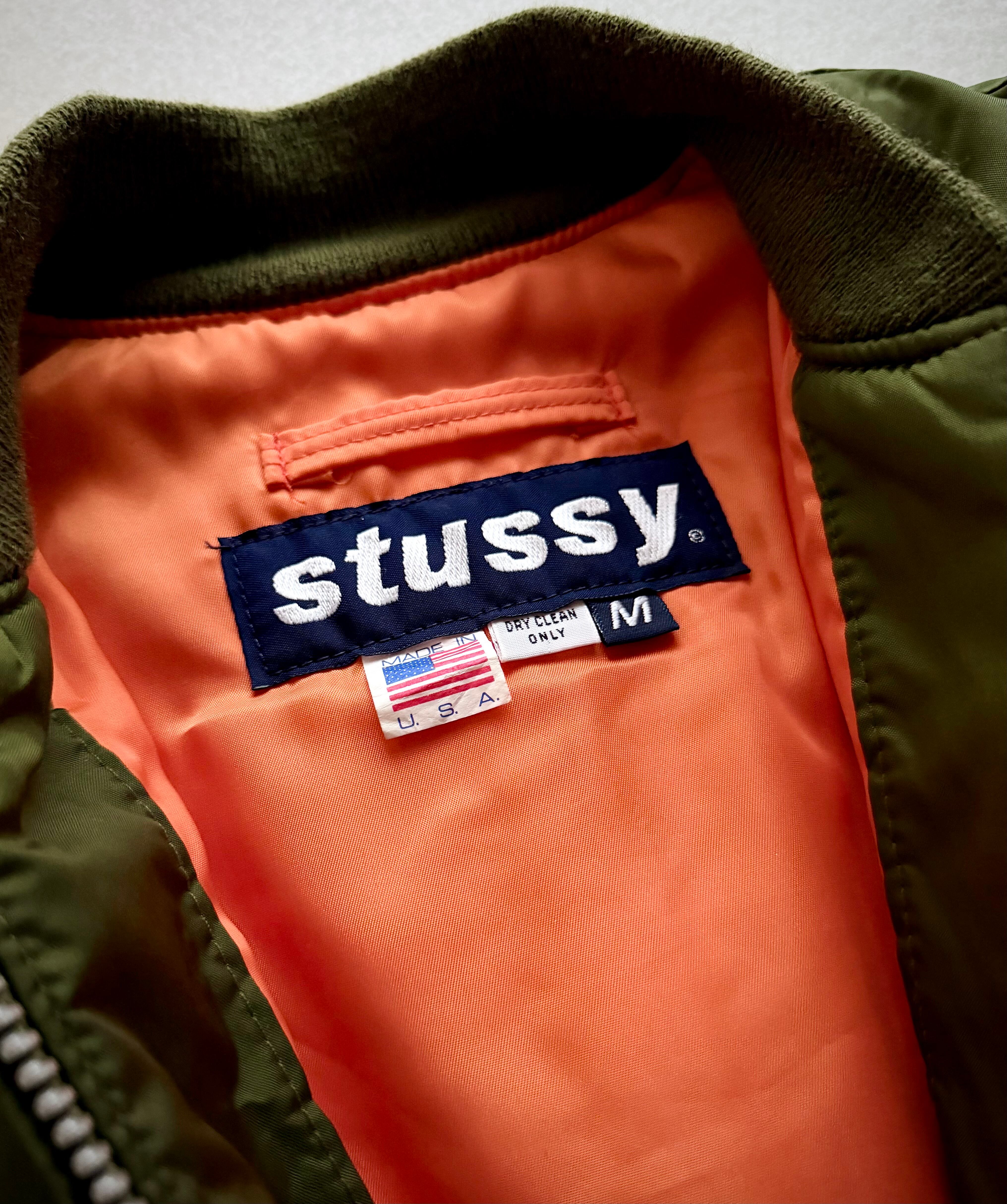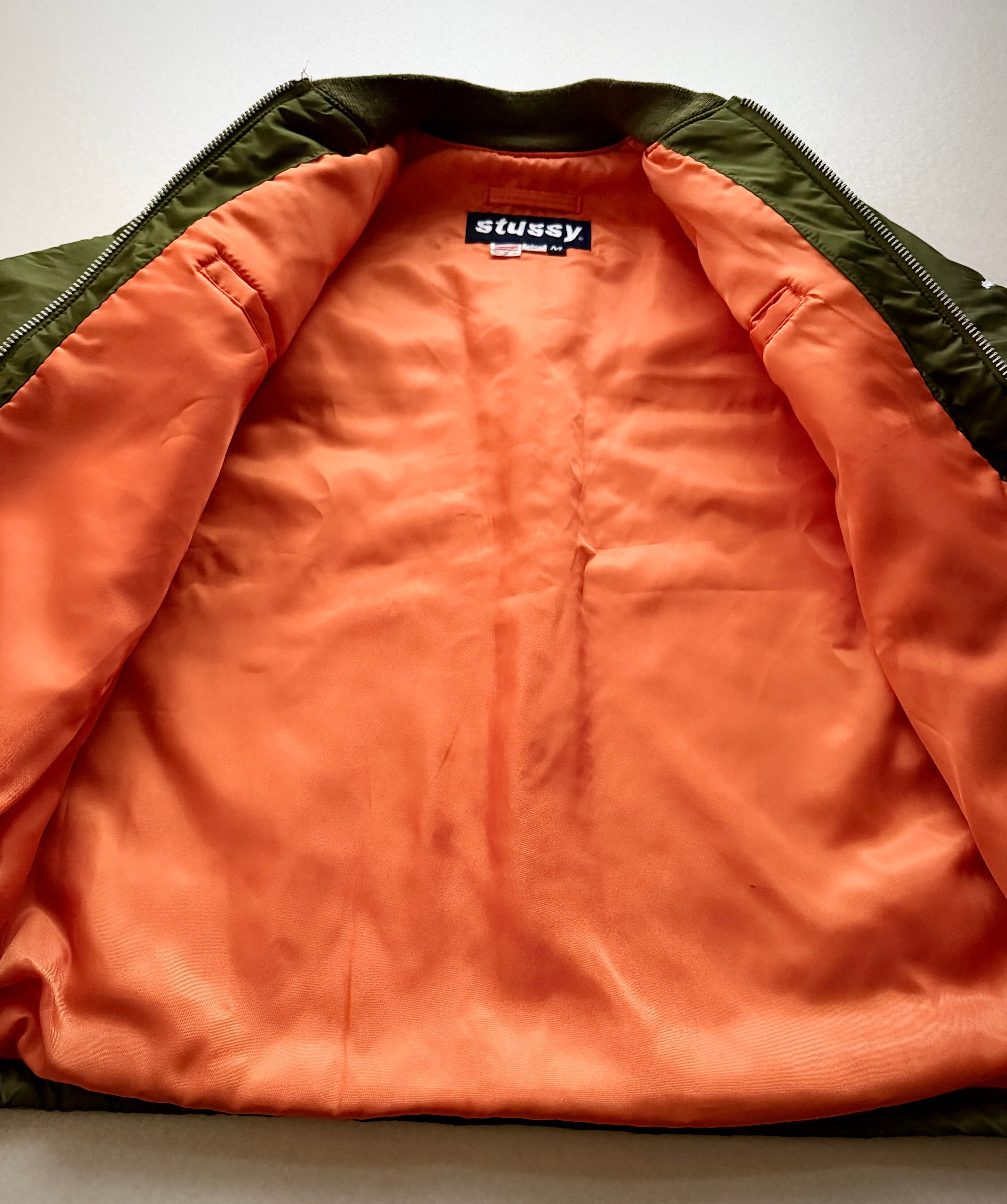 SPECIAL 90s MADE IN USA “ STUSSY / SPIEWAK ” MA-1 NYLON BOMBER JACKET OLIVE OLD VINTAGE 。