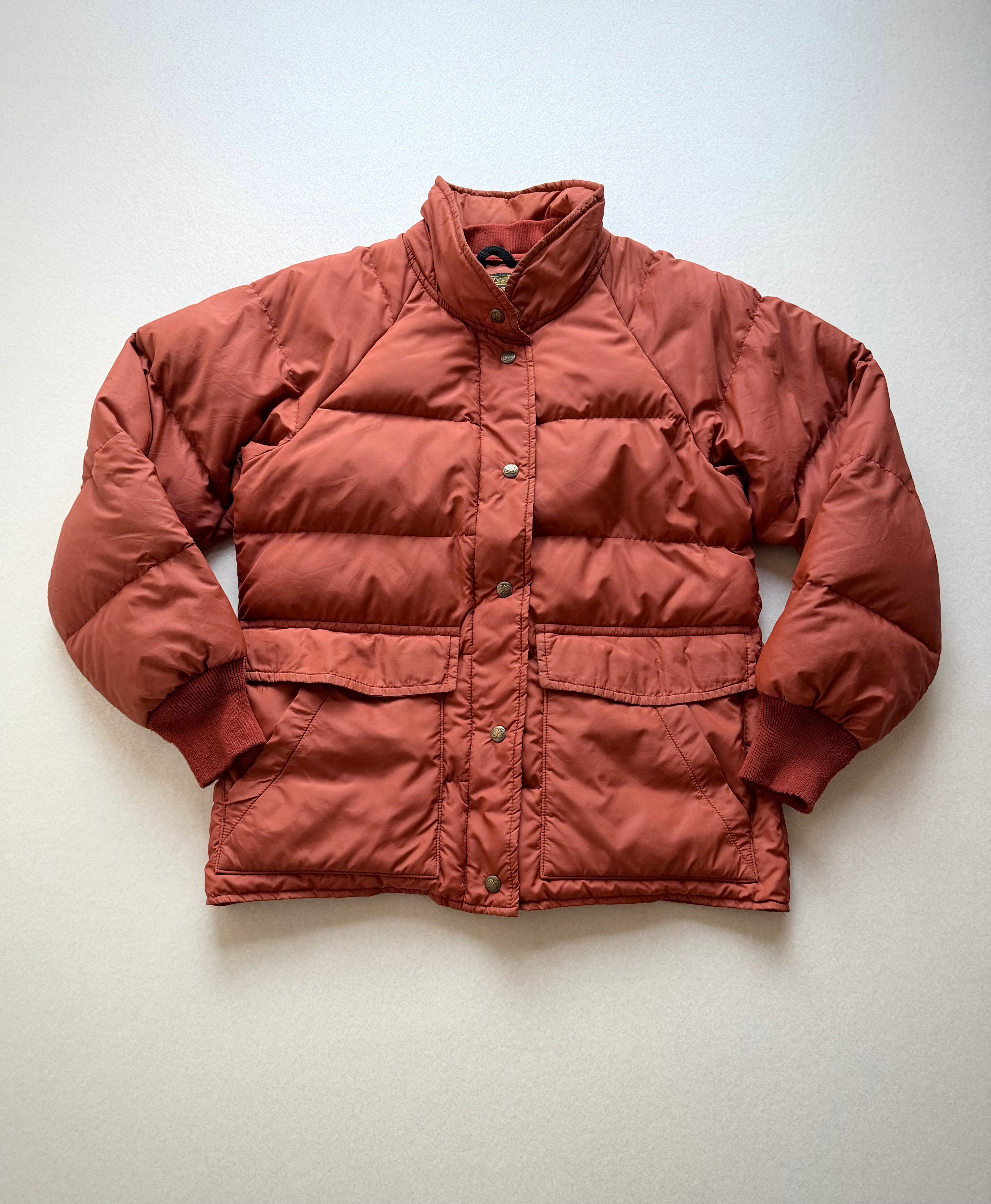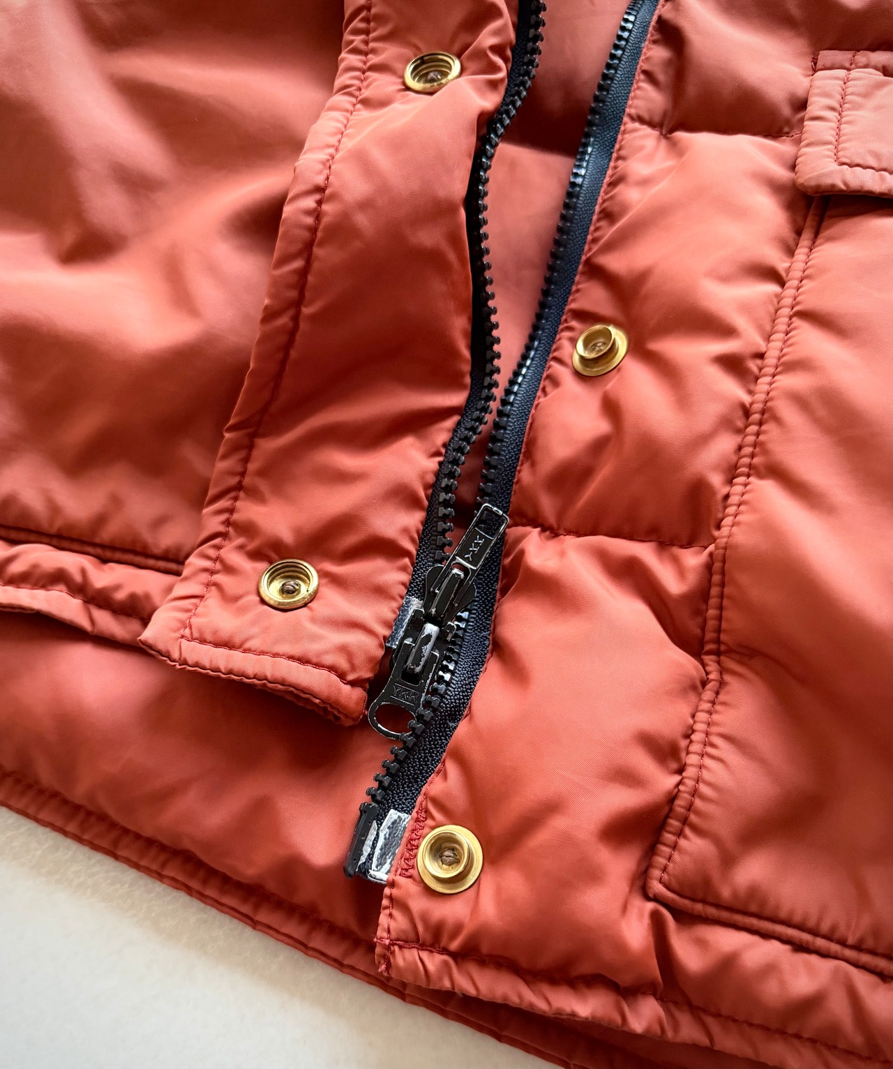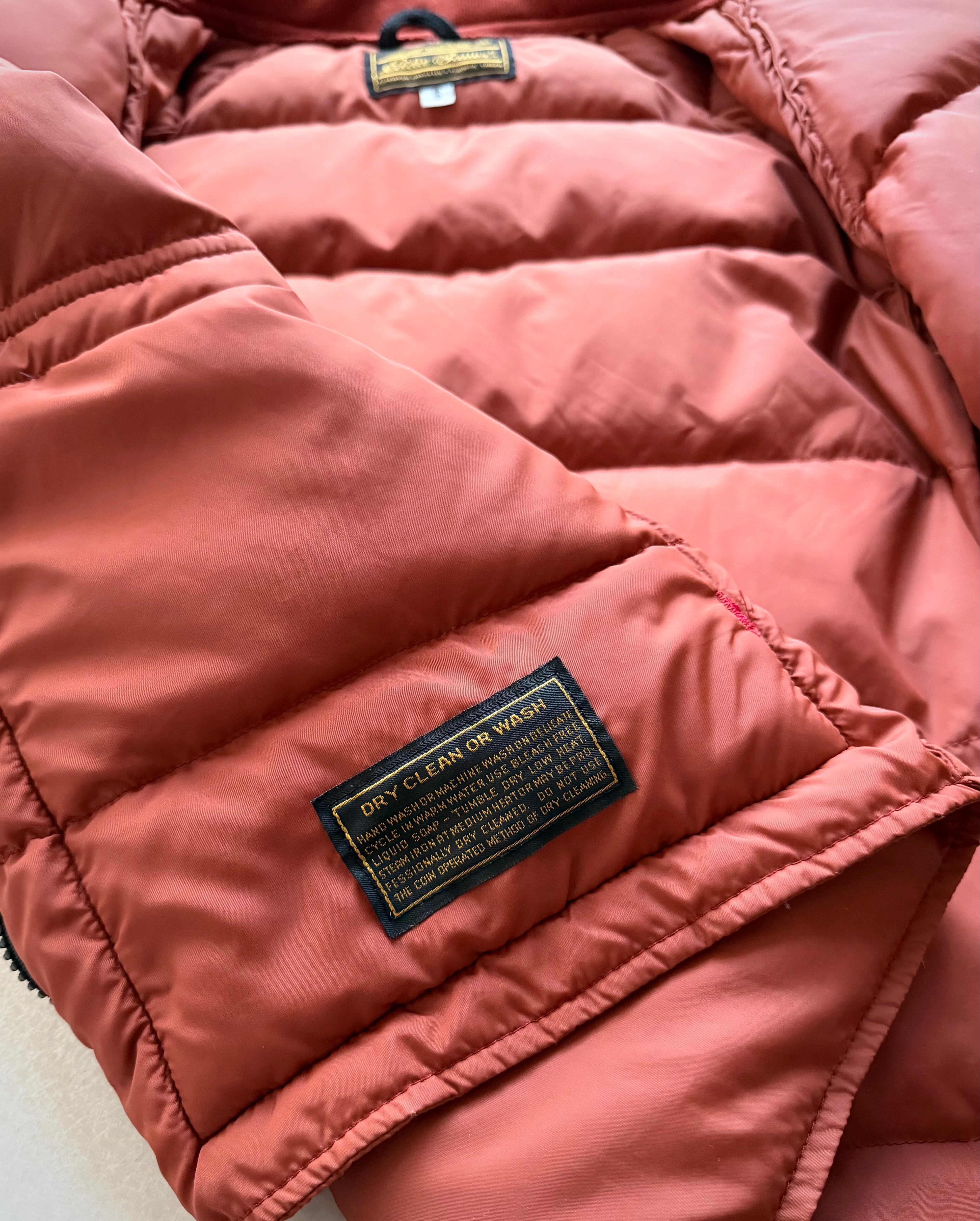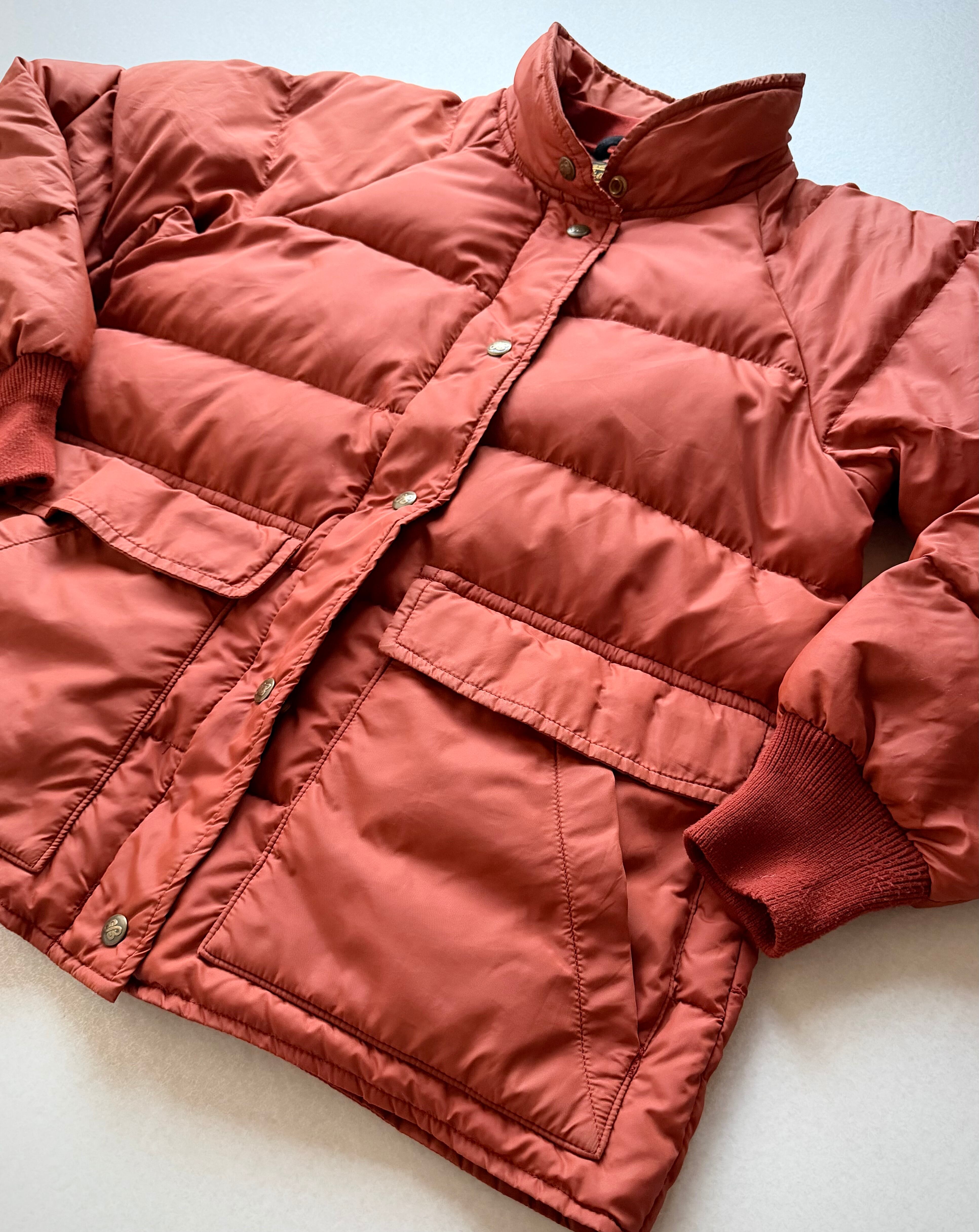当時の黒タグにEBスナップやパッチポケット,スタンドカラーとデザインも良くシックなレンガ調のカラーバランスもグッドなオールドアウトドアらしい佇まい。