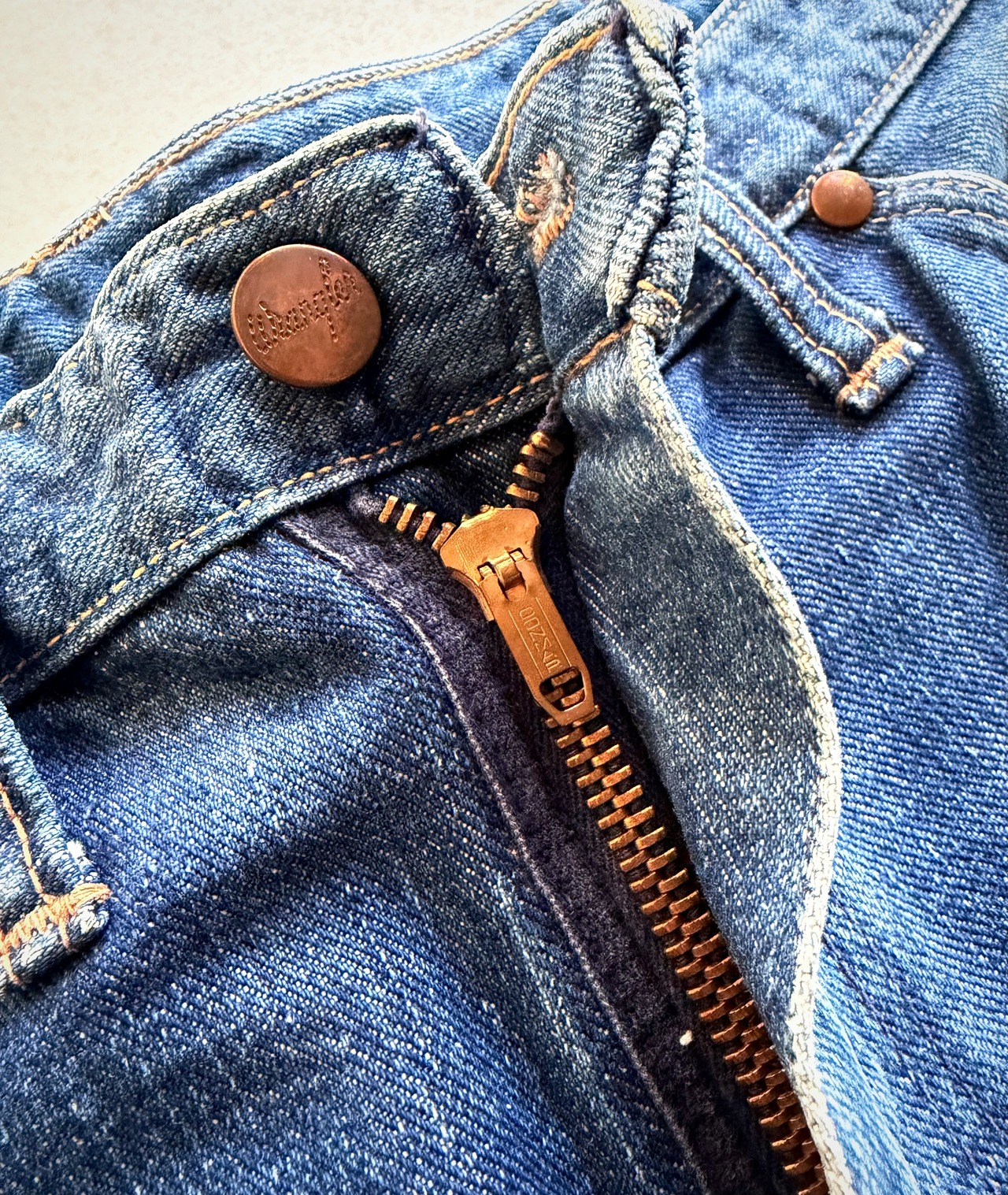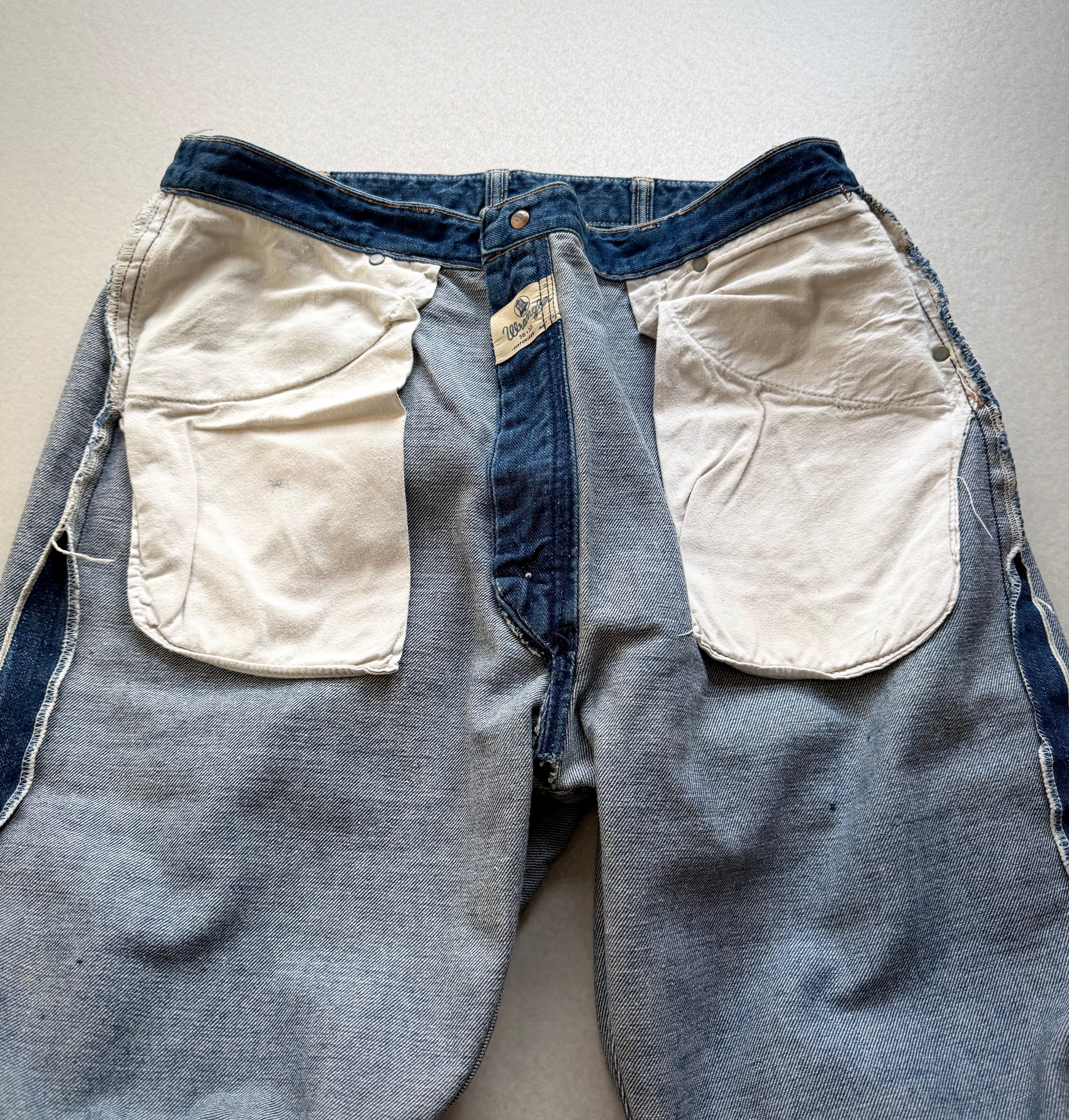 LEVI’SやLeeと比べ歴史が浅く出現率が極めて低い事でも有名ですが、歴代の数ある11MWZでも64年の一年間のみに製造されていたとされる10MWと同じ耳付きセルビッジデニムを使用したスペシャルピースなVINTAGEデニム。