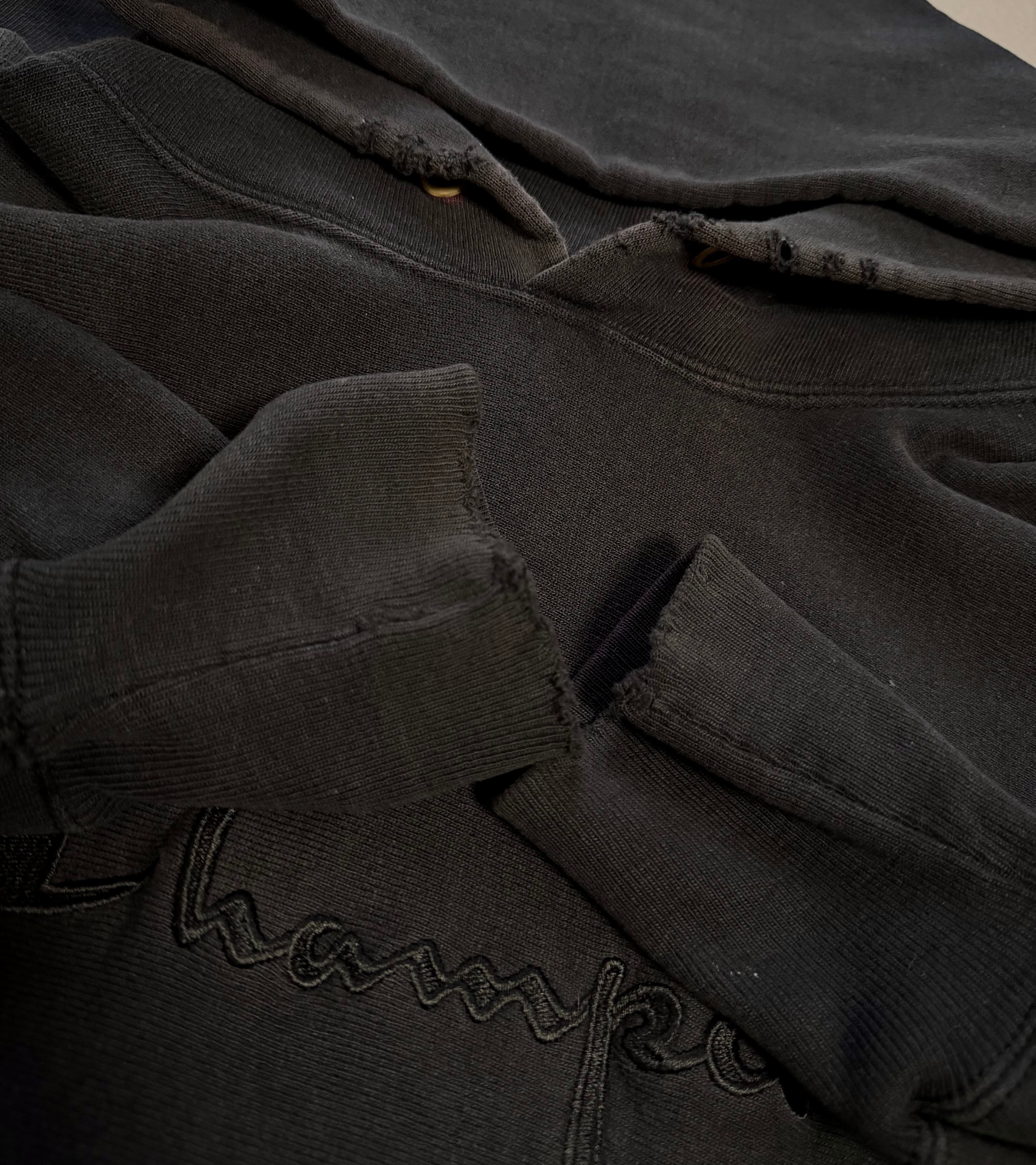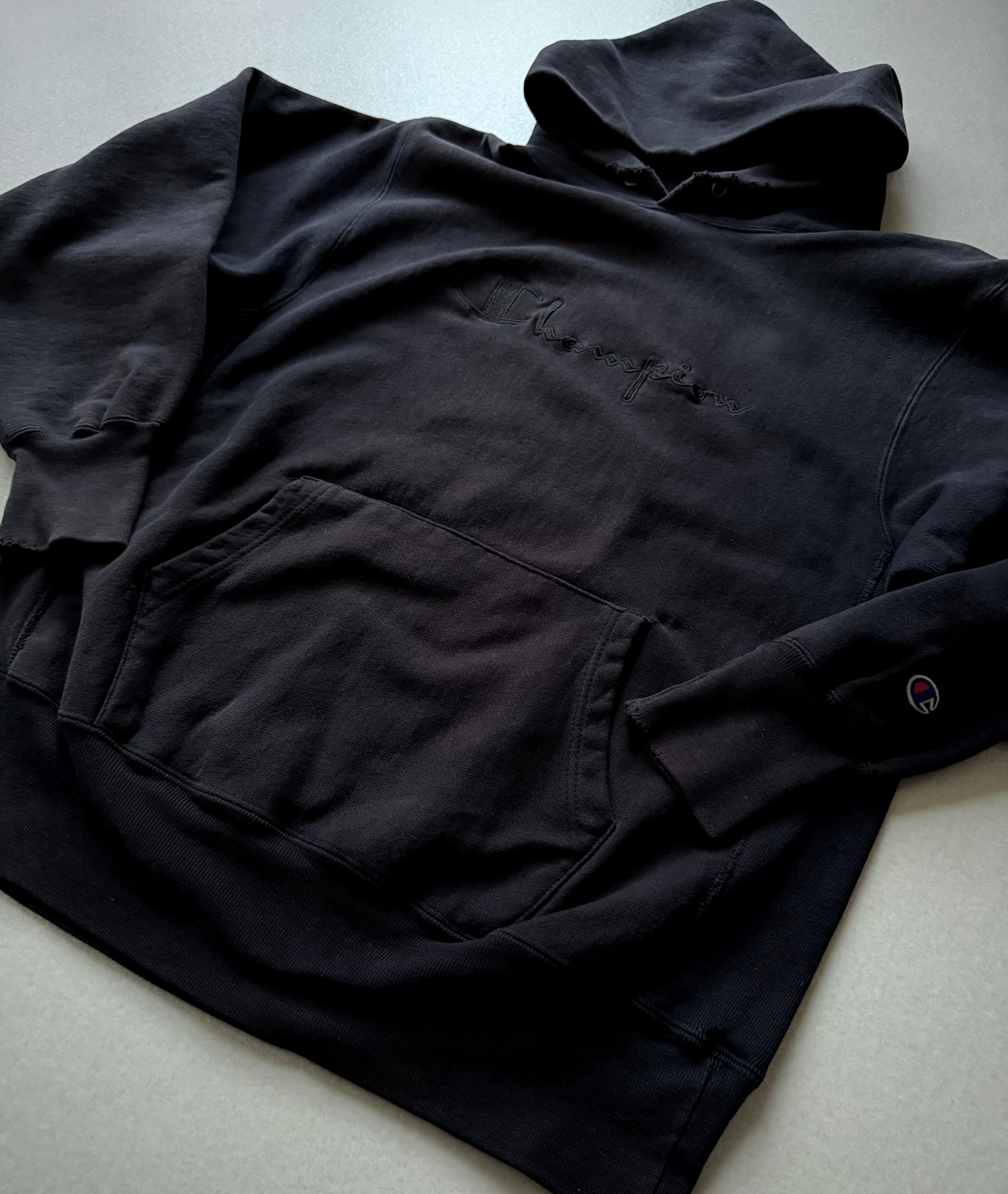 90s〜 MADE IN USA “ CHAMPION ” BLACK REVERSE WEAVE PARKA OLD VINTAGE 。