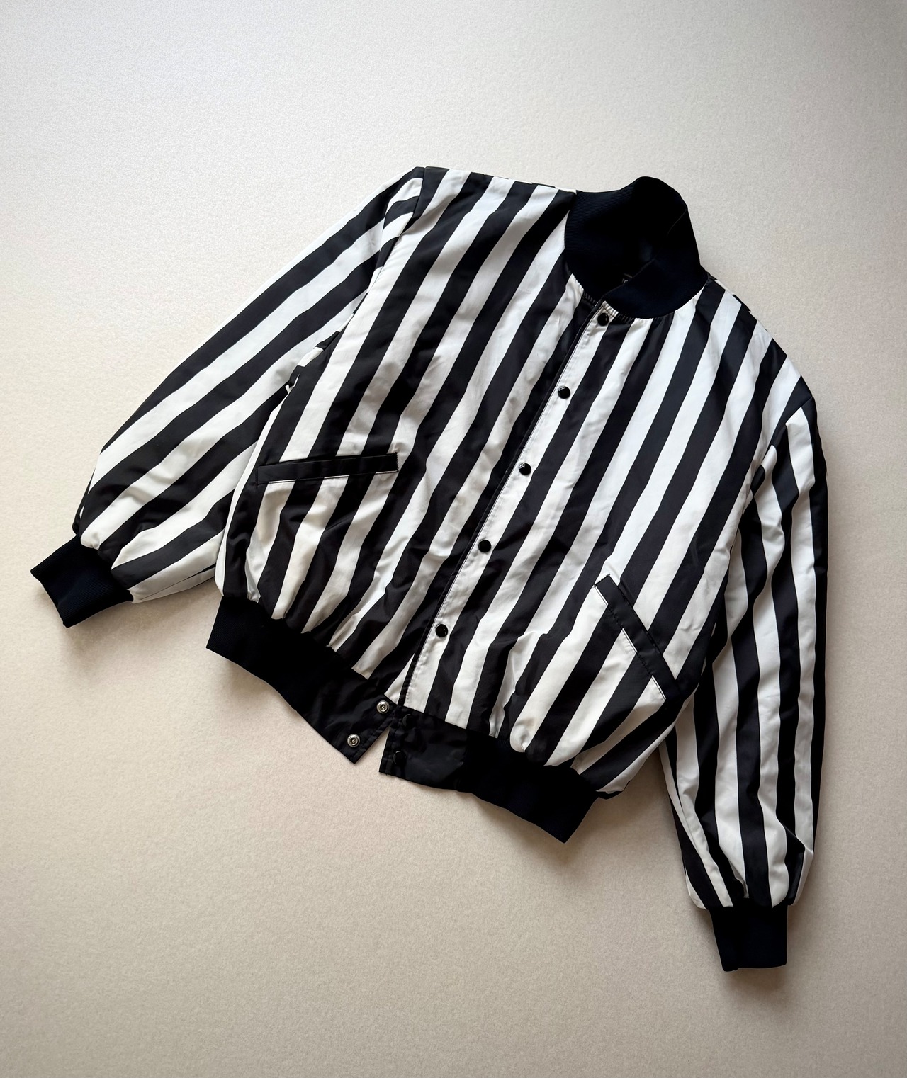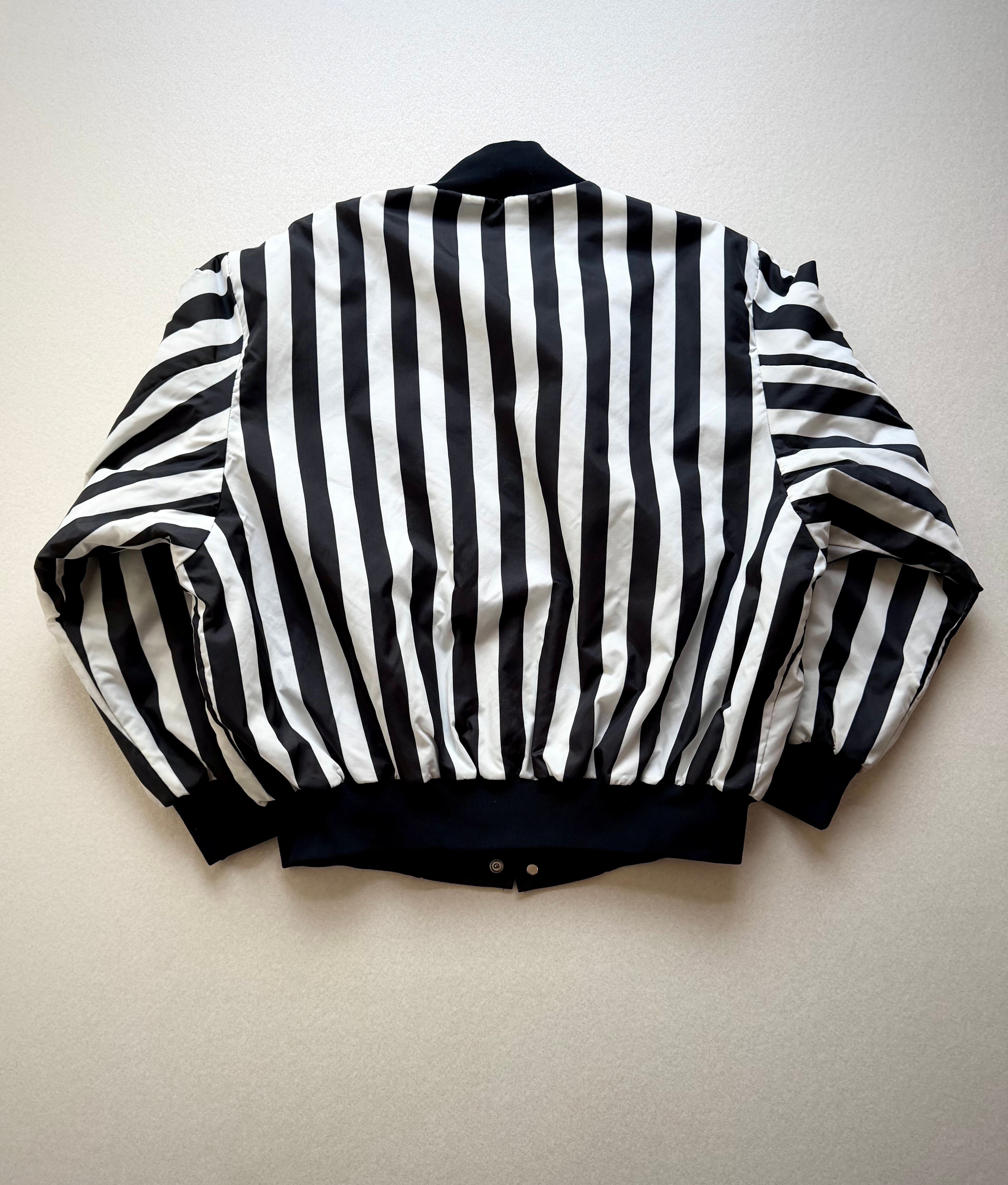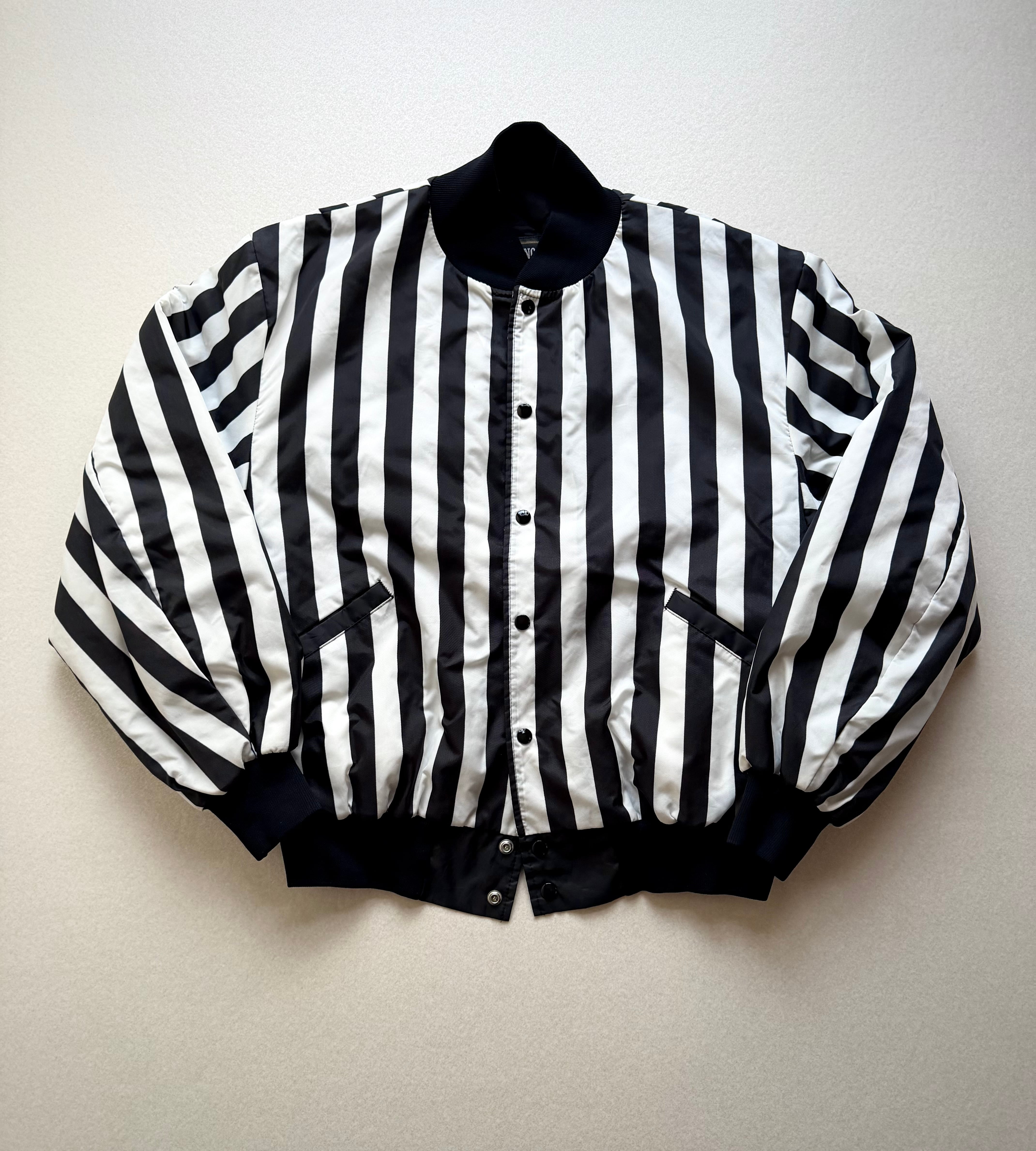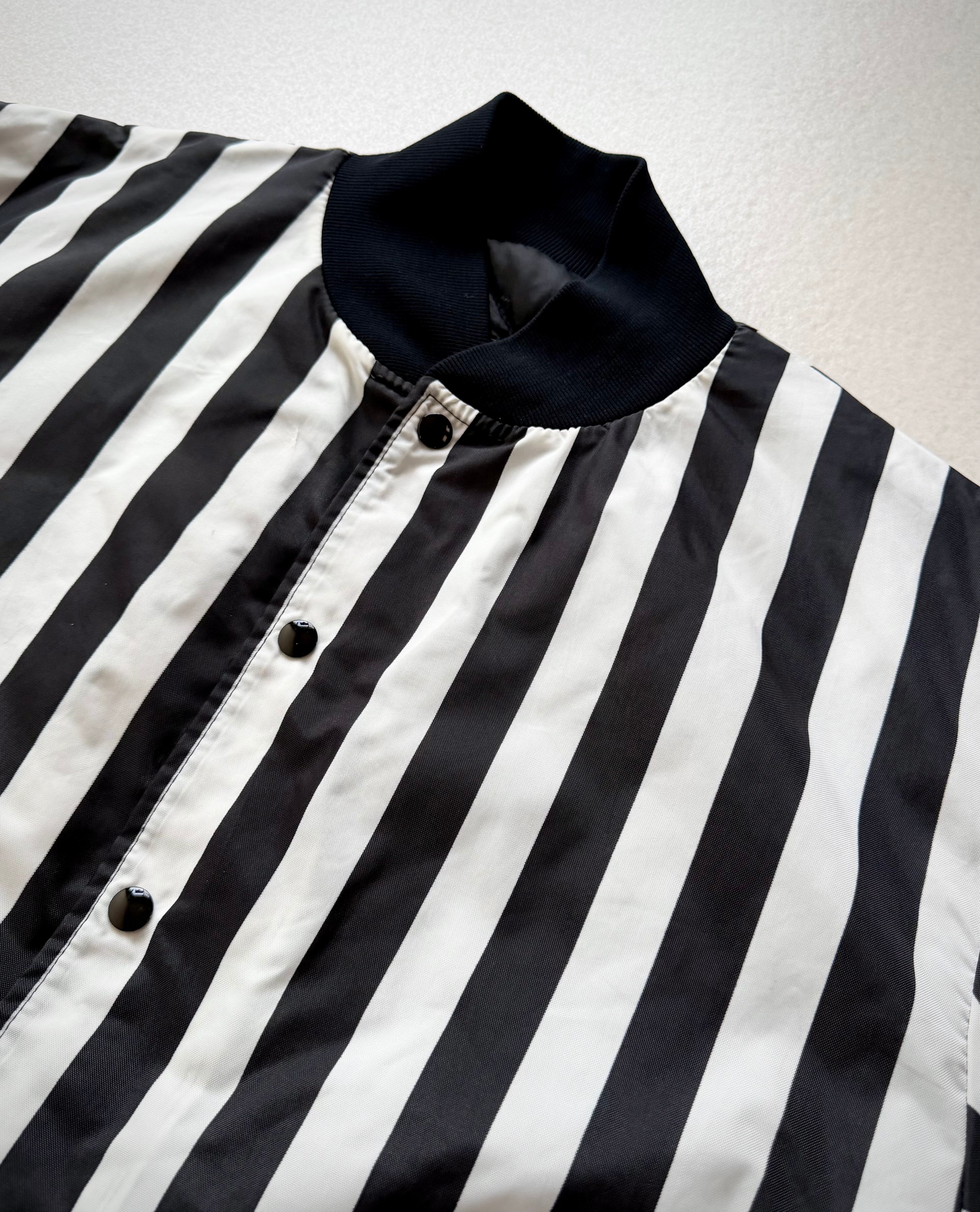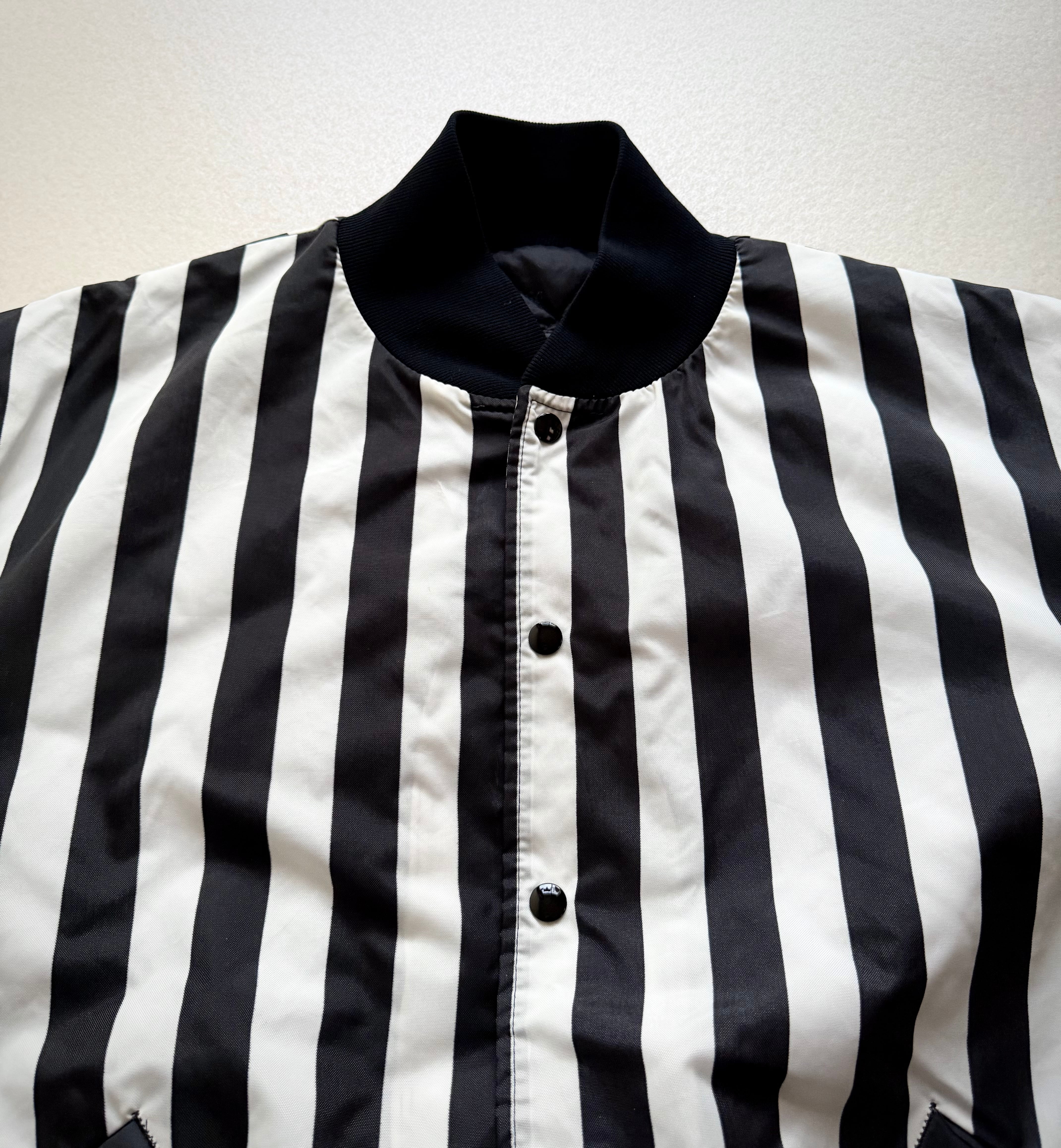 ブラック×ホワイトのワイドストライプが非常に印象的なツートーンのスタジャンスタイル、少しハリのあるナイロンベースに中綿キルティングと軽量ながら保温性もありシリーズとしては恐らくレフェリー用と思われる意外と少ないレアなジャケット。