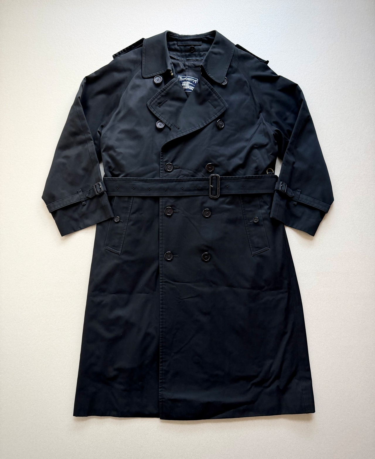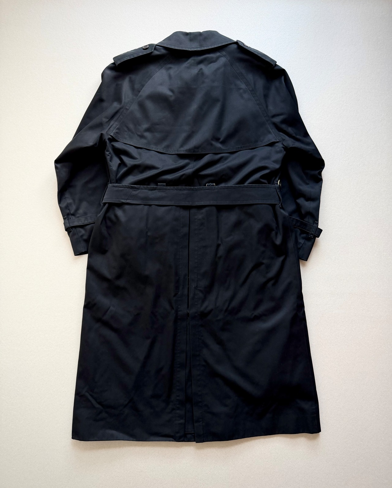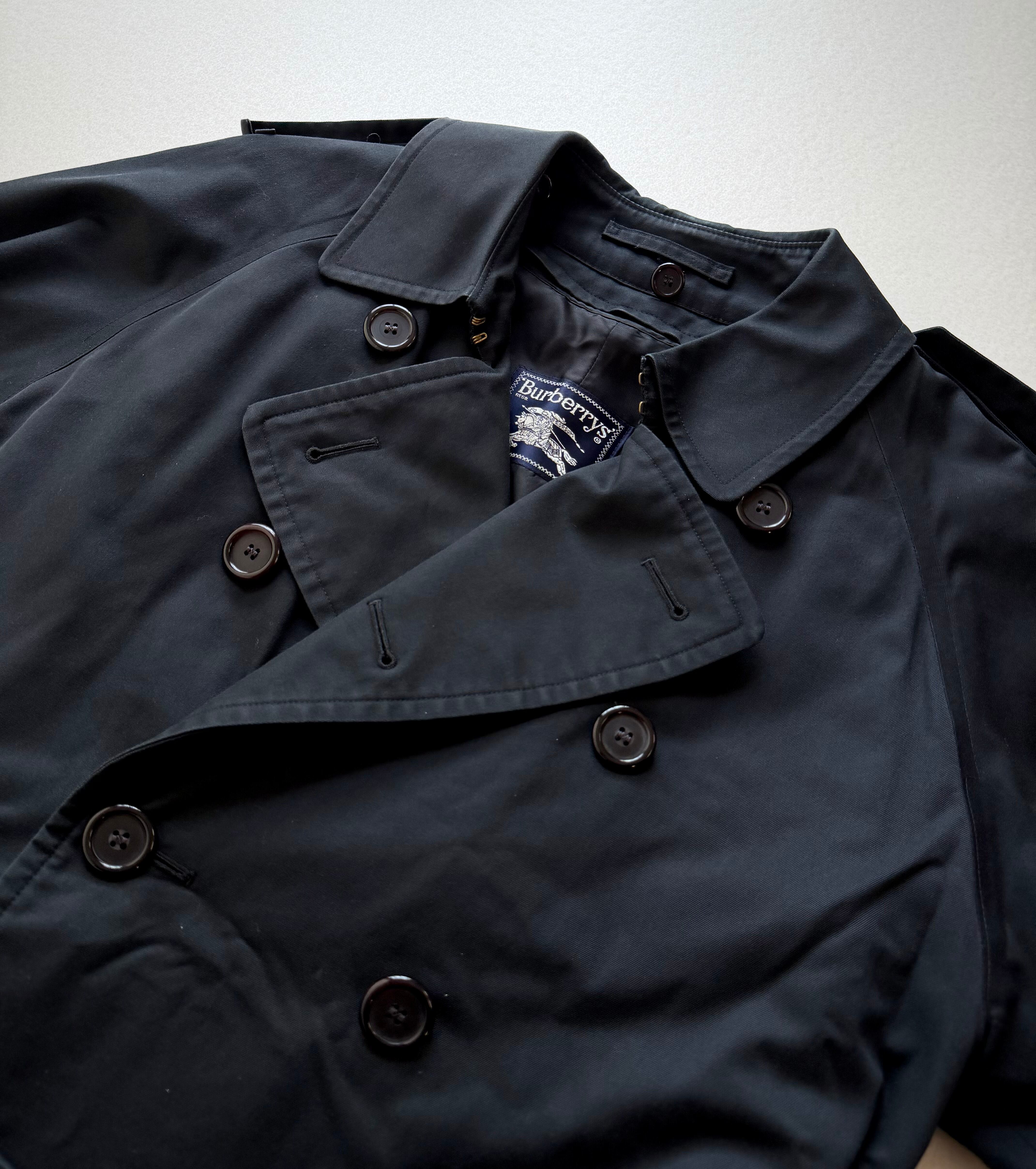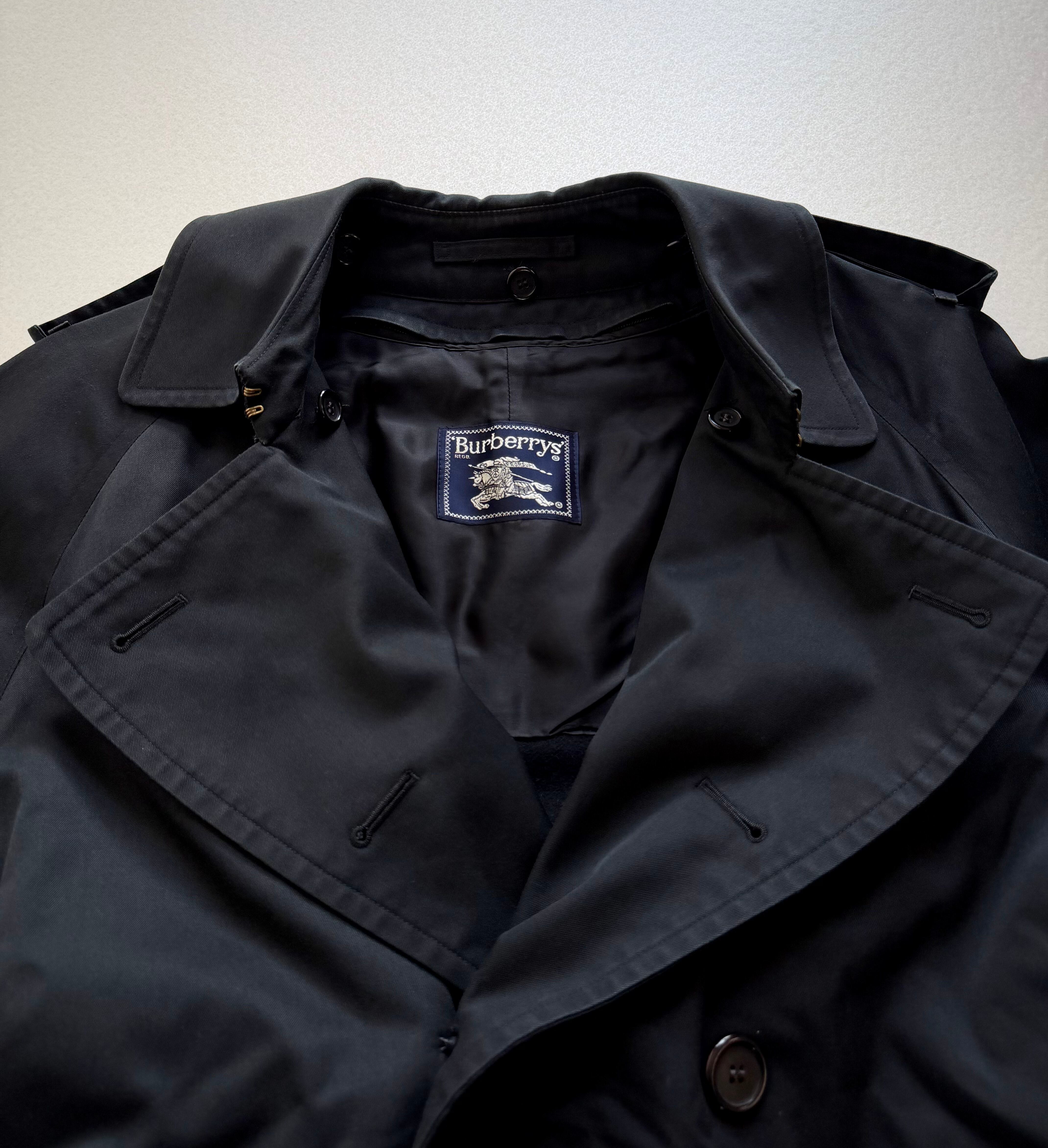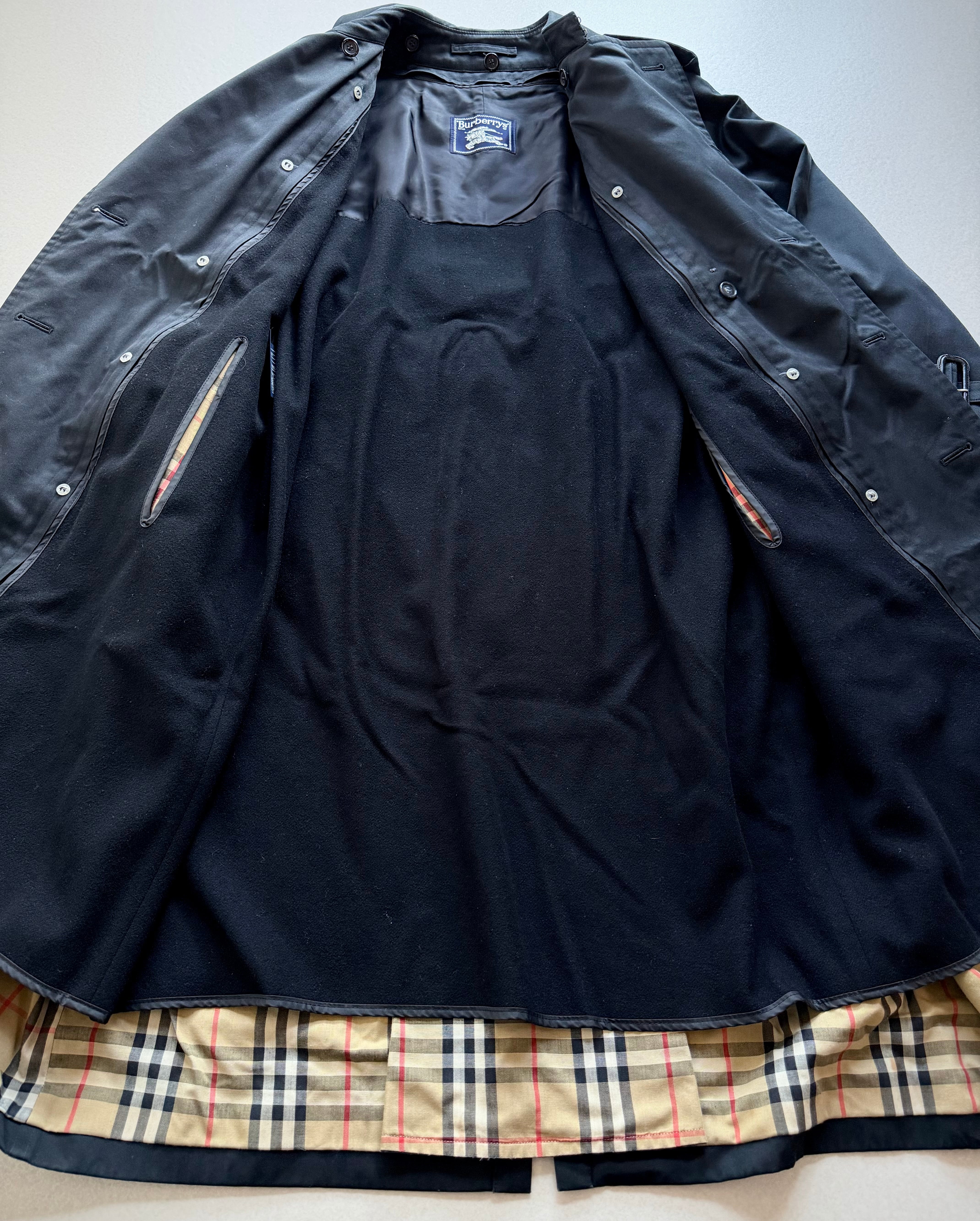 80s-90s MADE IN FRANCE “ BURBERRYS ” LONG TRENCH COAT BLACK OLD VINTAGE 。