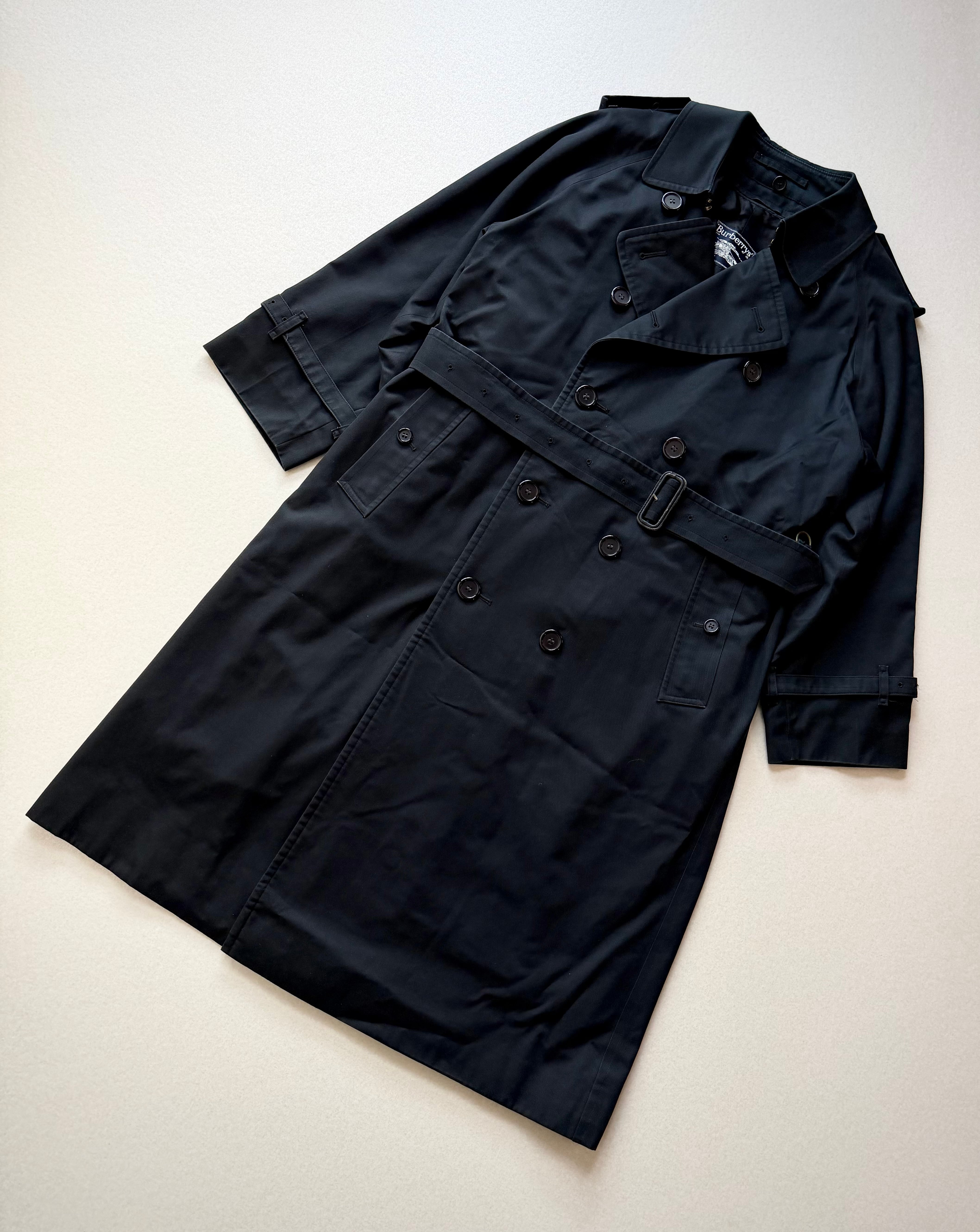 80s-90s FRANCE製 “ BURBERRYS ” LONG TRENCH COAT BLACK OLD VINTAGE フランス製 バーバリー トレンチコート ブラック オールド ビンテージ