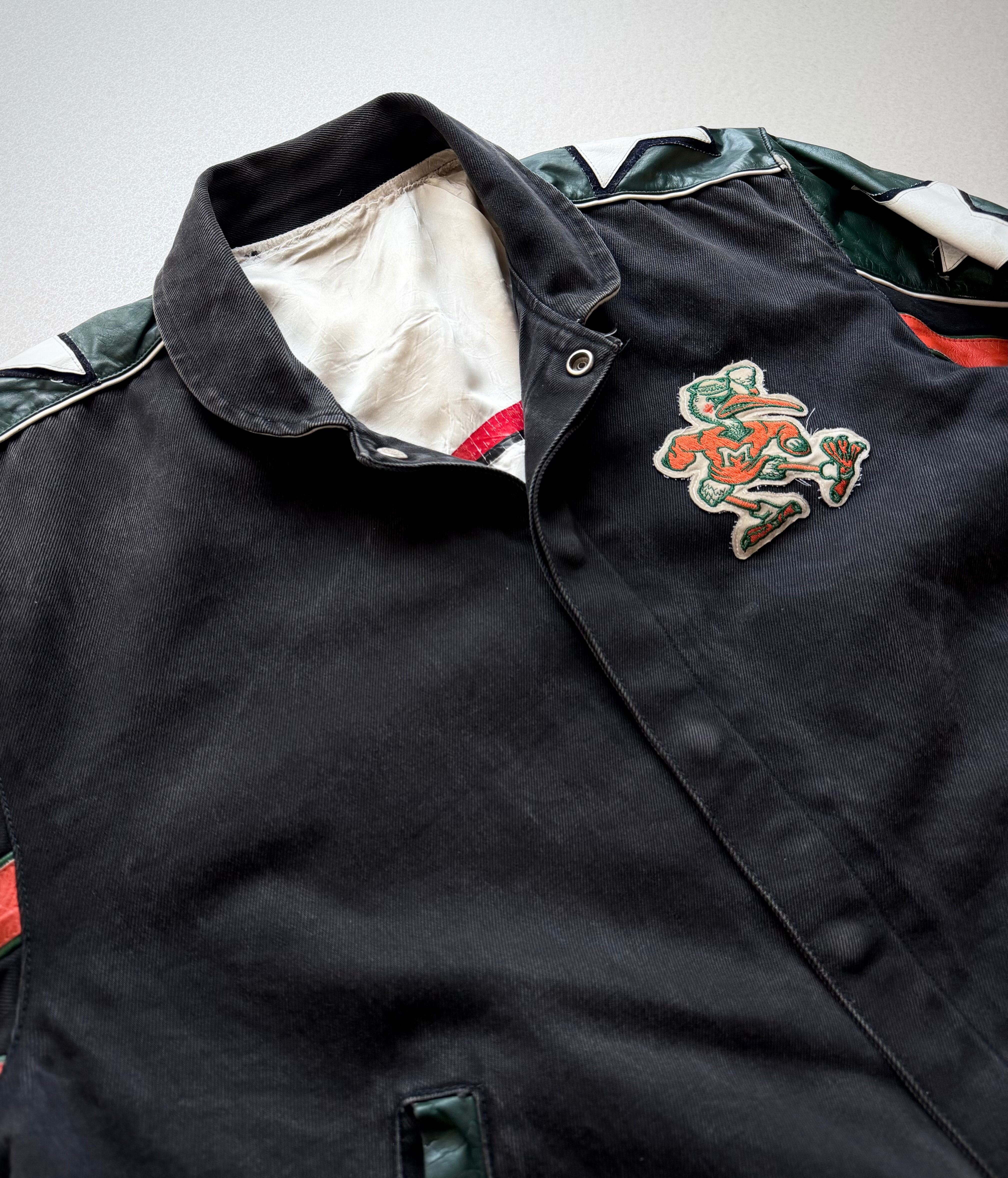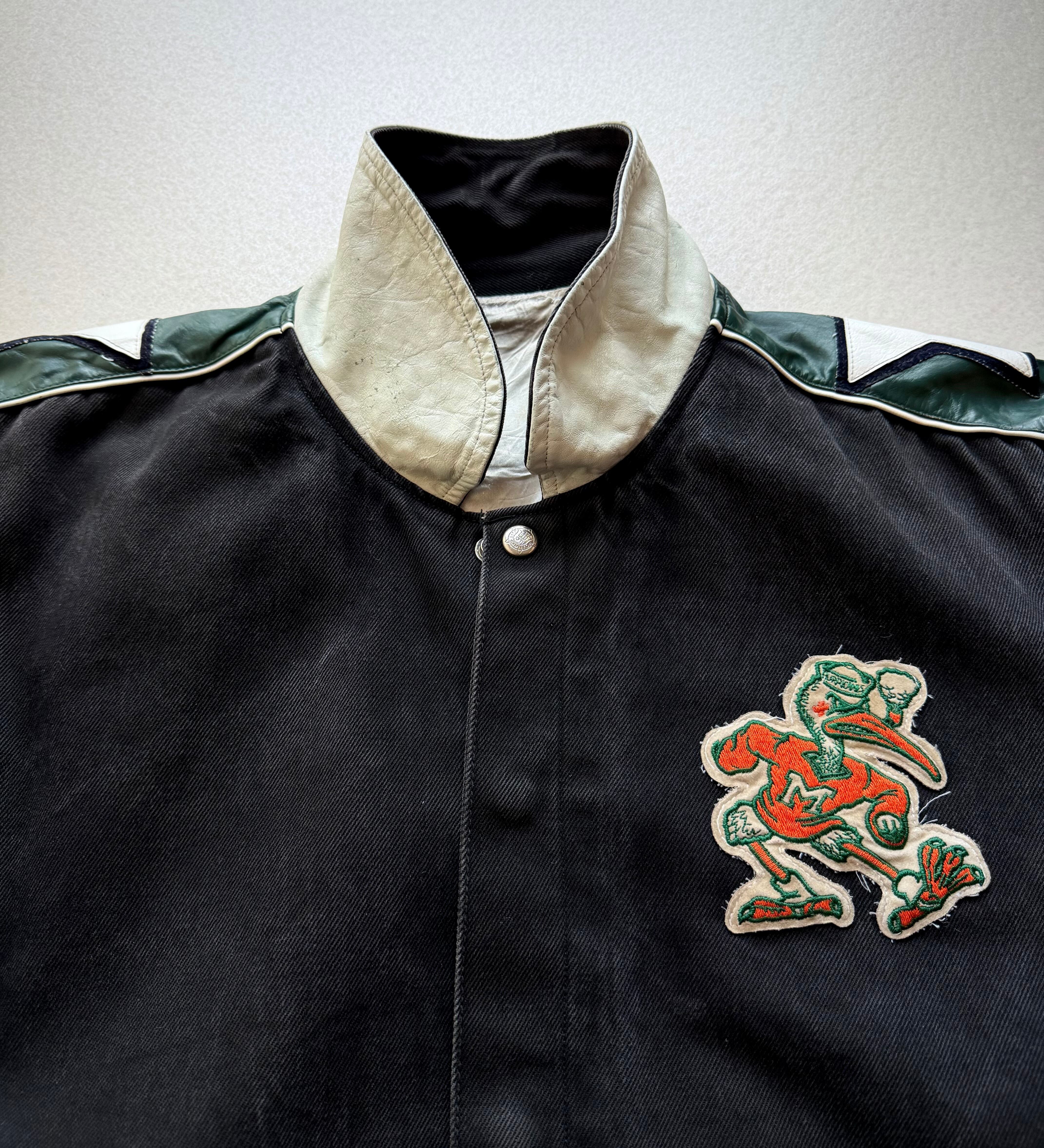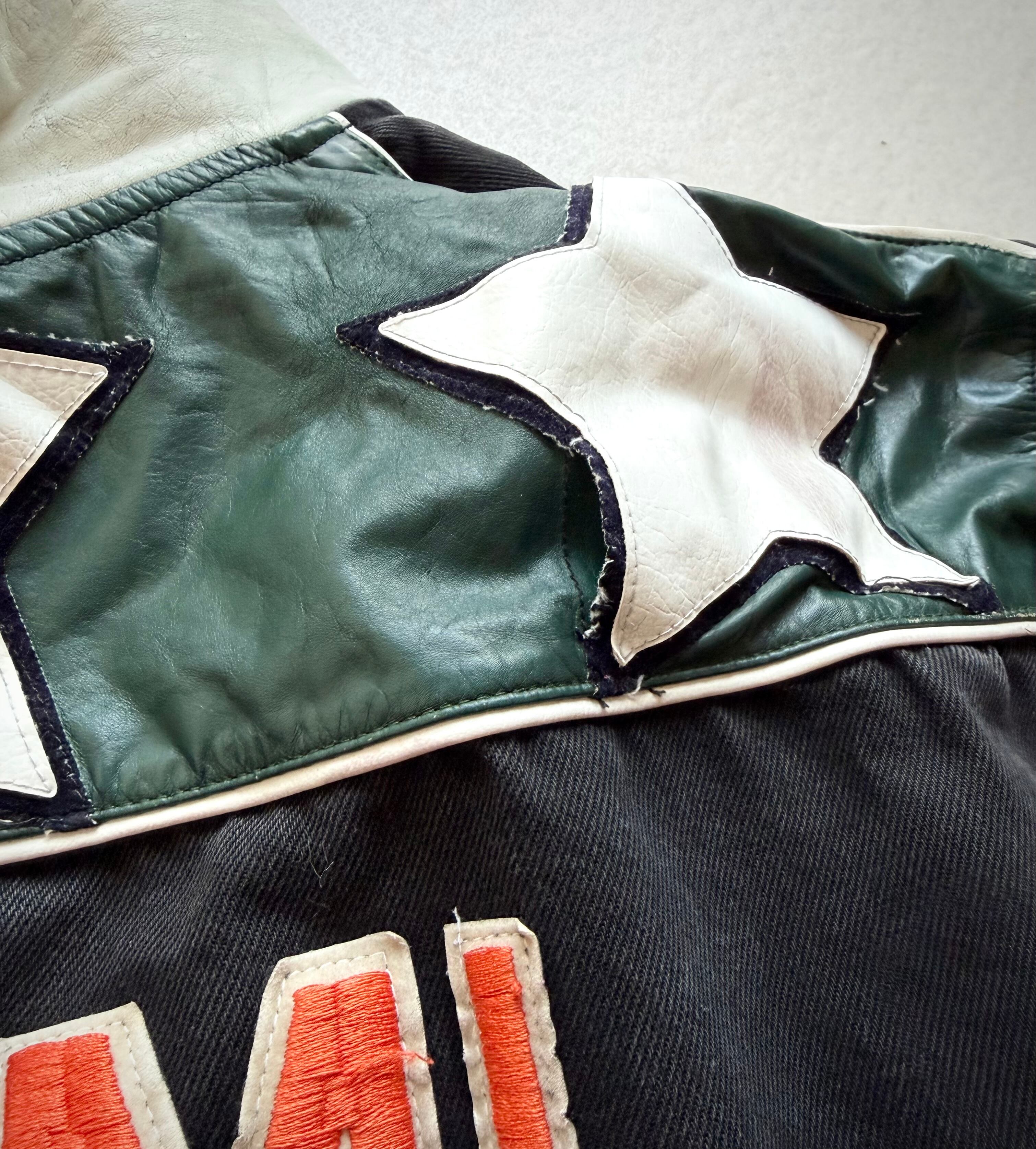 80s-90s MADE IN USA “ JEFF HAMILTON ” MIAMI HURRICANES STADIUM JACKET VINTAGE 。