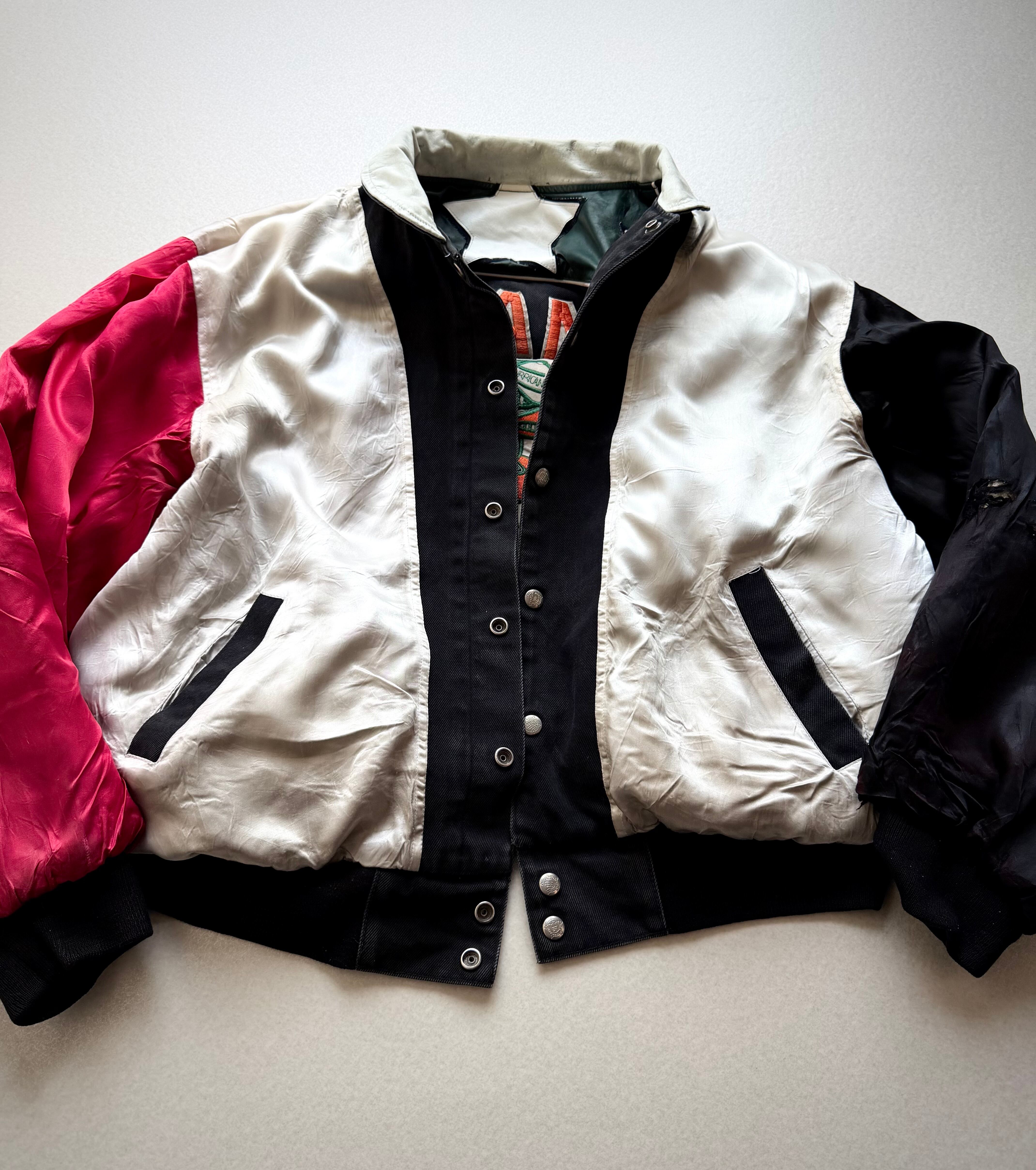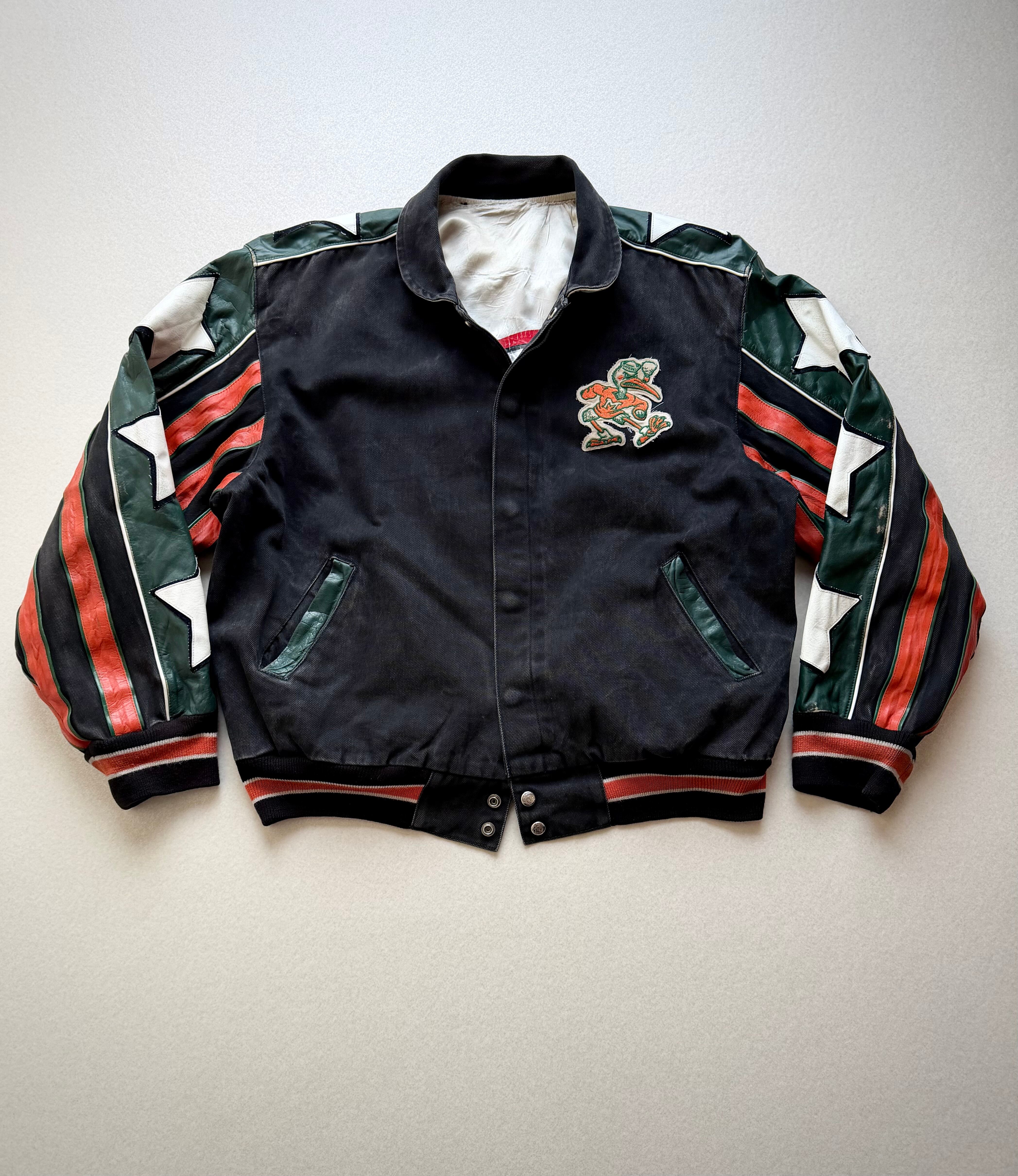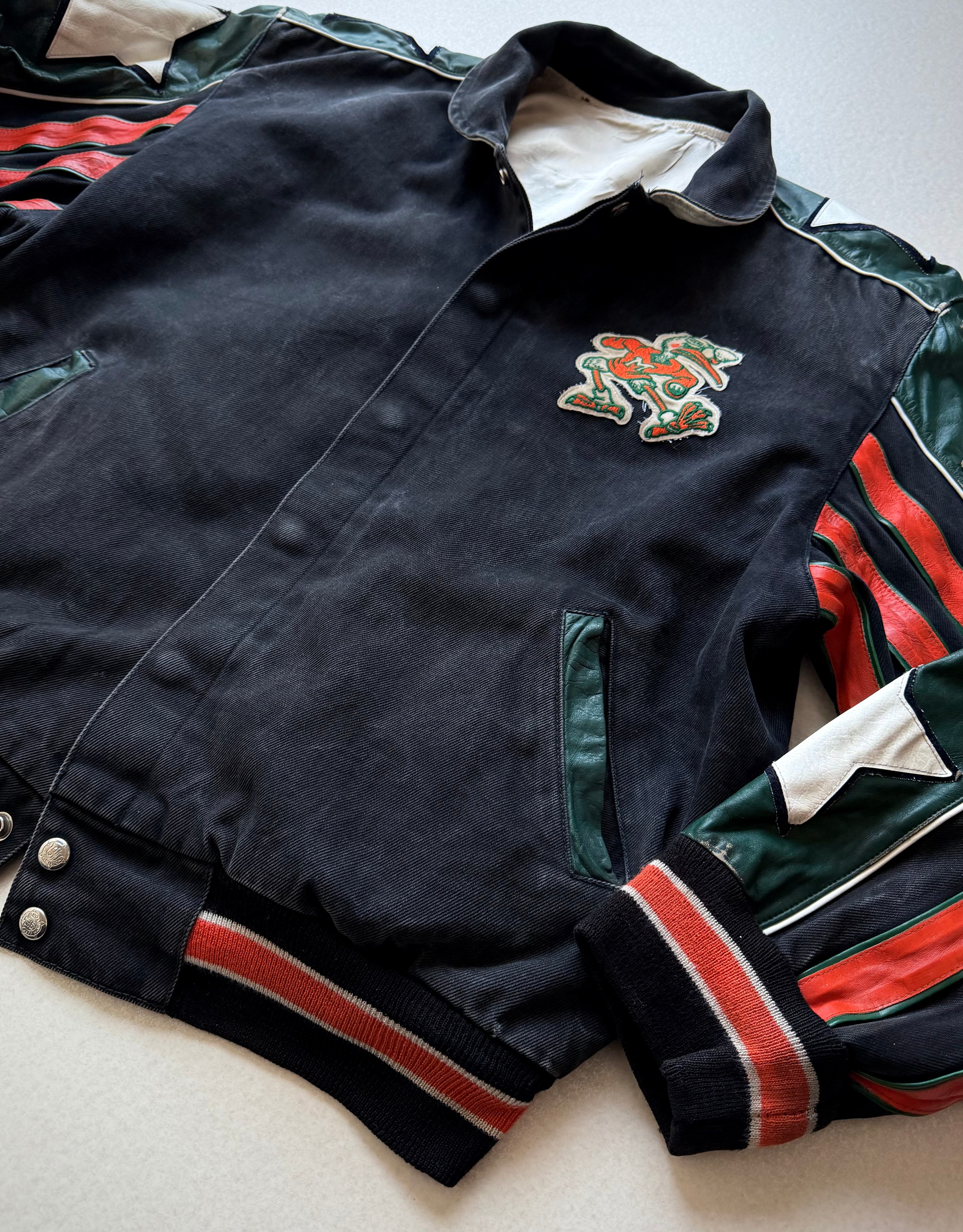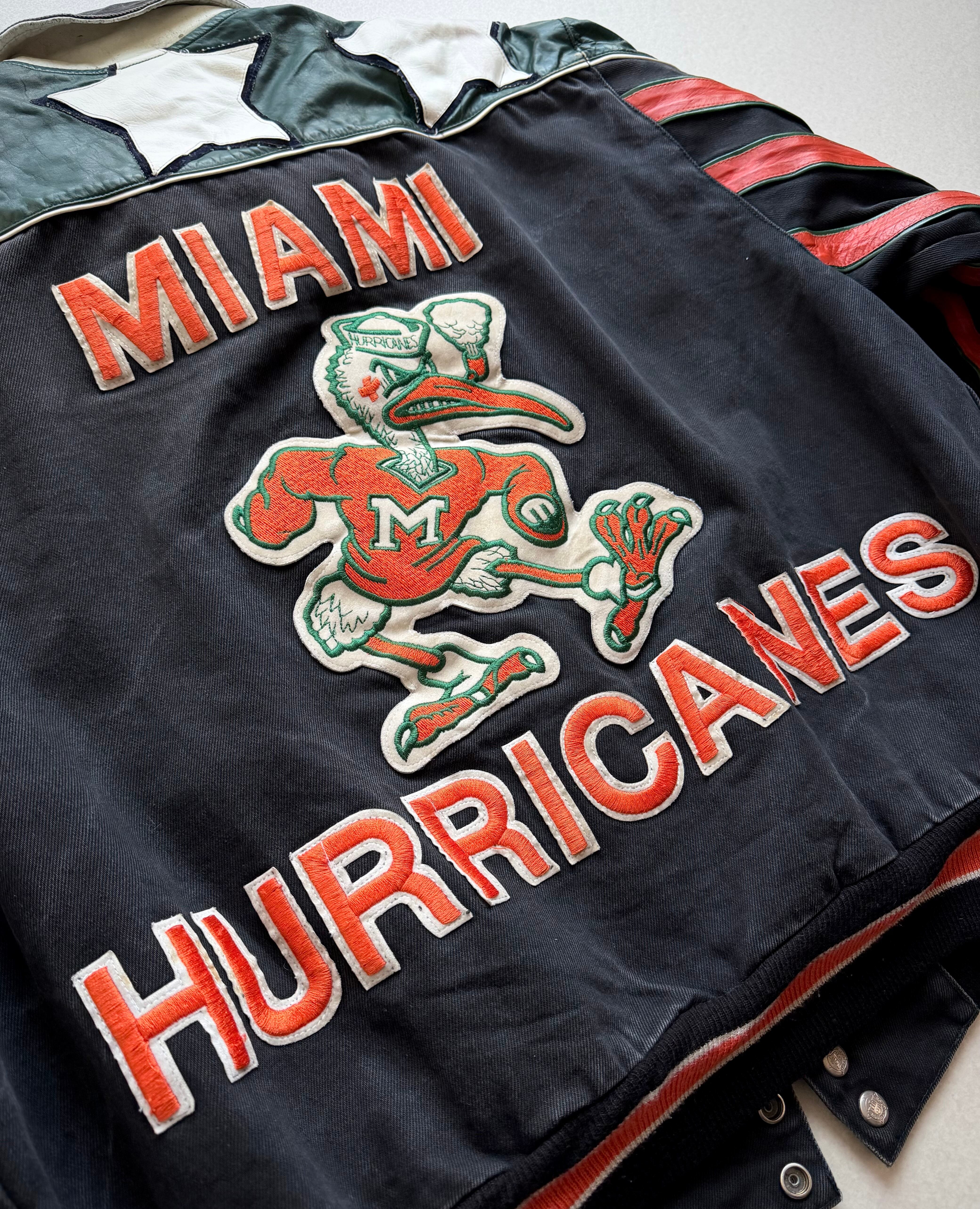 80s-90s MADE IN USA “ JEFF HAMILTON ” MIAMI HURRICANES STADIUM JACKET VINTAGE 。