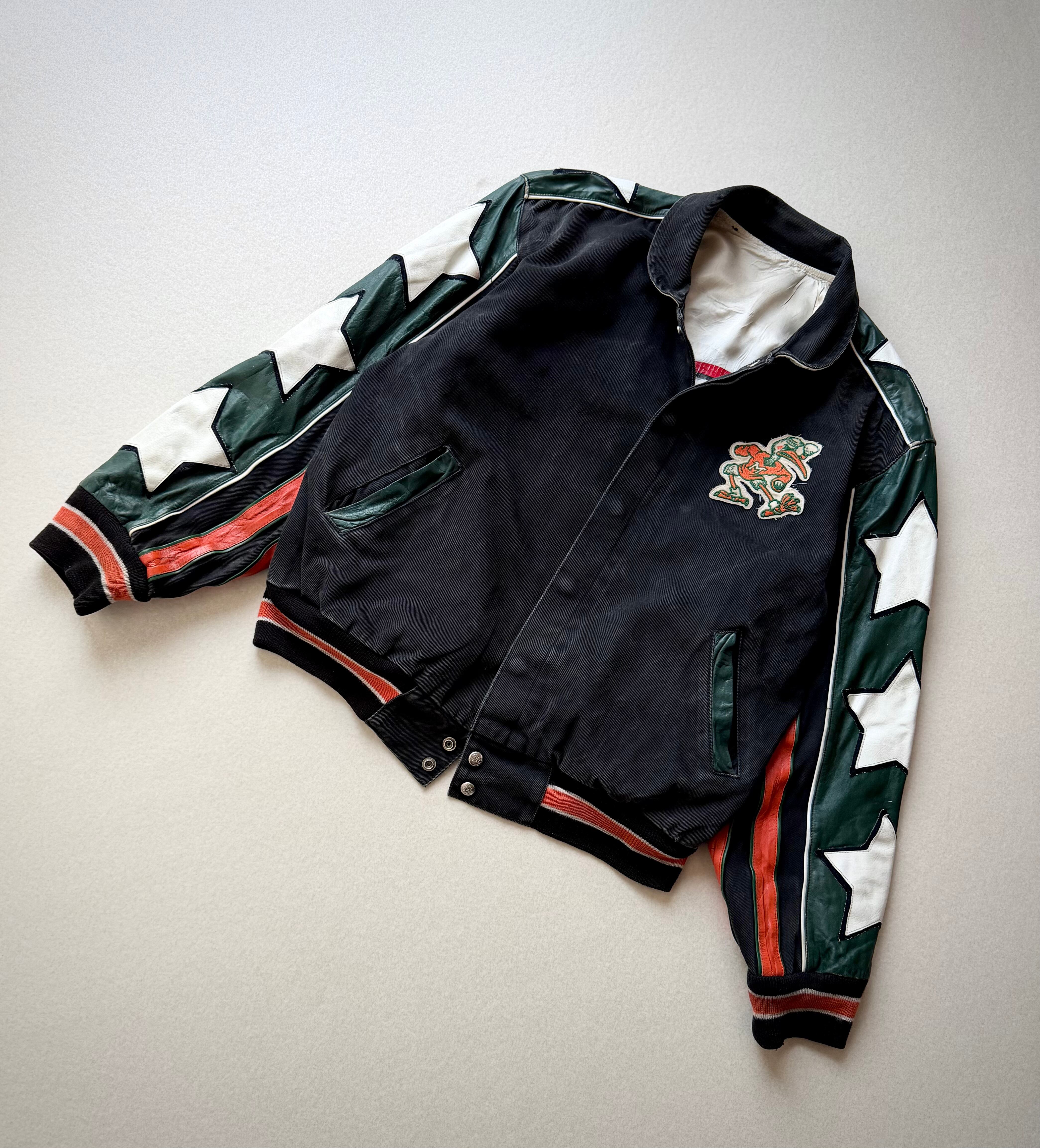 レザージャケットの皇帝と称されている伝説的なデザイナー《 JEFF HAMILTON 》が手掛けるマイアミハリケーンズ,スタジアムジャケット。