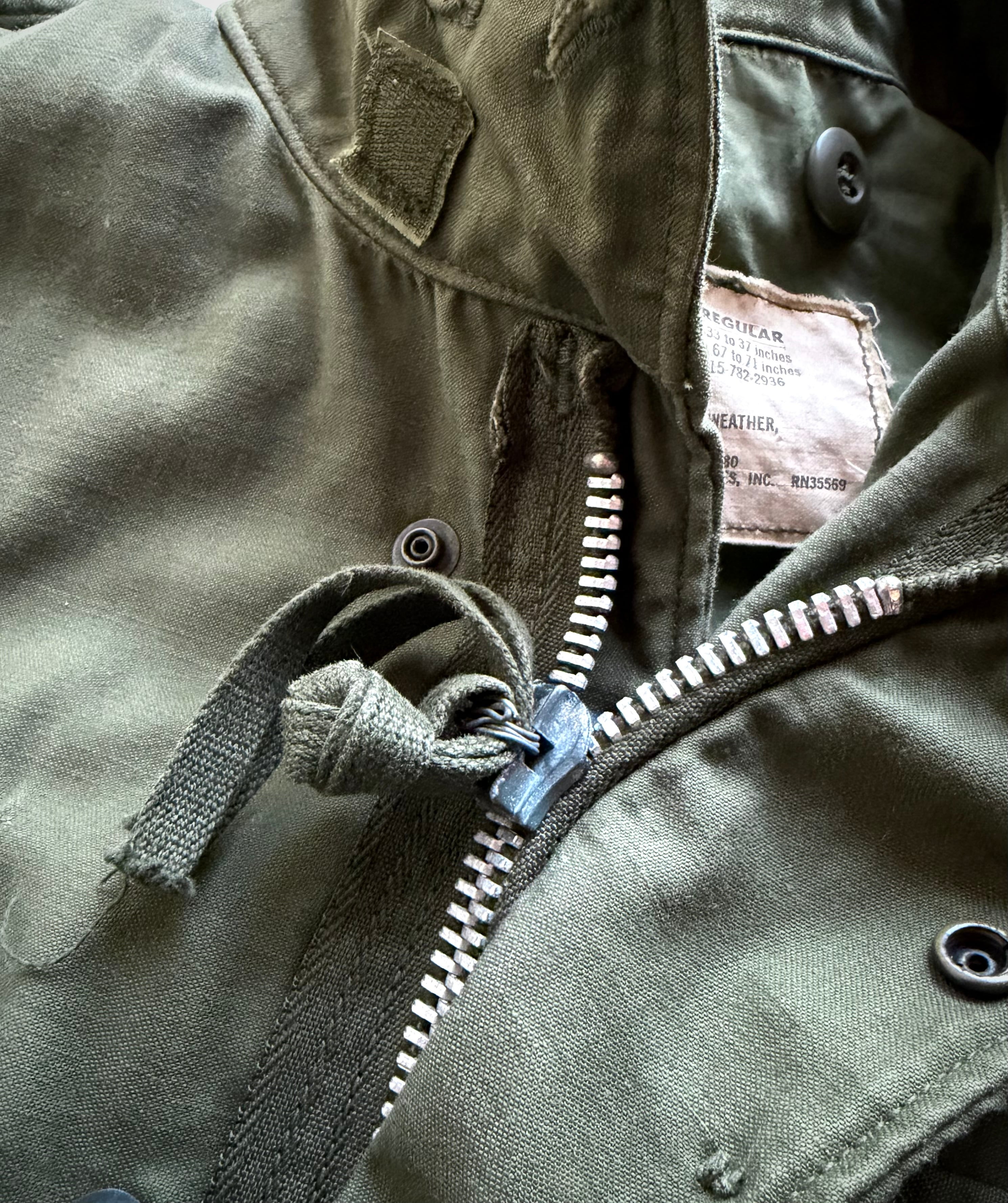 1950年代〜約15年間採用された“M-51”の意匠を引き継ぎモデルチェンジされ新たに誕生した“M-65.FIELD JACKET”、実際に納入されていた米軍実物71s,VINTAGE ORIGINAL 。