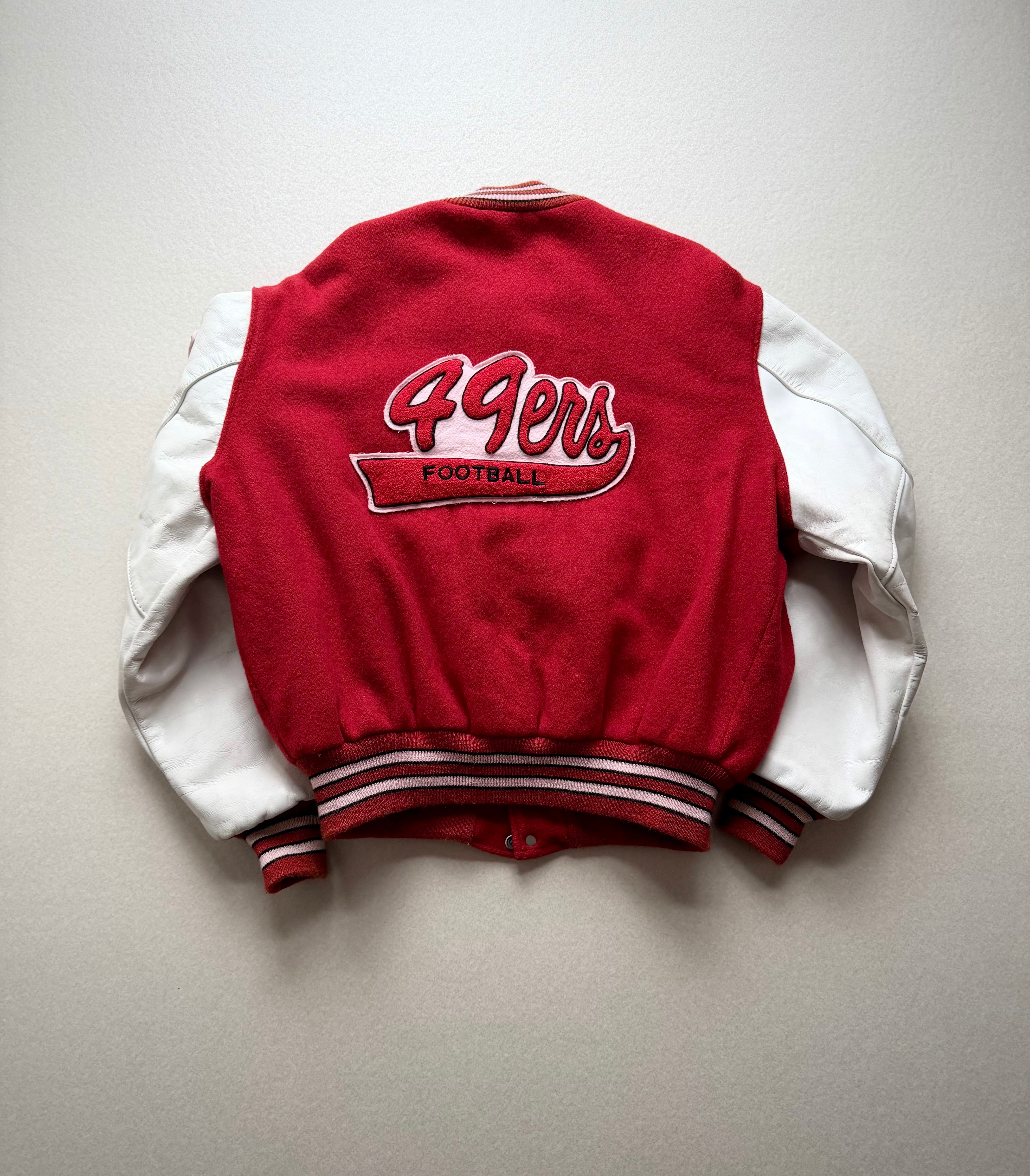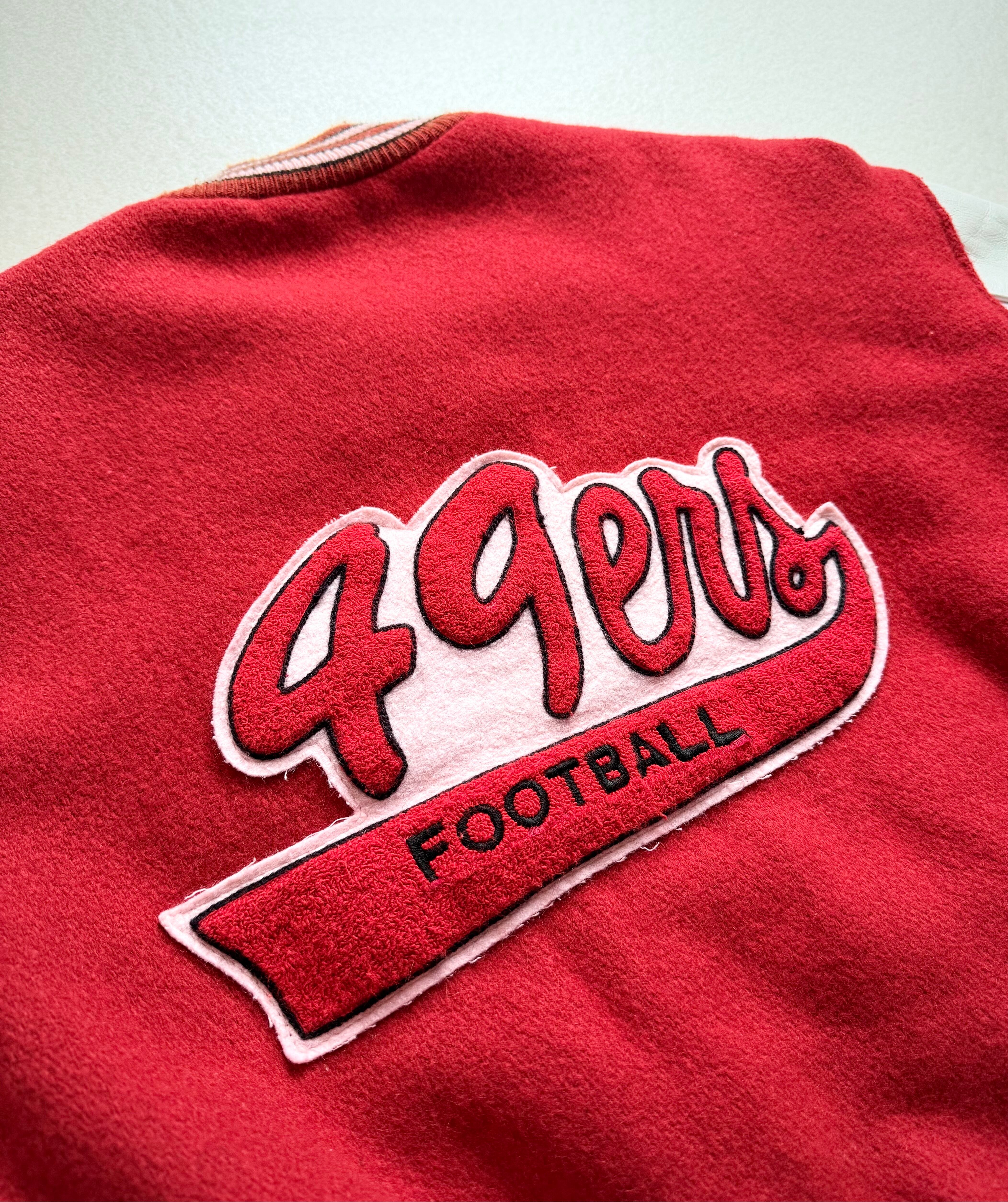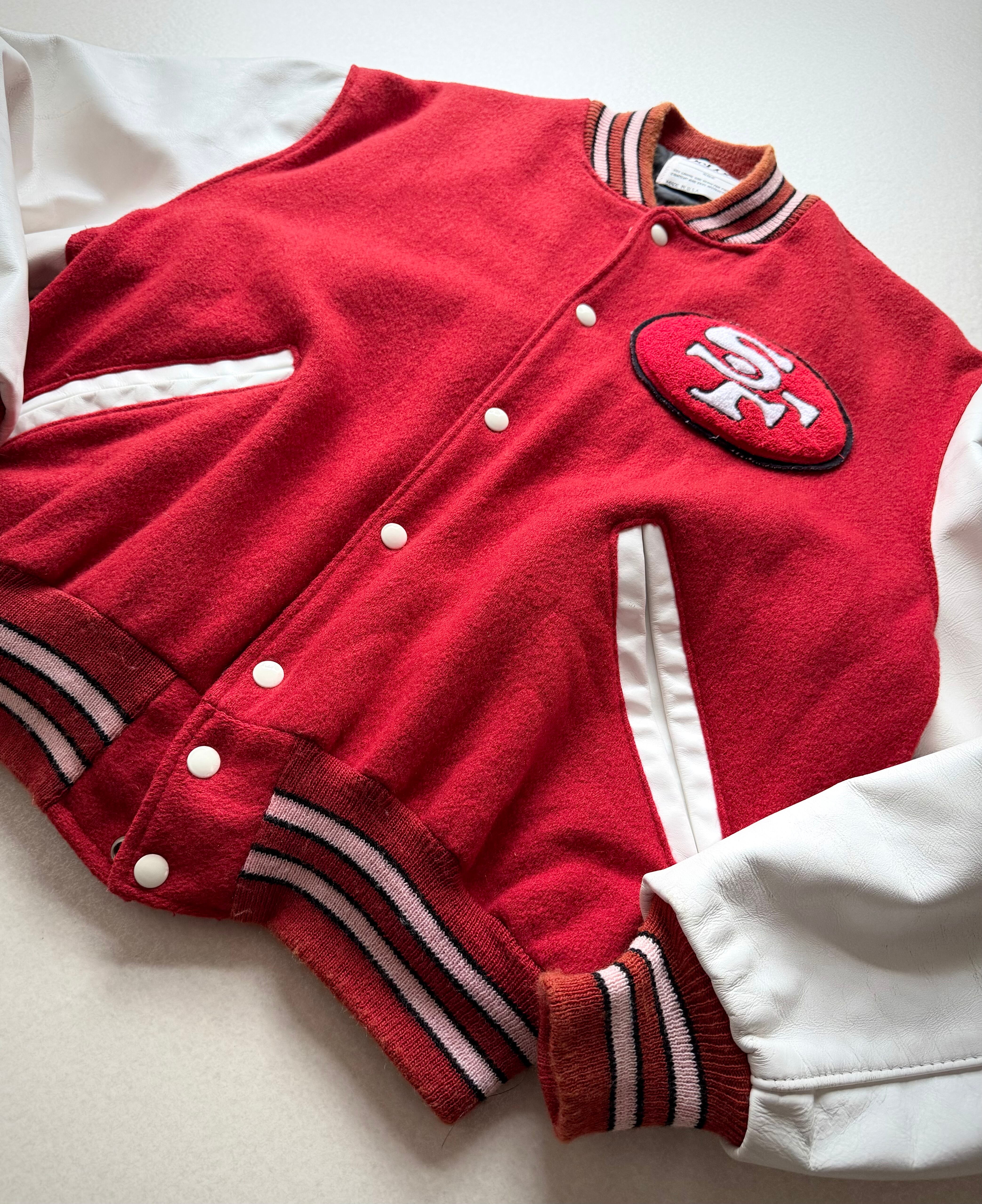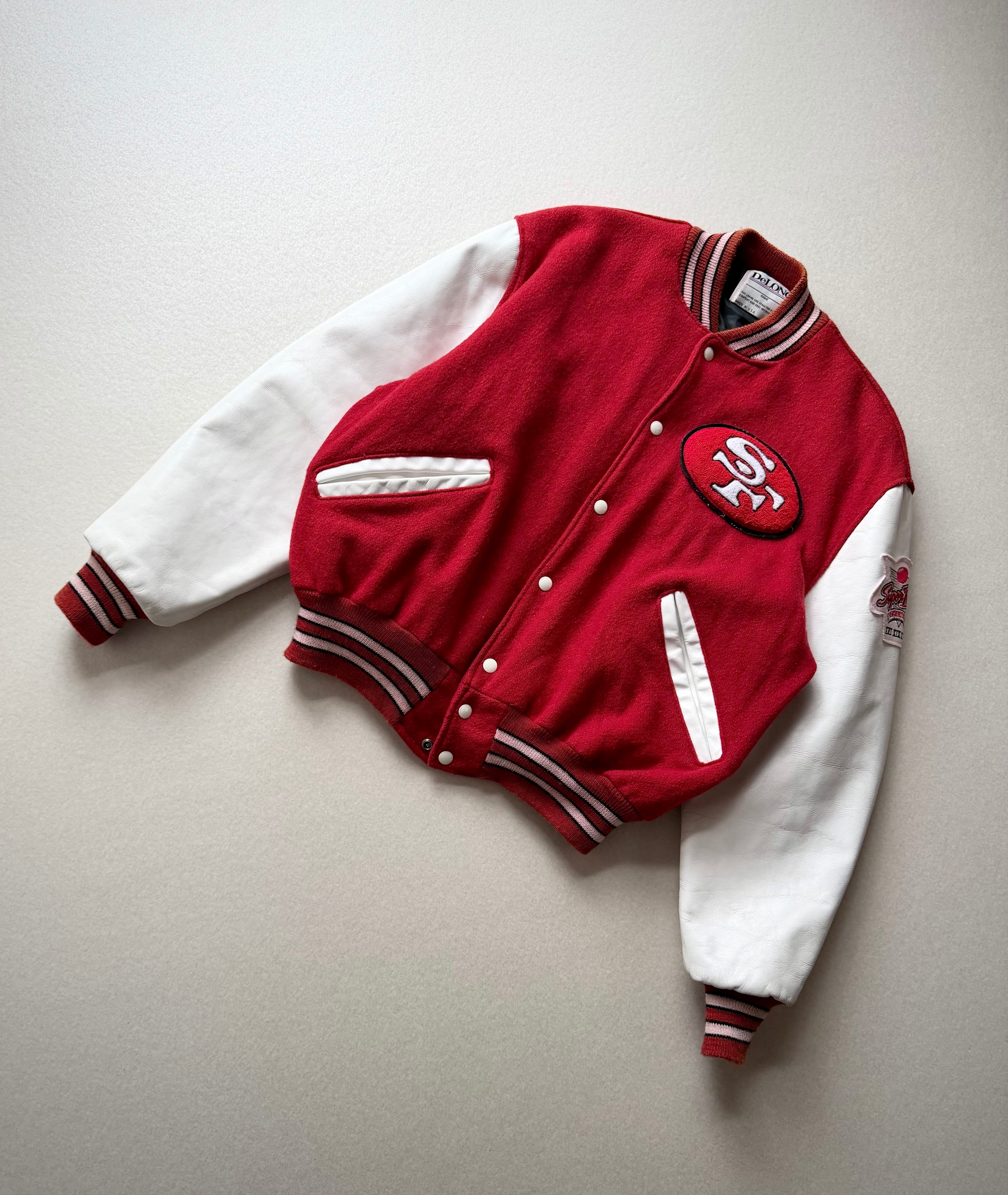 80s MADE IN USA “ DeLONG / SF 49ers ” NFL CHAMPS STADIUM JACKET OLD VINTAGE 。