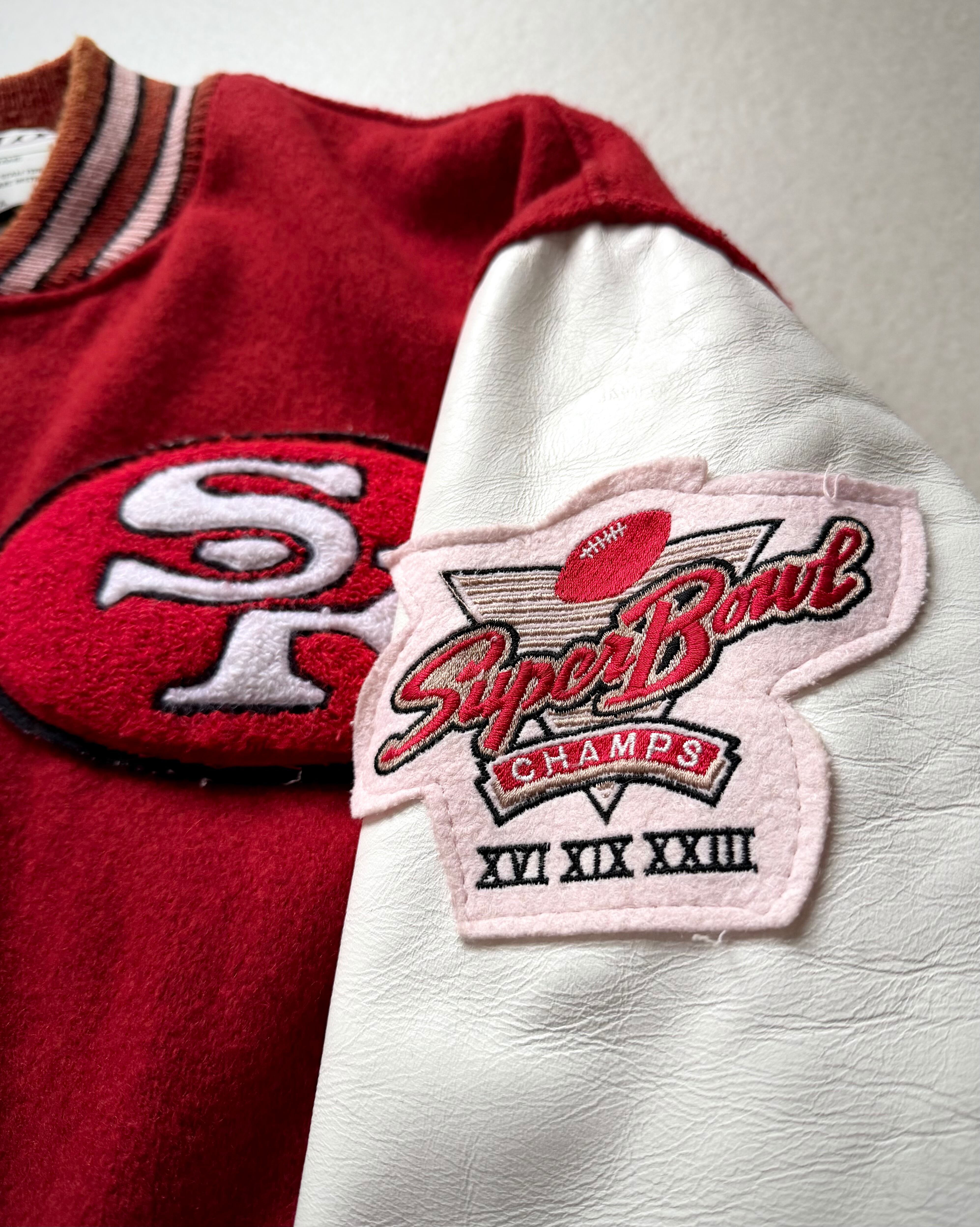 チームカラーでもあるスカーレット×ホワイトのツートーンにリブラインが効いたお馴染みのグッドなカラーリング、スリーブにはSUPER BOWL優勝記念のCHAMPSワッペンが付いたこの時だけのレアなリミテッドジャケット。