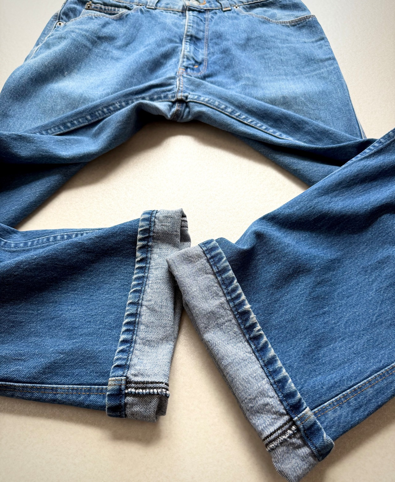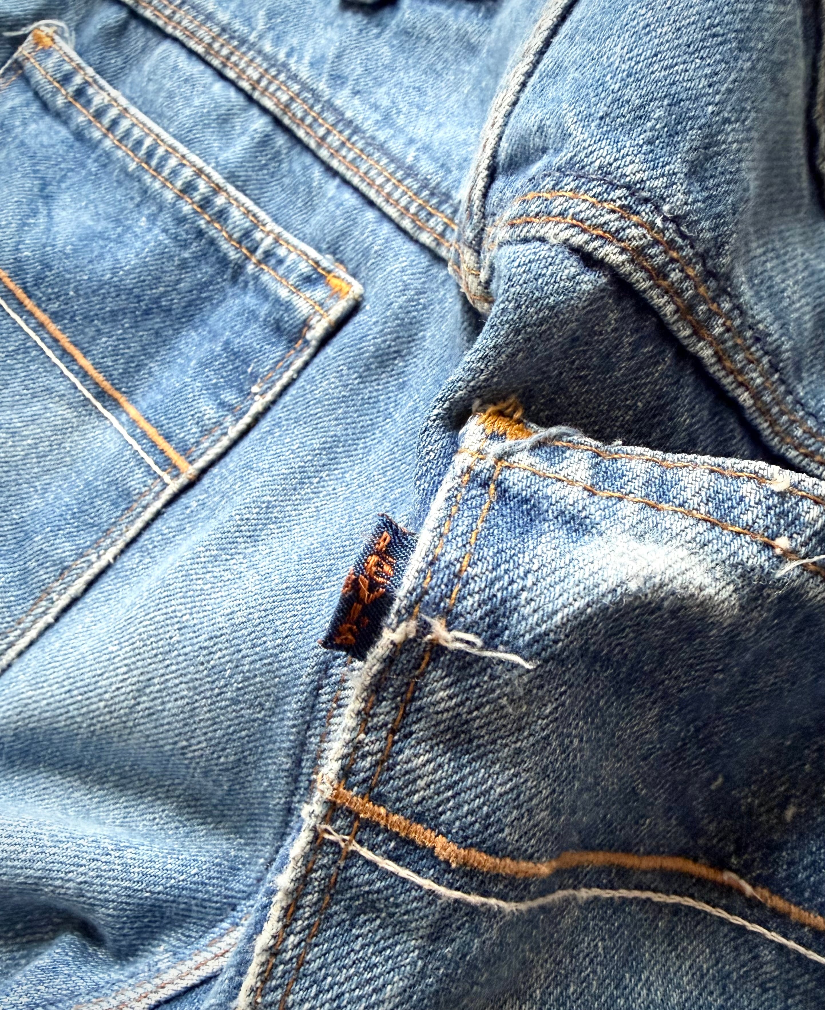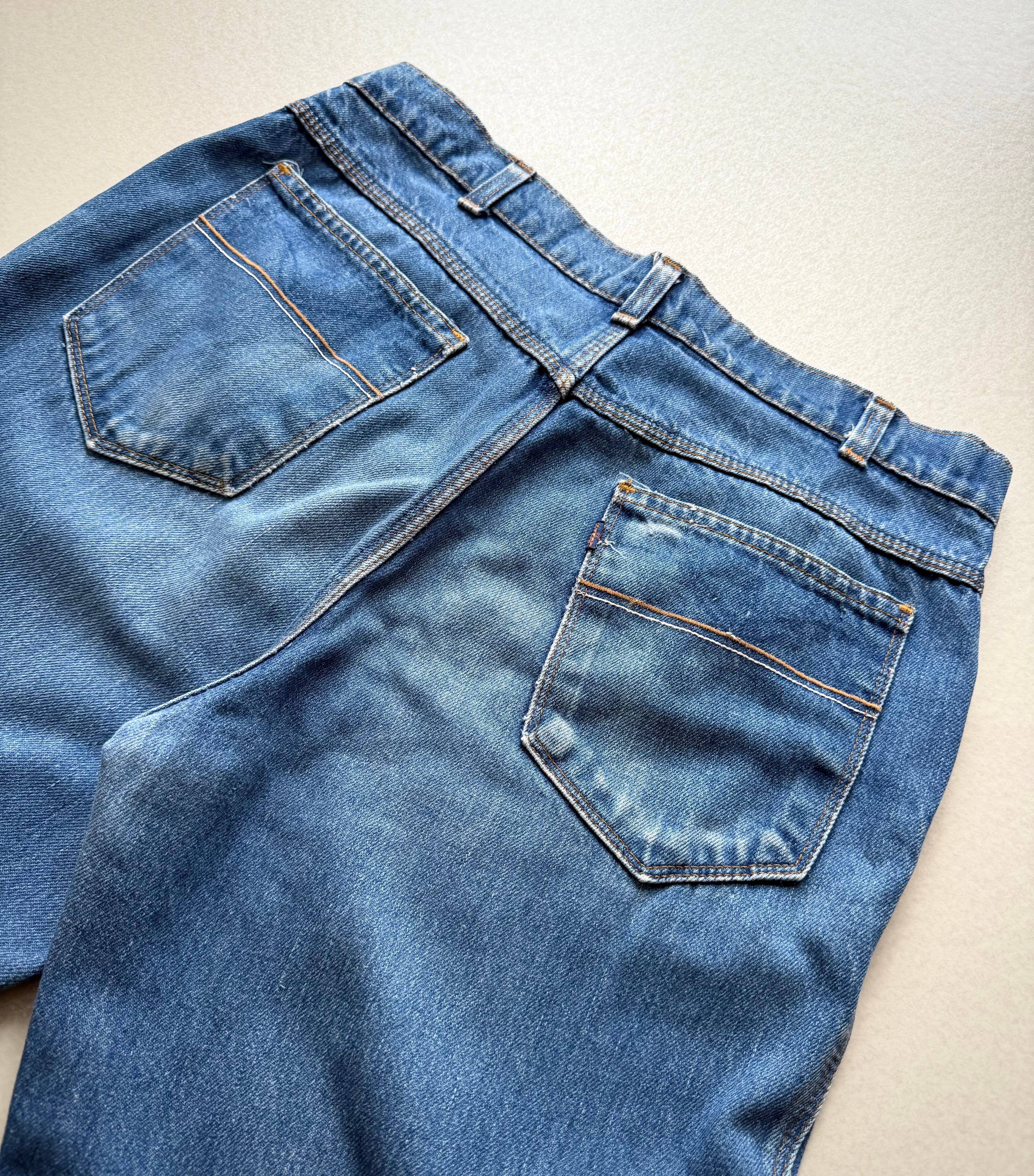 70年代を象徴するデザインが多くやはり特徴的なのはバックポケットやトリプルステッチに通常とは異なるネイビータブと変わったディティールも面白く、MOVIN’ONらしい魅力を味わえる雰囲気の良い1本です。