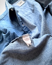 ウエストにかけて程良くにシェイプされた綺麗な曲線にスナップボタンやヨークの切り替えとワークテイストながらドレスシャツの様な印象をも感じさせる品のある仕上がりとなっております。