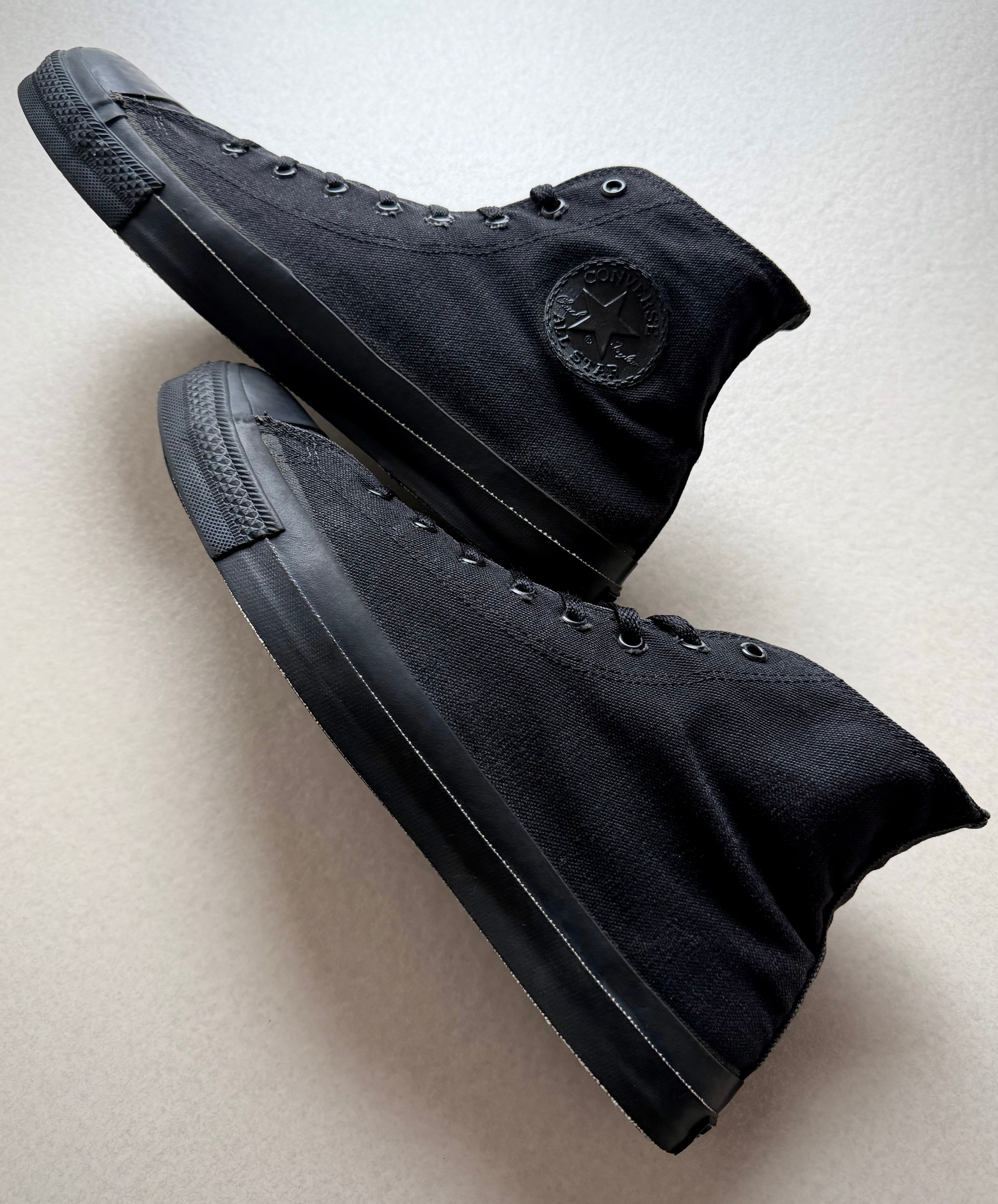 90s〜 MADE IN USA “ CONVERSE ” ALL-STAR CANVAS HI ALL BLACK OLD VINTAGE 。
