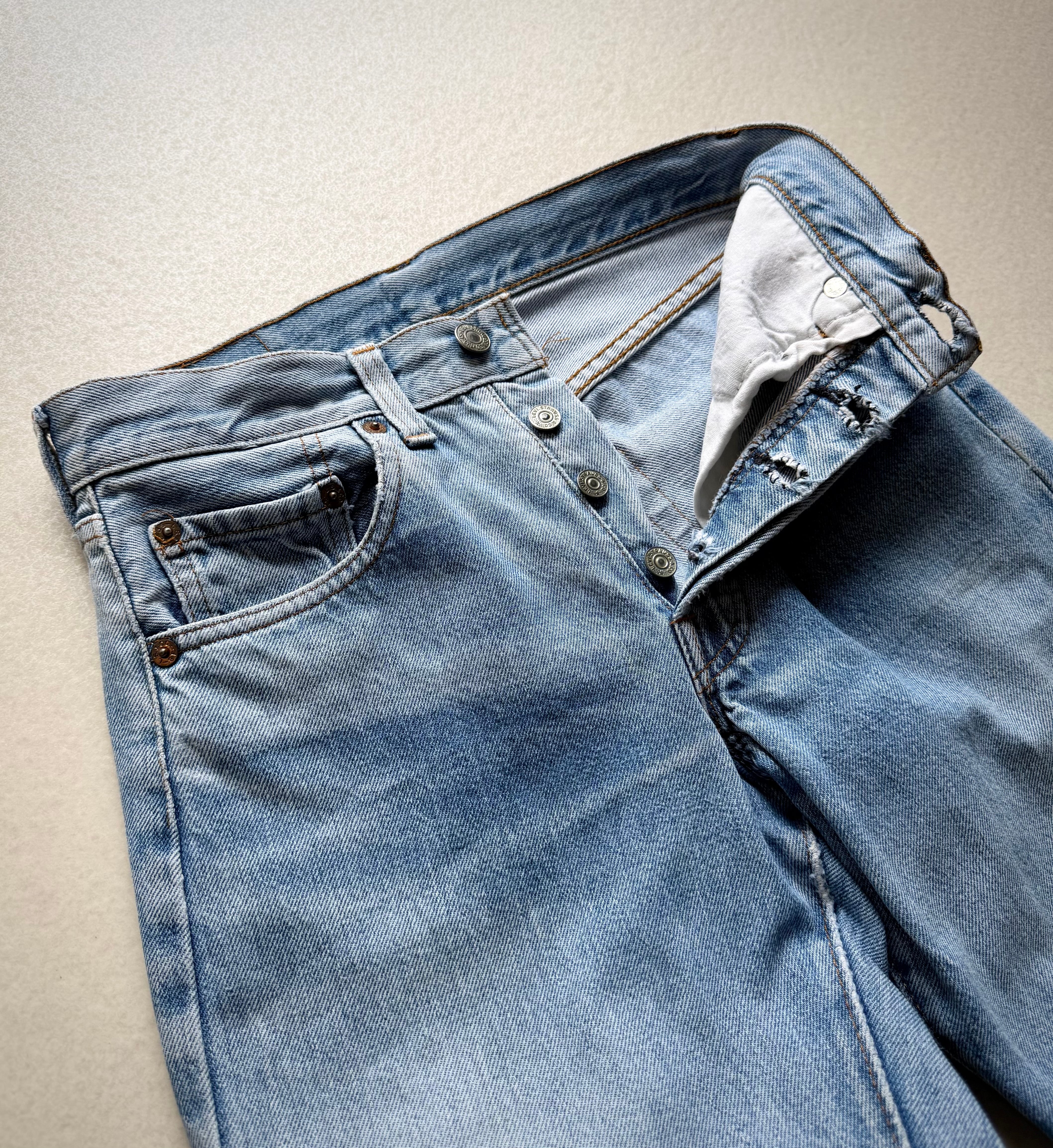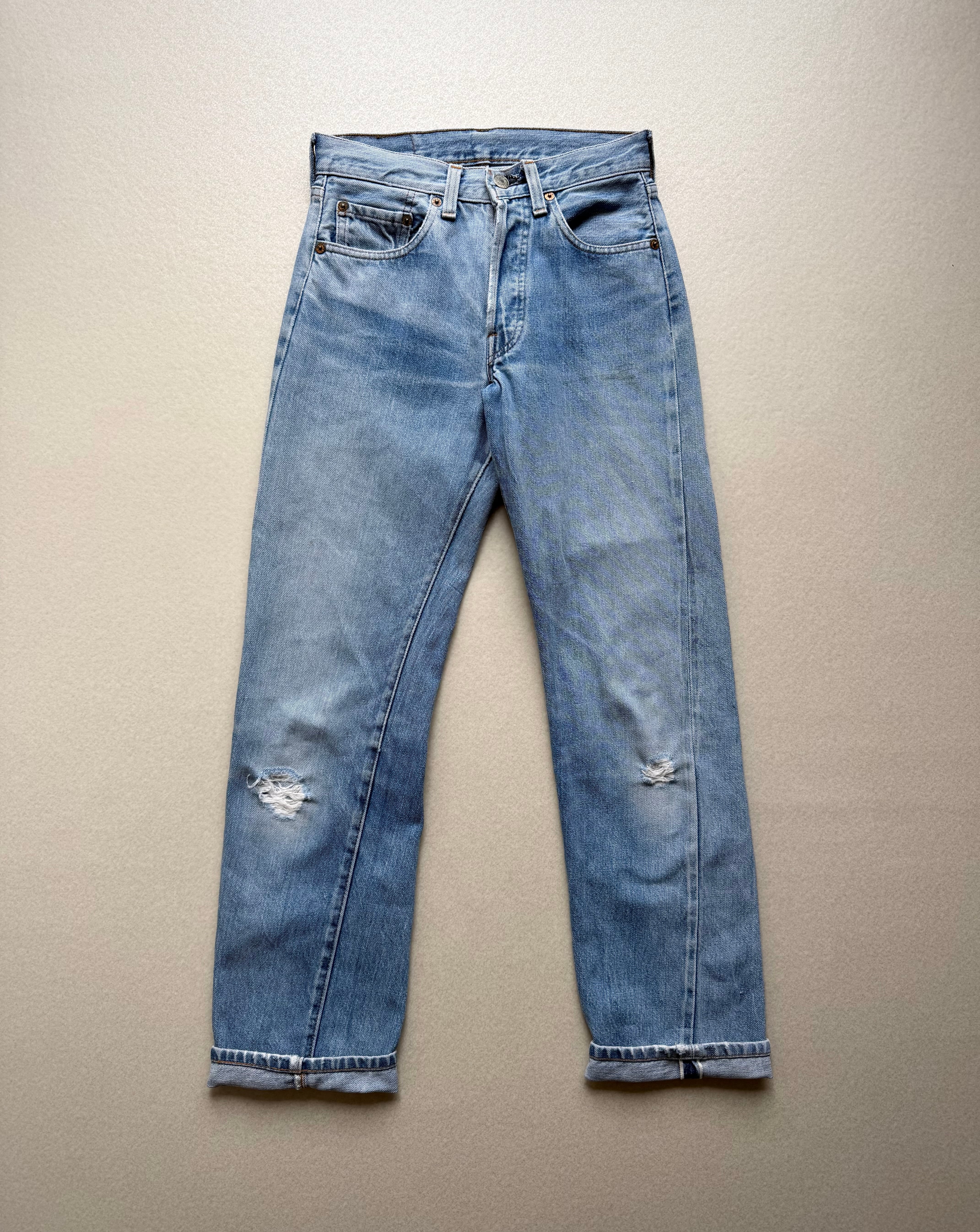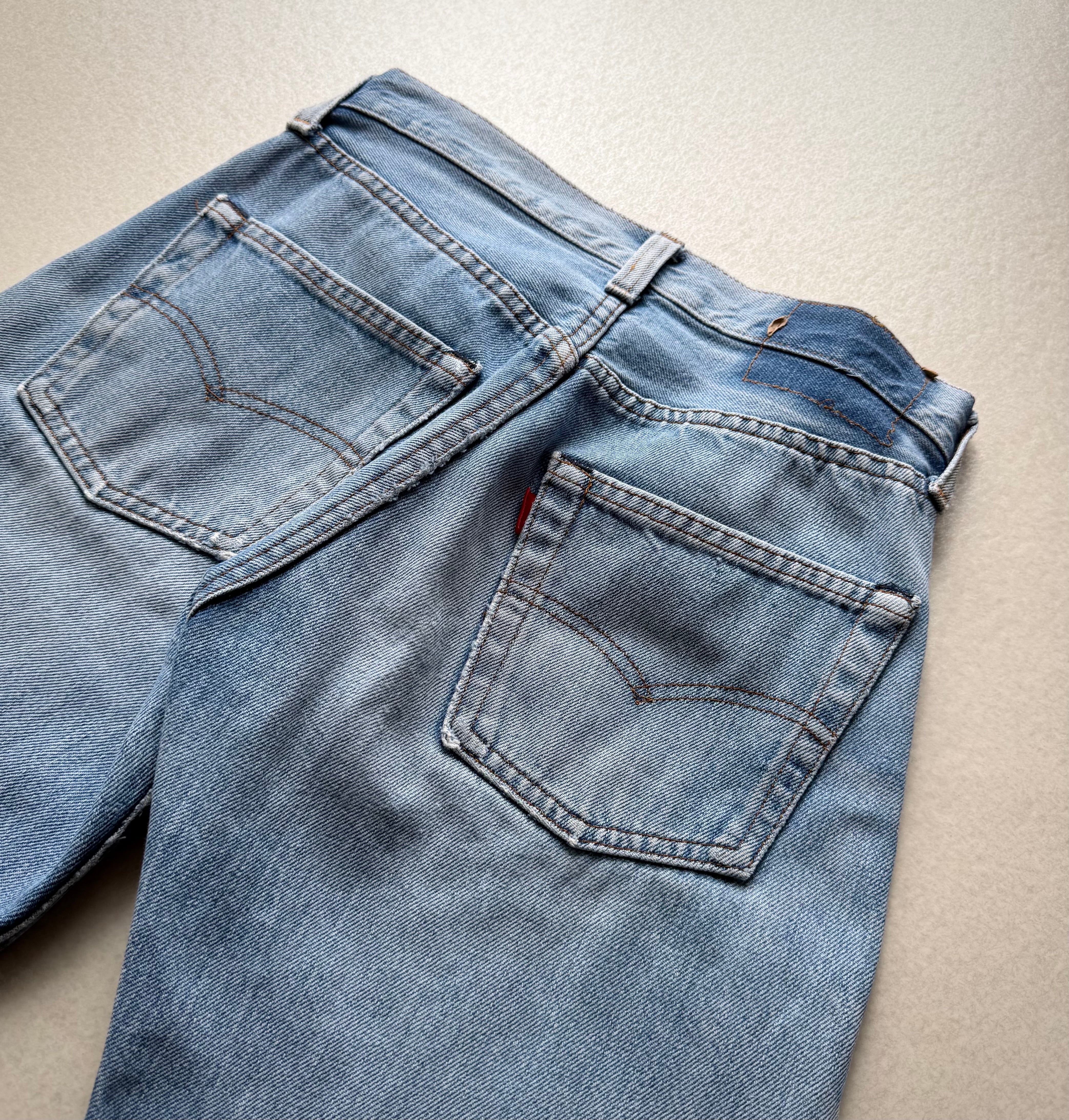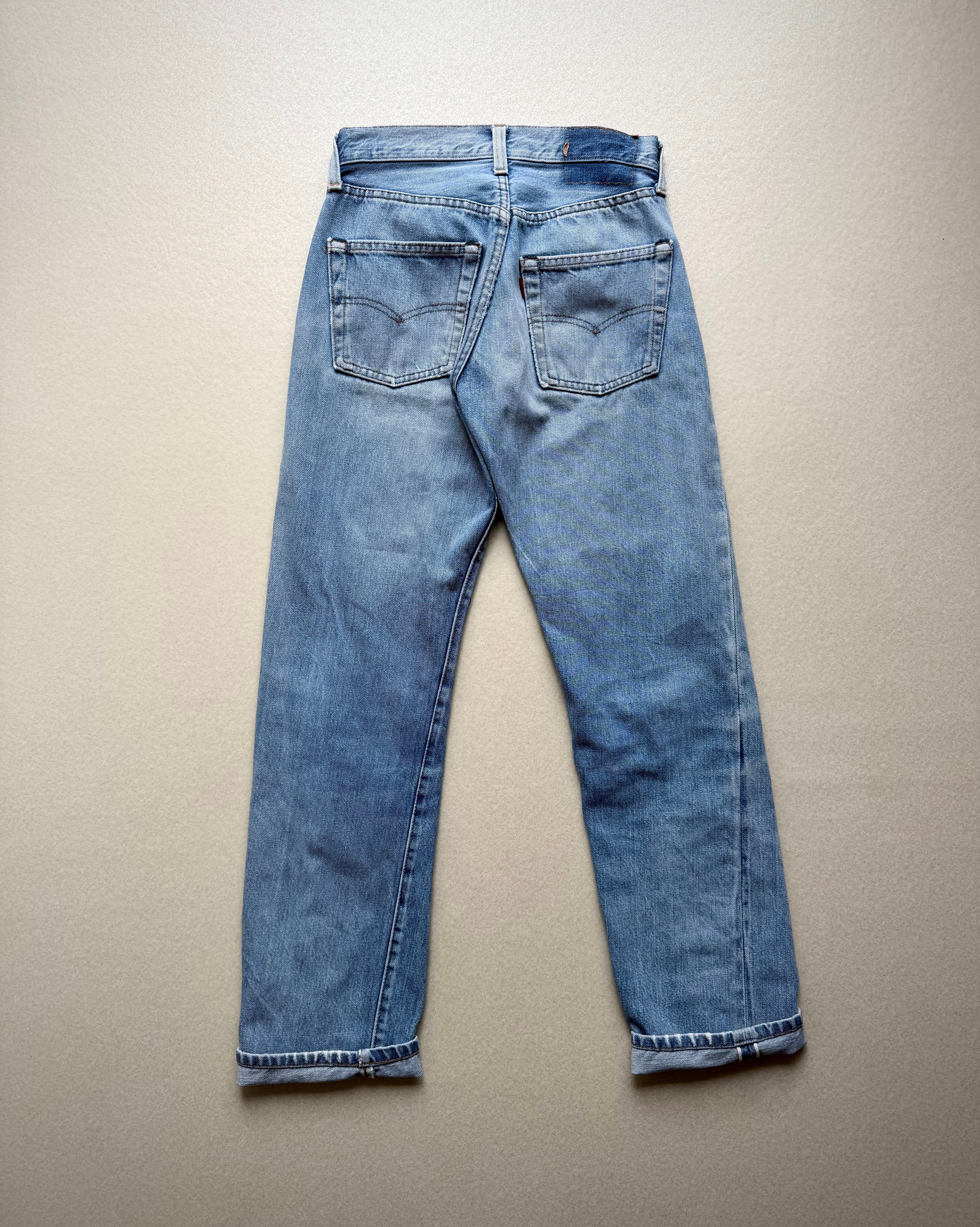 経年により変化したアイスブルーやダメージの雰囲気も良く不思議と現代のスタイルにもマッチする“501”、サイズはやや小さめとなっておりますが気兼ねなく着用できる1本だと思いますので、お好きな方は是非この機会にいかがでしょうか。