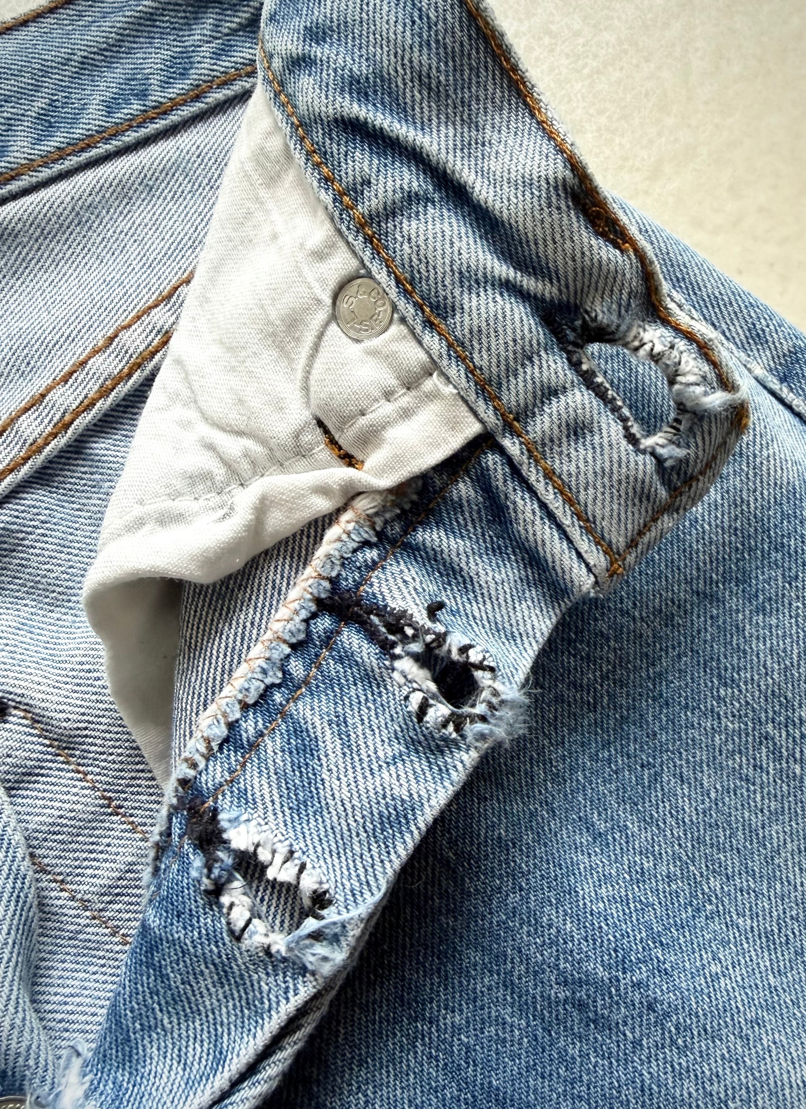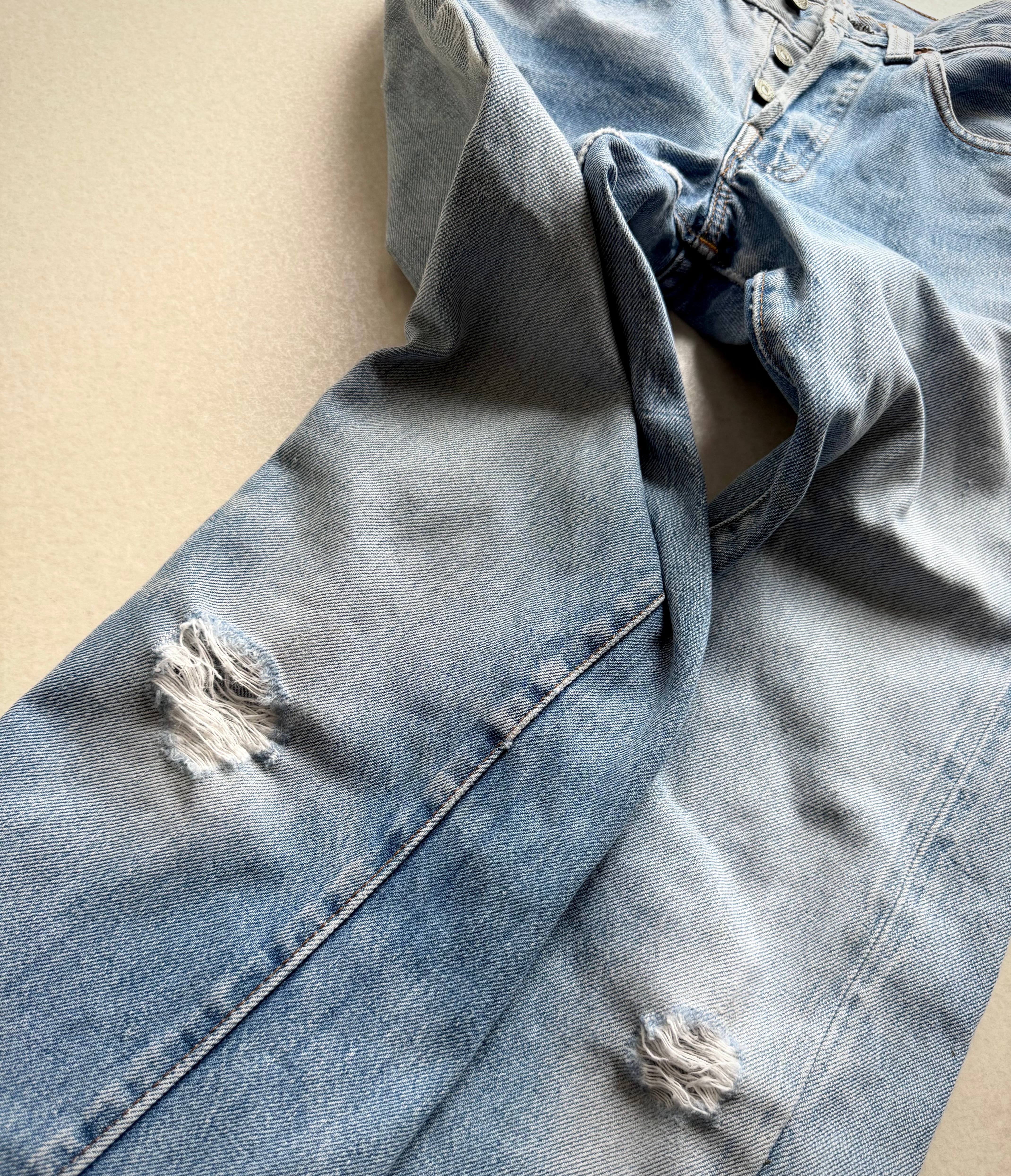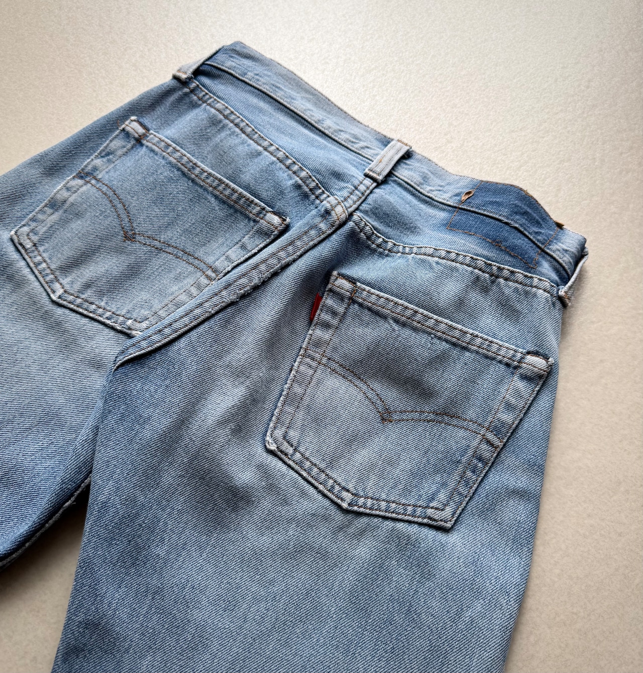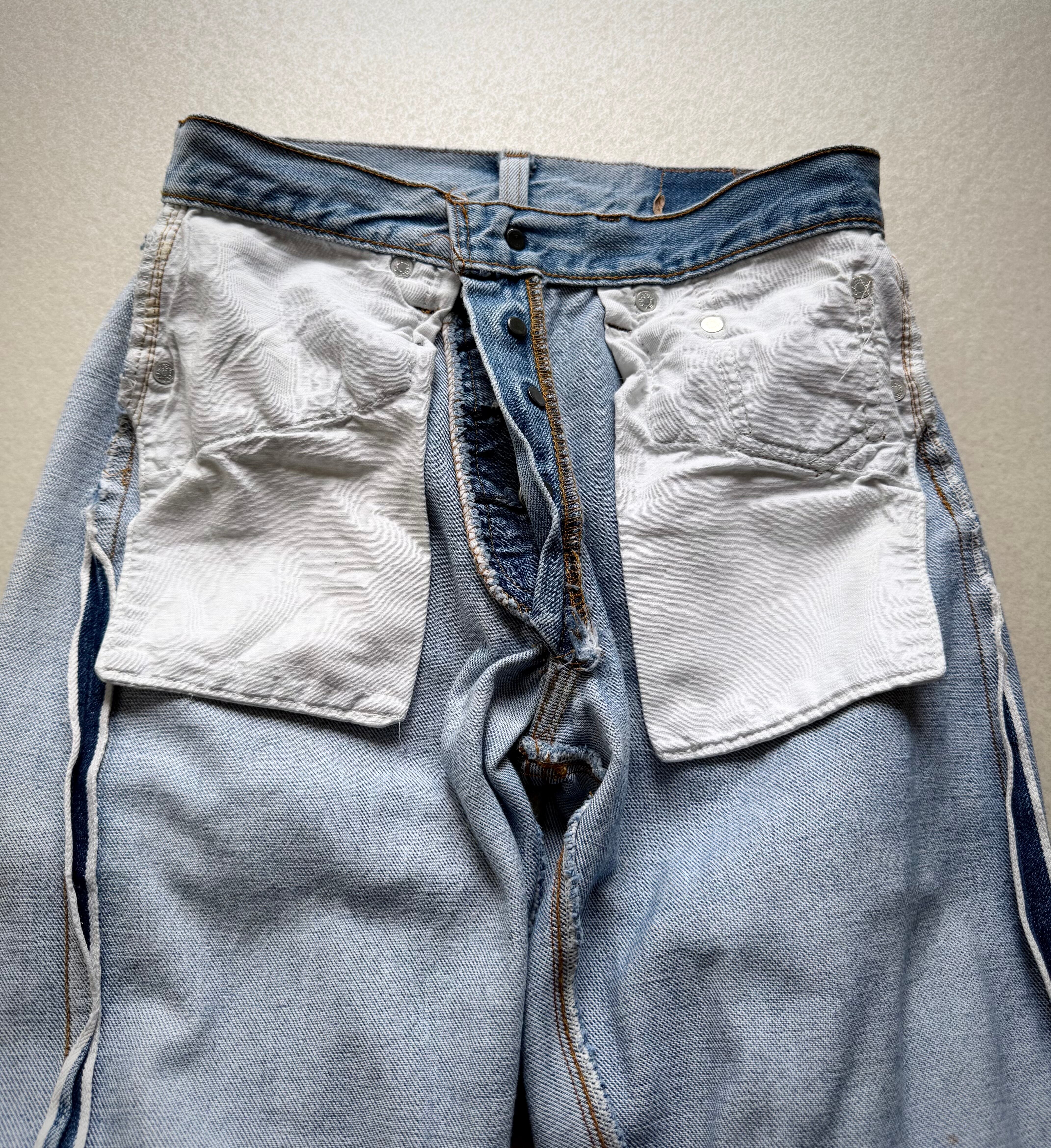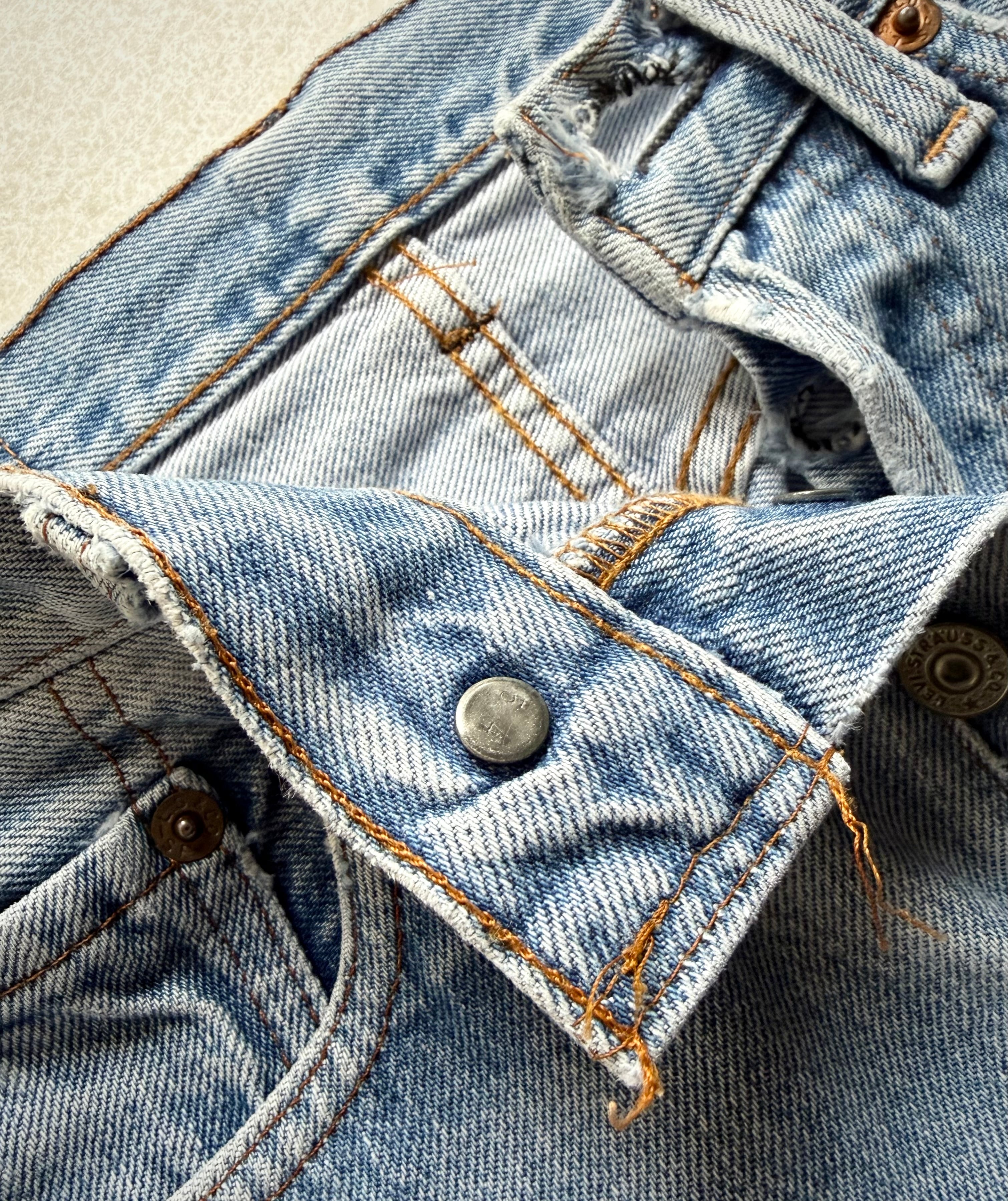 経年により変化したアイスブルーやダメージの雰囲気も良く不思議と現代のスタイルにもマッチする“501”、サイズはやや小さめとなっておりますが気兼ねなく着用できる1本だと思いますので、お好きな方は是非この機会にいかがでしょうか。