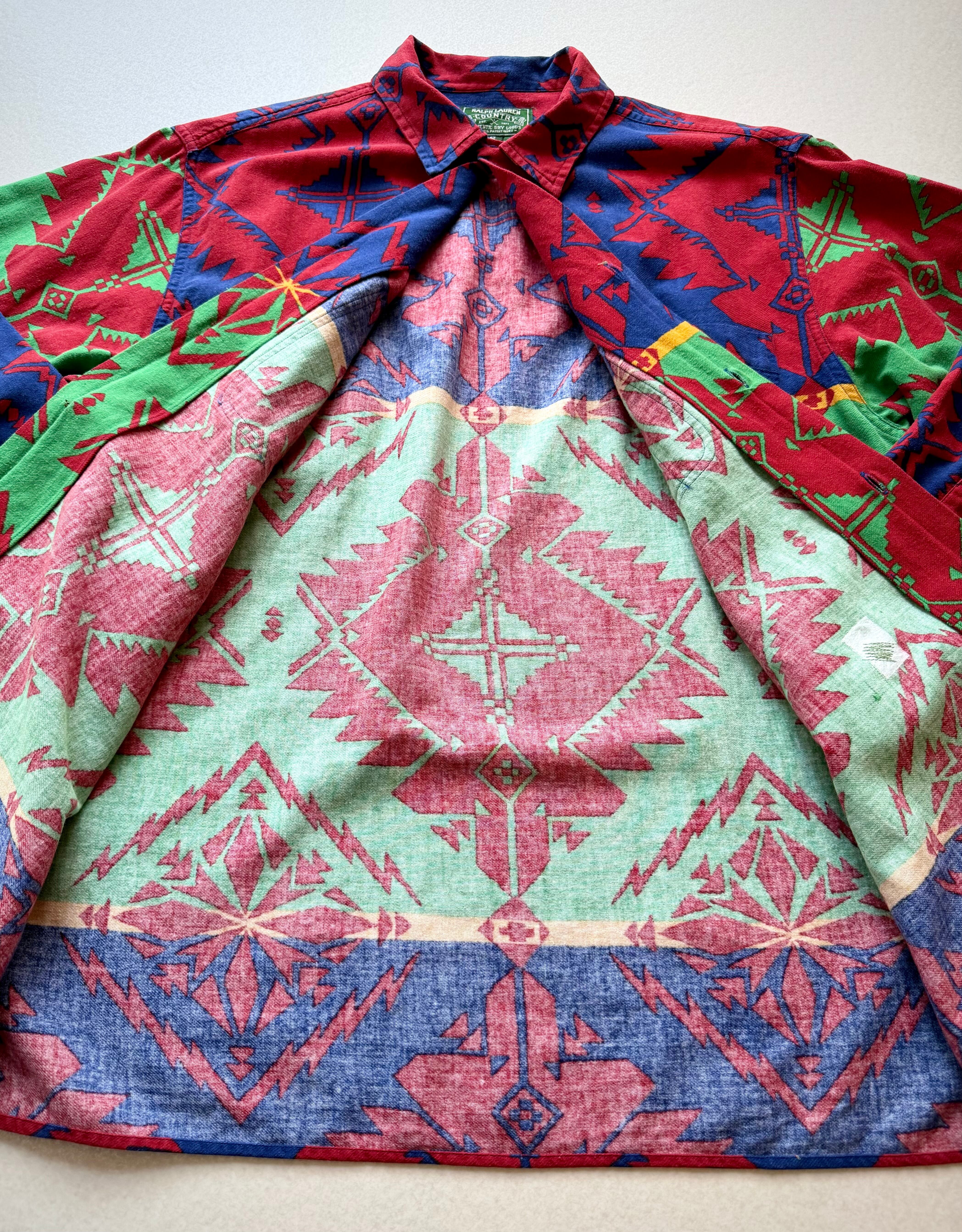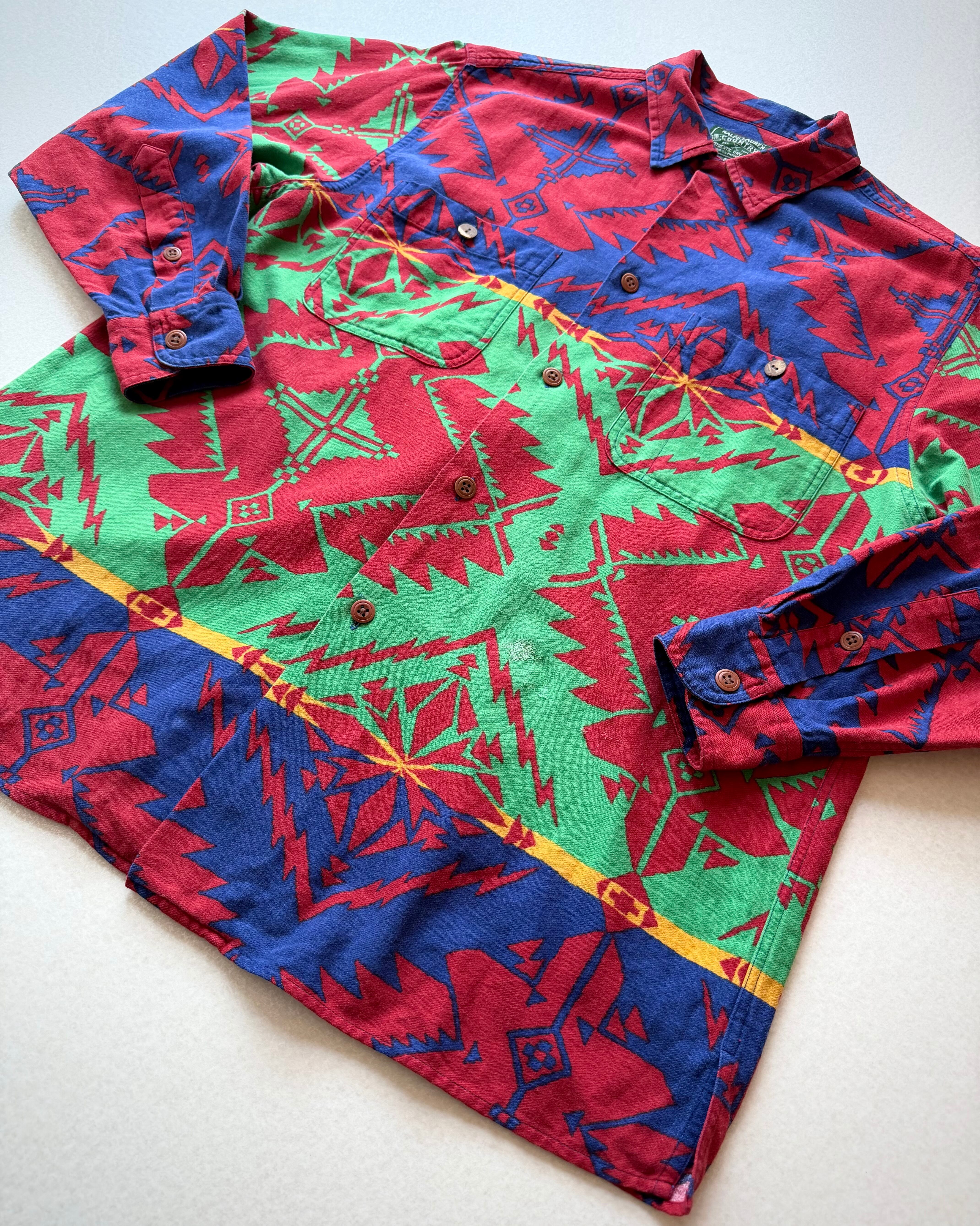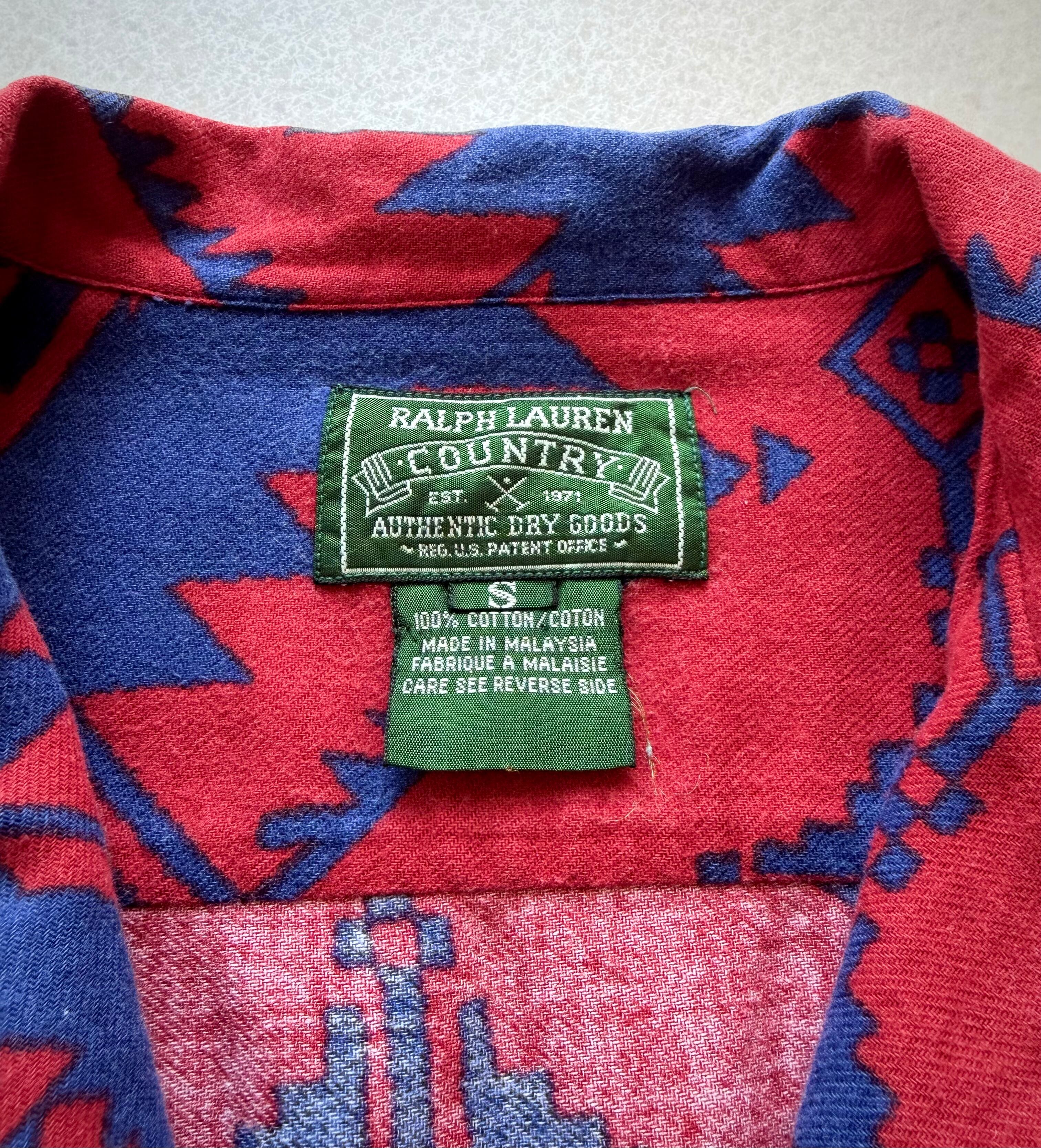 90s〜 “ RALPH LAUREN COUNTRY ” NATIVE PRINT FLANNEL SHIRT OLD VINTAGE 。