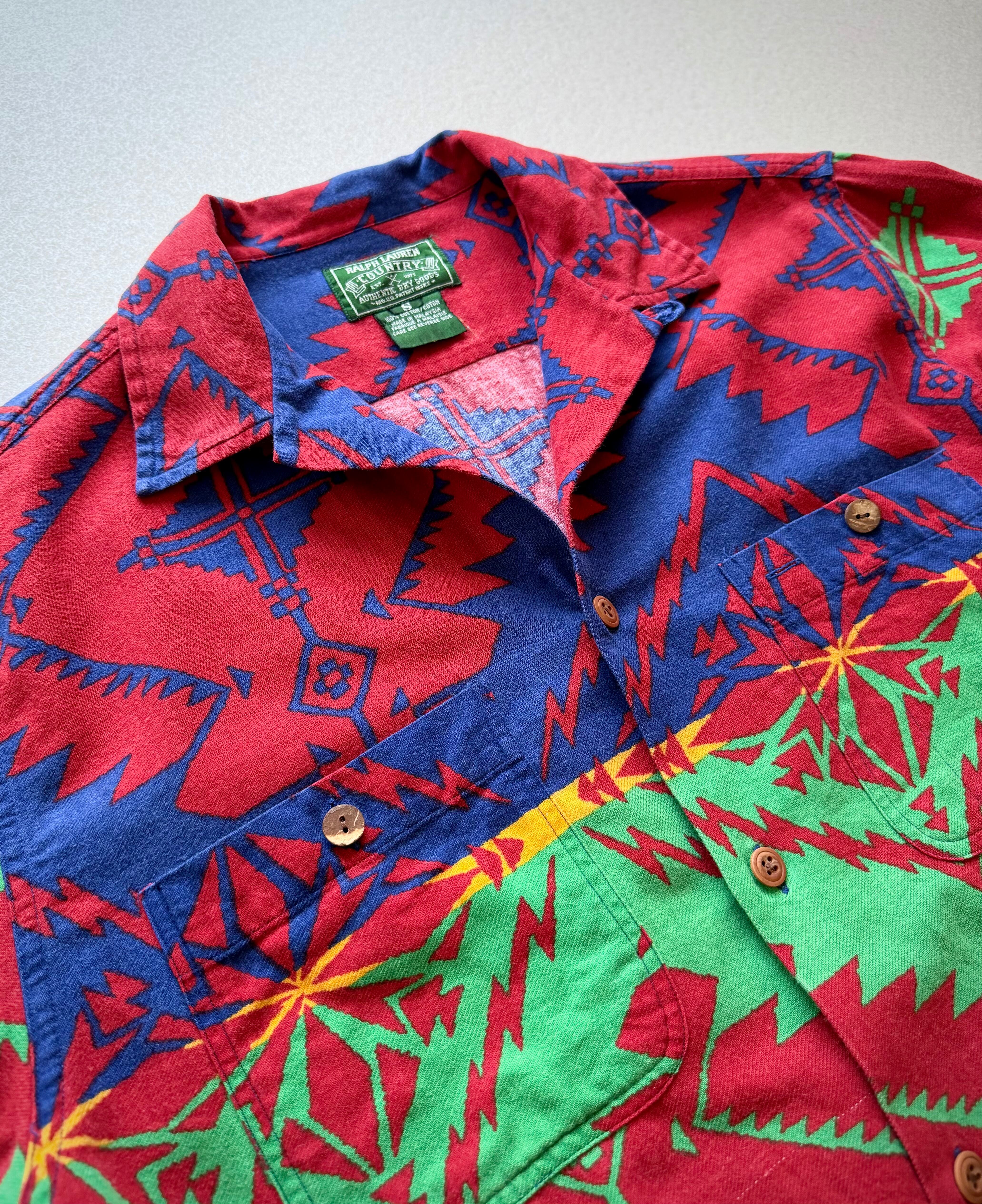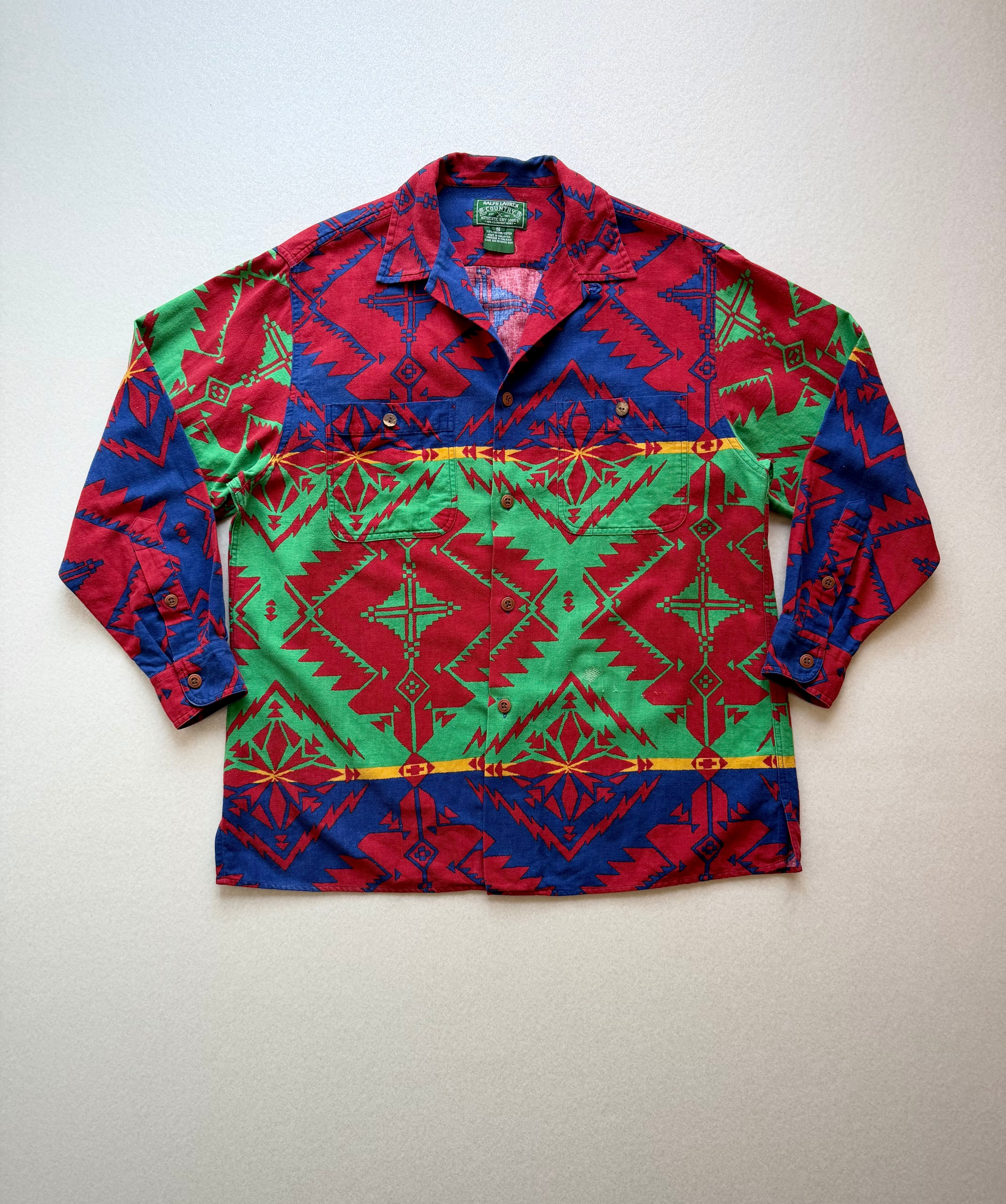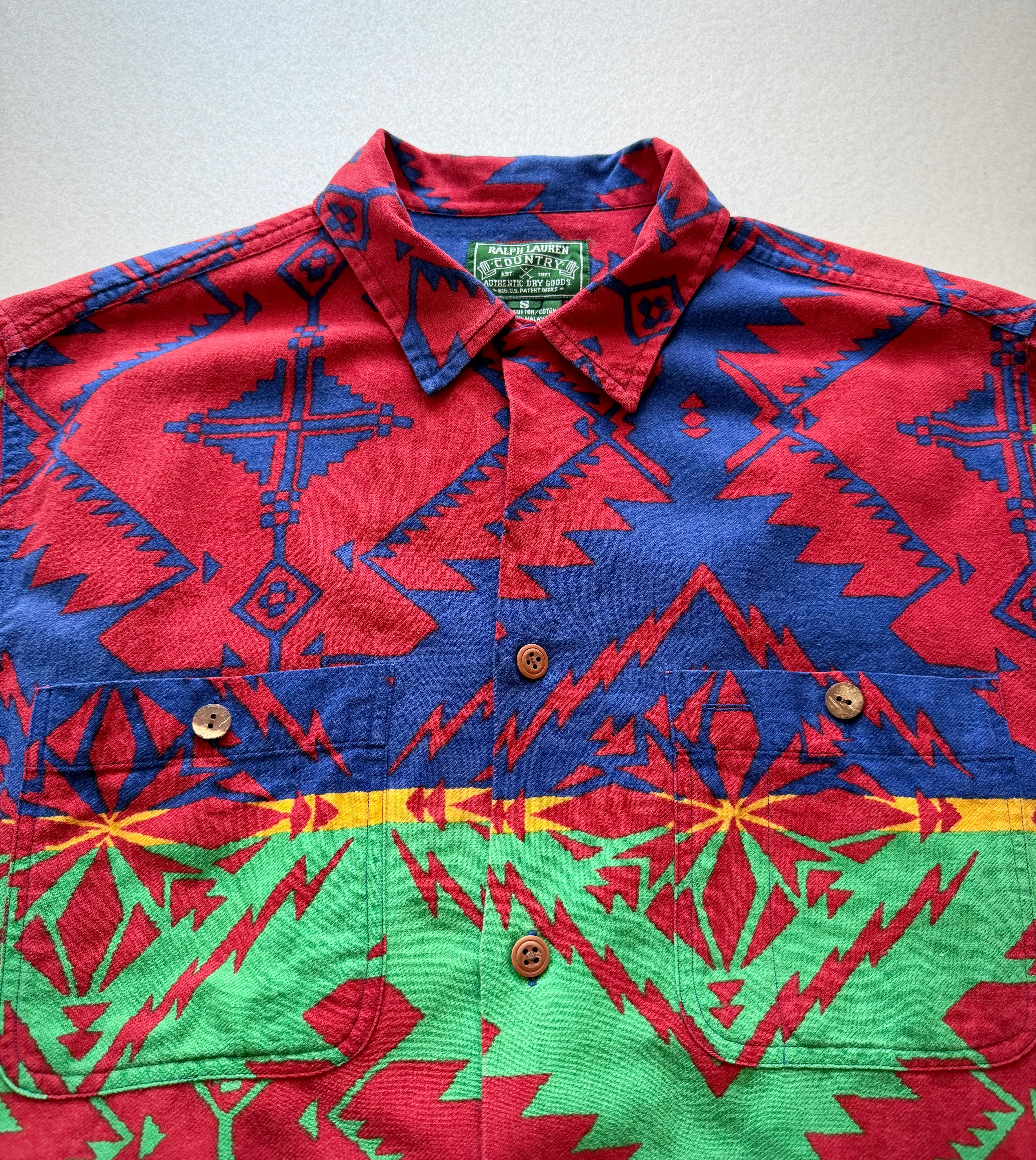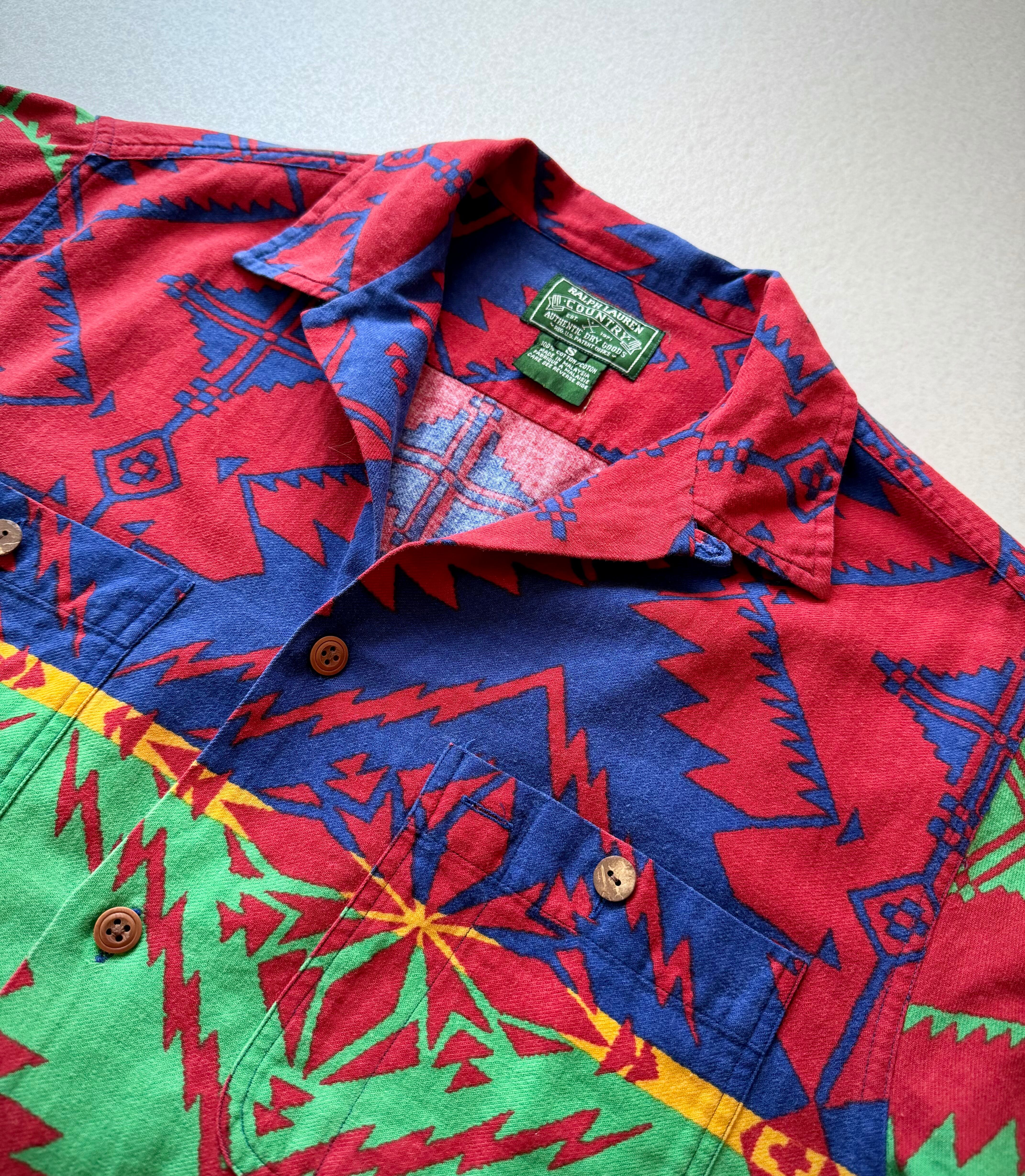 90s〜 “ RALPH LAUREN COUNTRY ” NATIVE PRINT FLANNEL SHIRT OLD VINTAGE 。