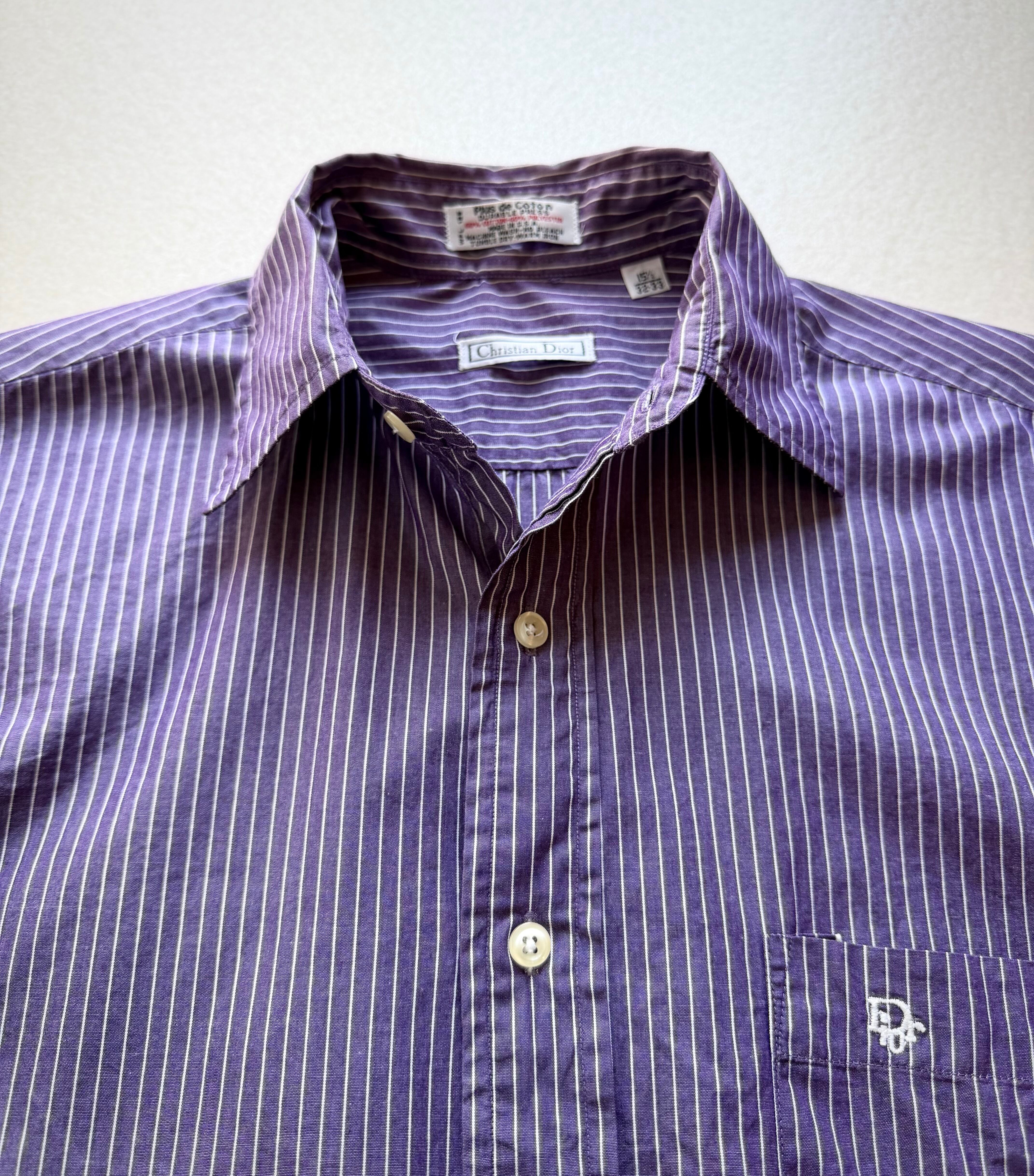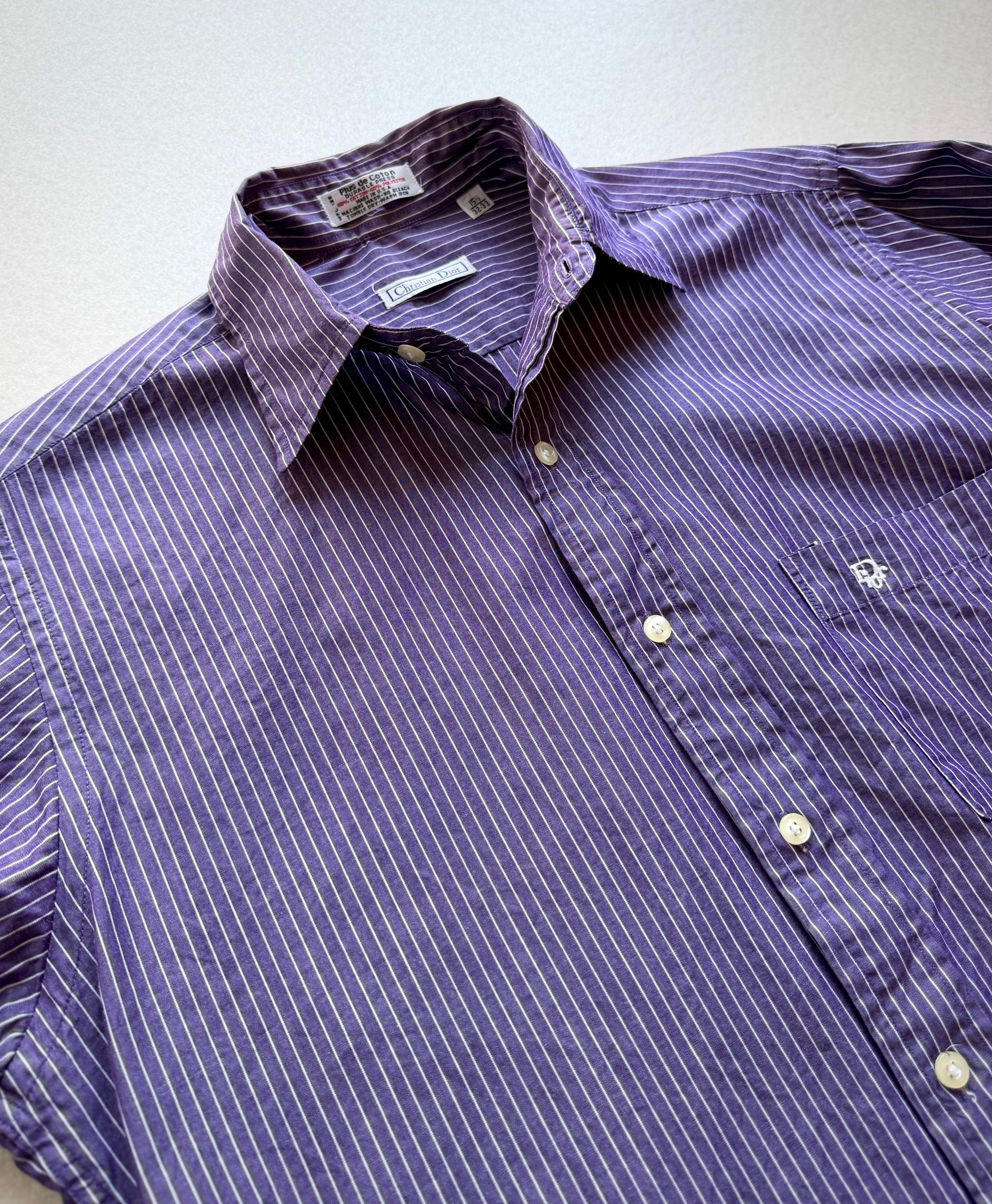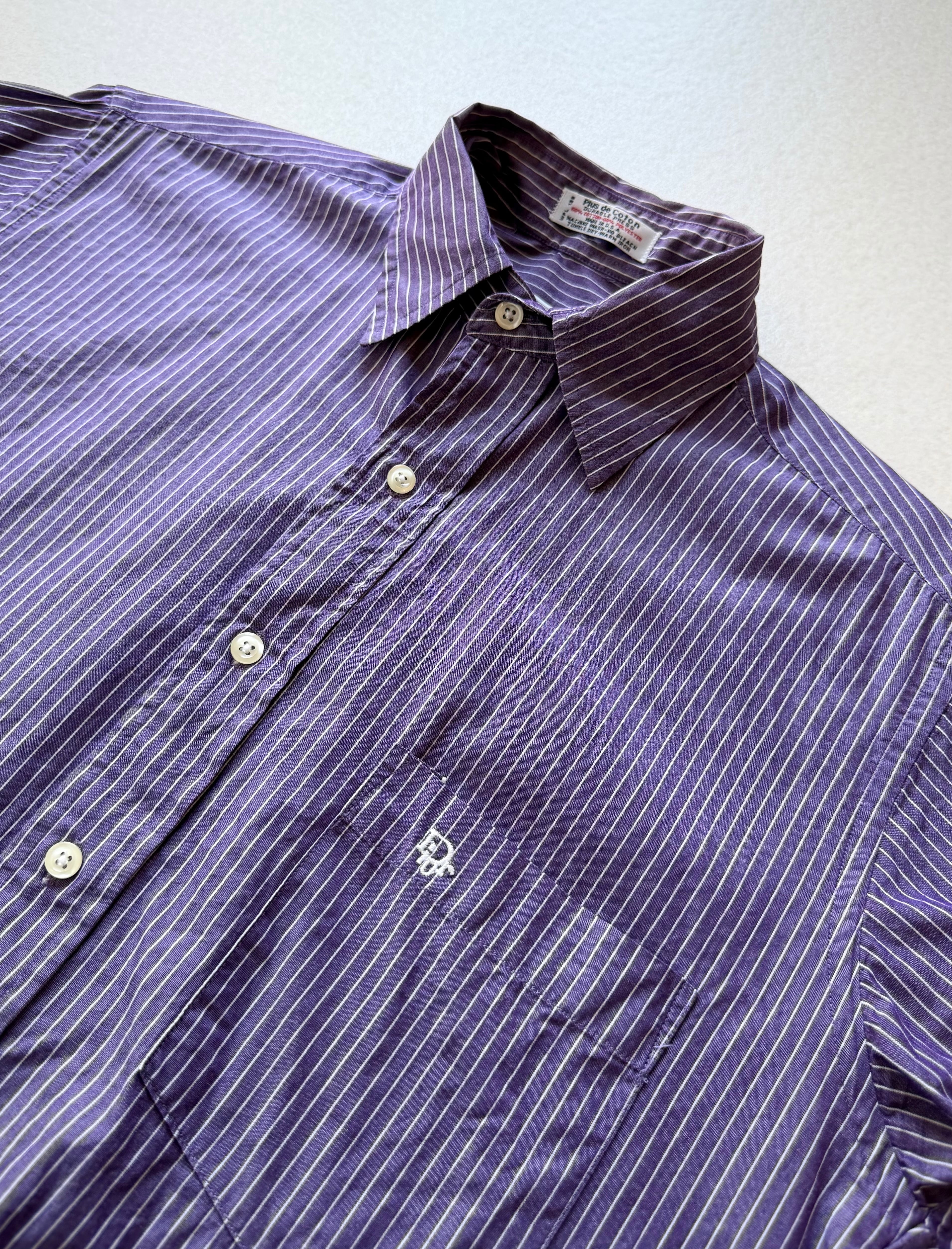 色気のあるパープル×ホワイトのストライプパターンにワンポイントにてオールドDiorロゴがデザインされた品のあるドレスシャツ。