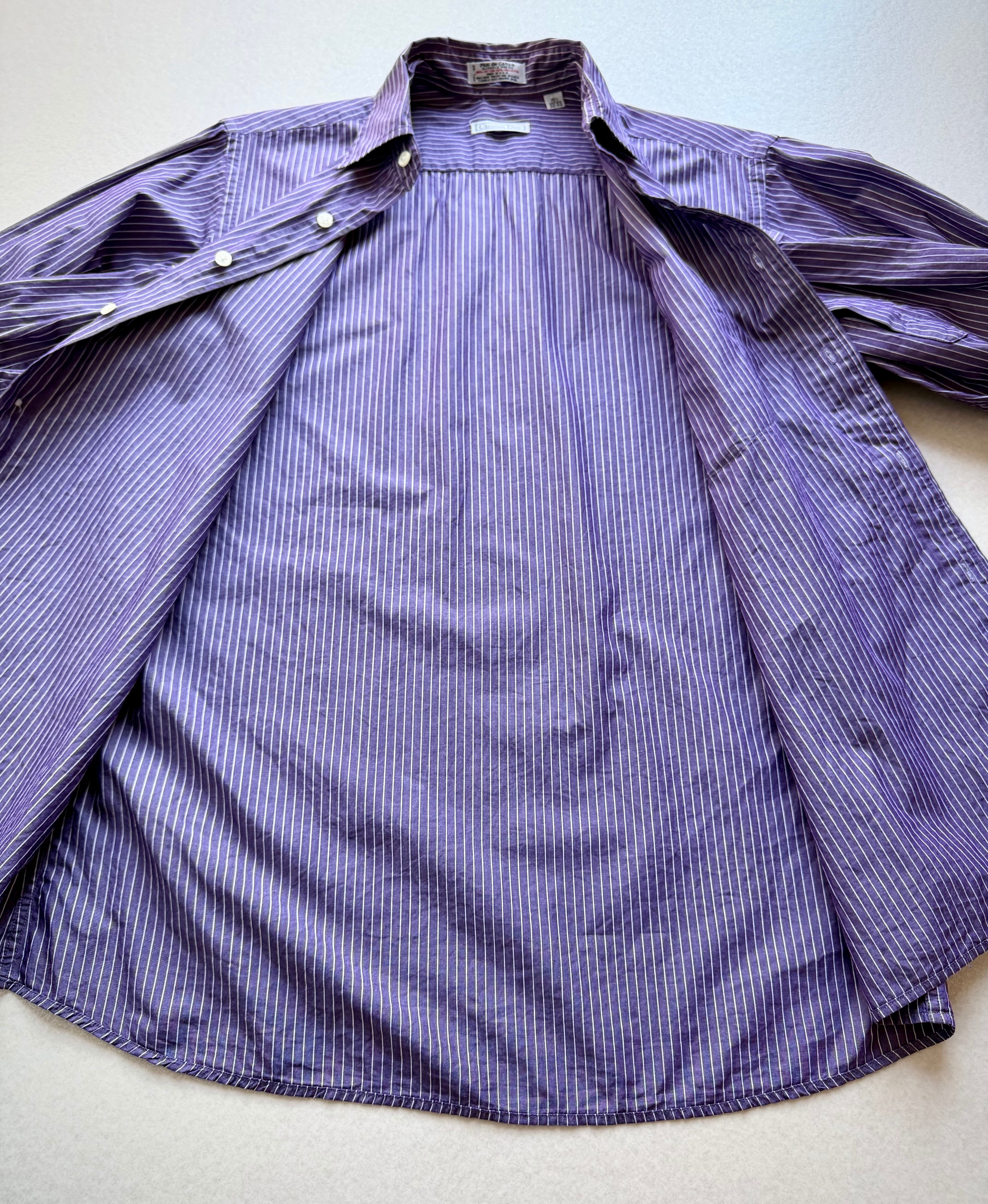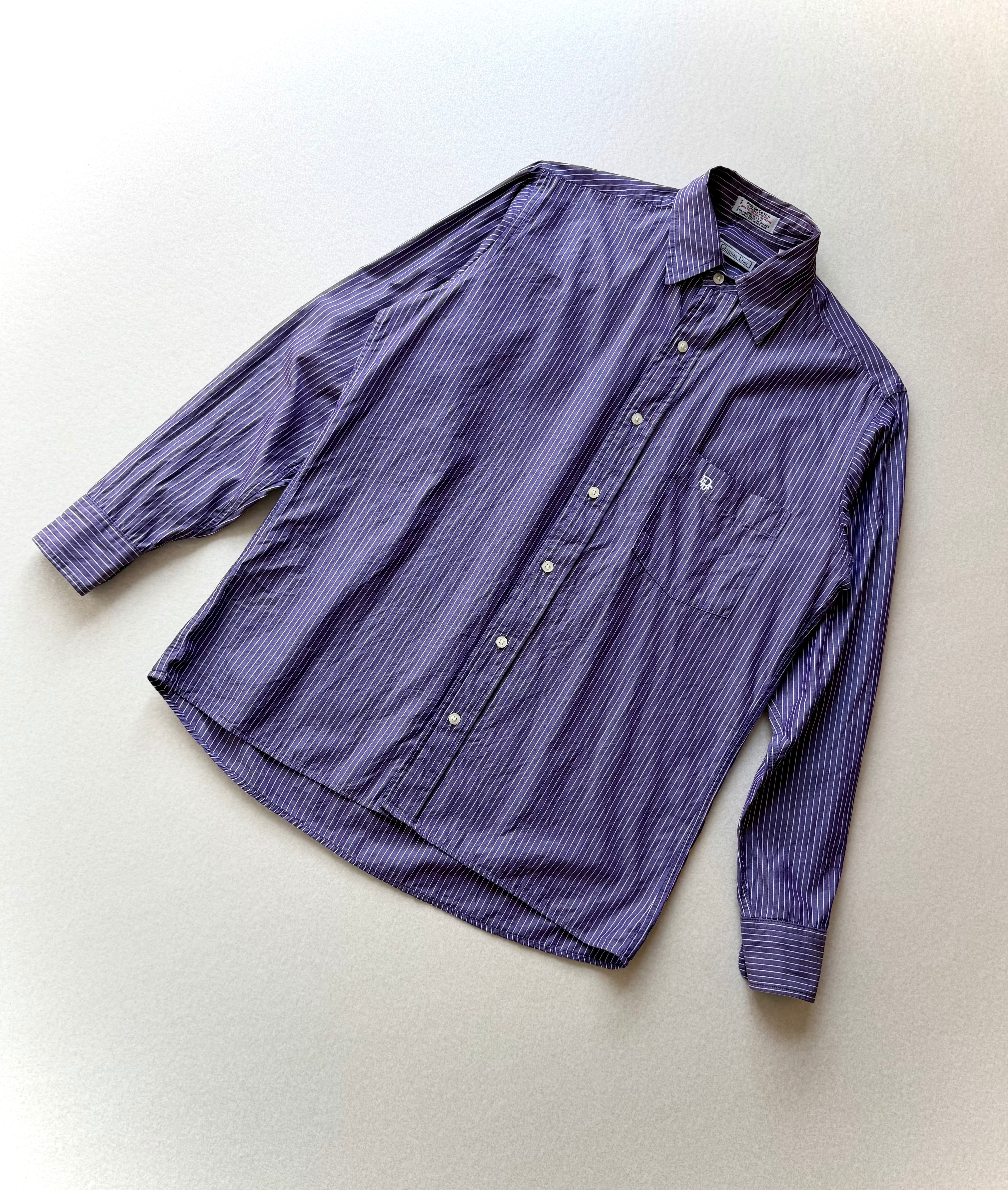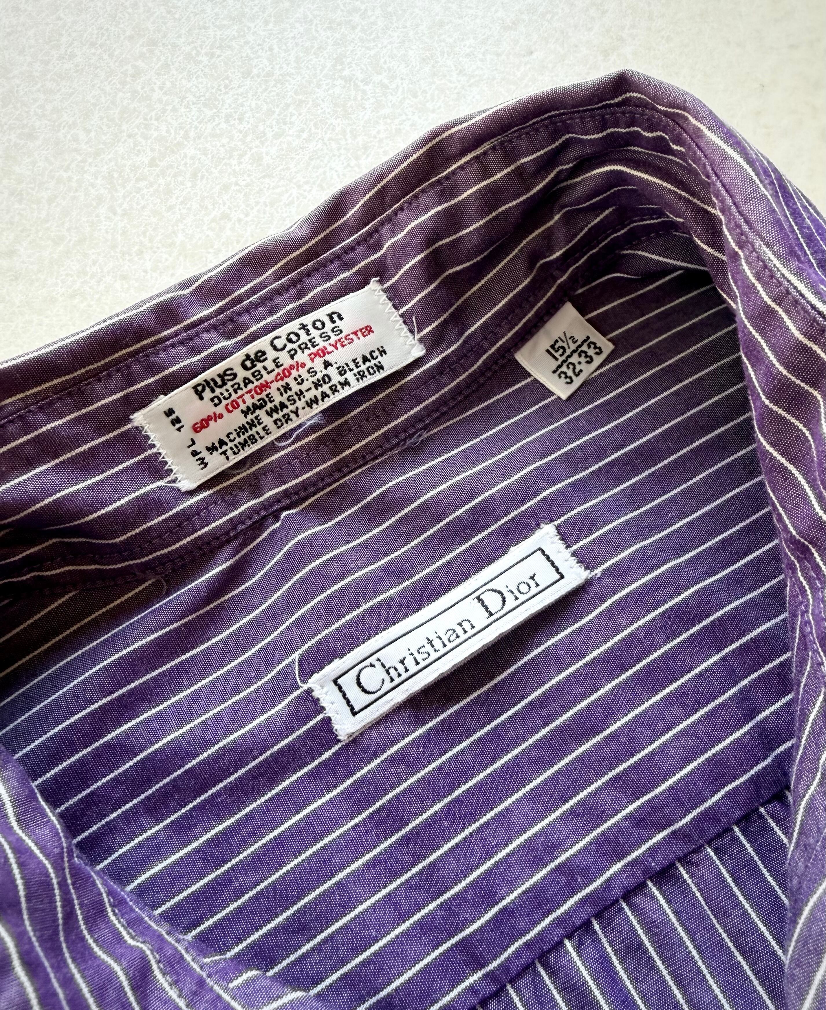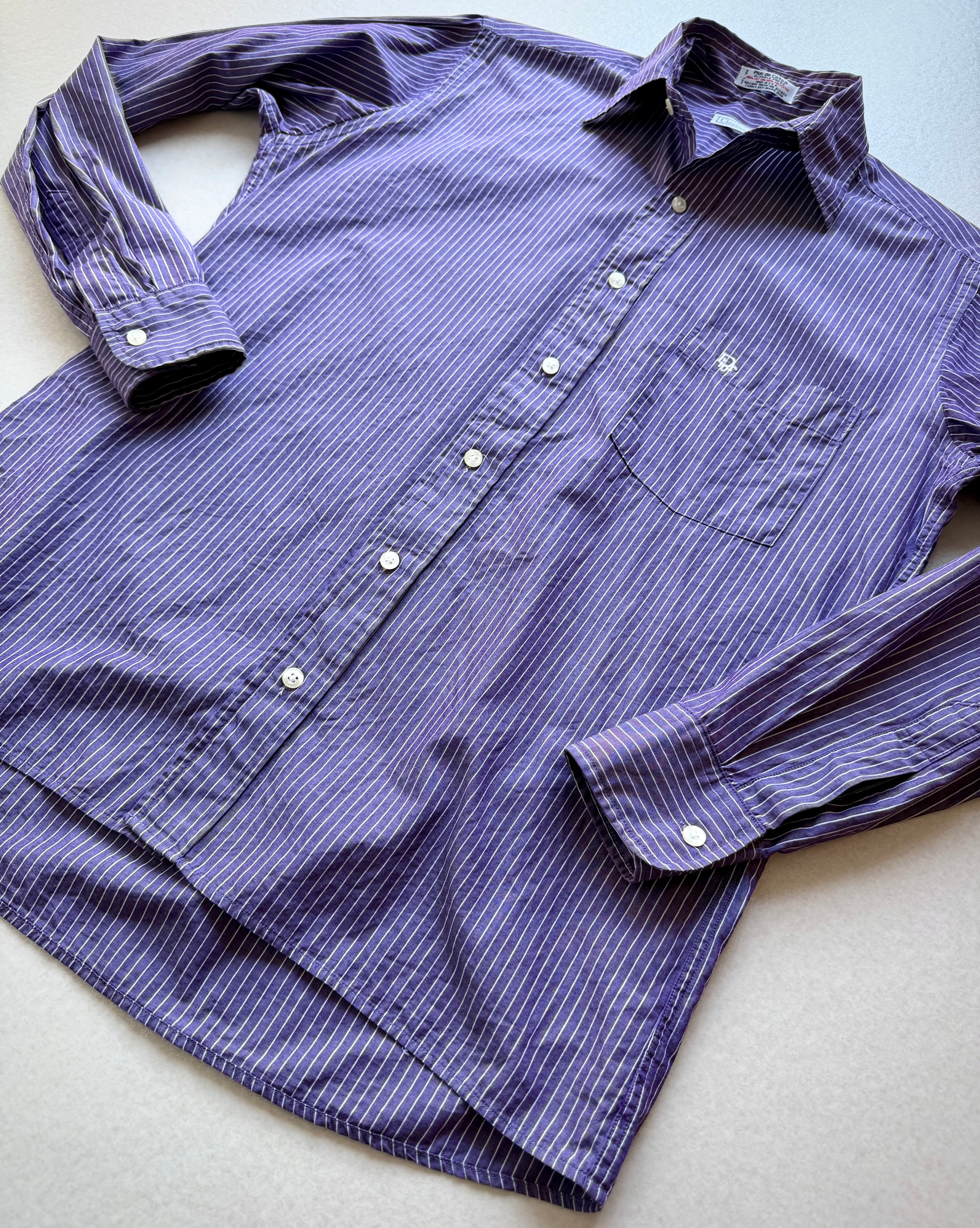 色気のあるパープル×ホワイトのストライプパターンにワンポイントにてオールドDiorロゴがデザインされた品のあるドレスシャツ。