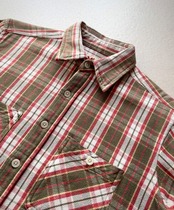 “CAMCO”といえばの代表的な厚手のヘビーフランネルシャツ、ブラウン系の落ち着いたカラーリングに4ホールボタンやパッチポケット,ダブルステッチとお馴染みの定番デザイン。