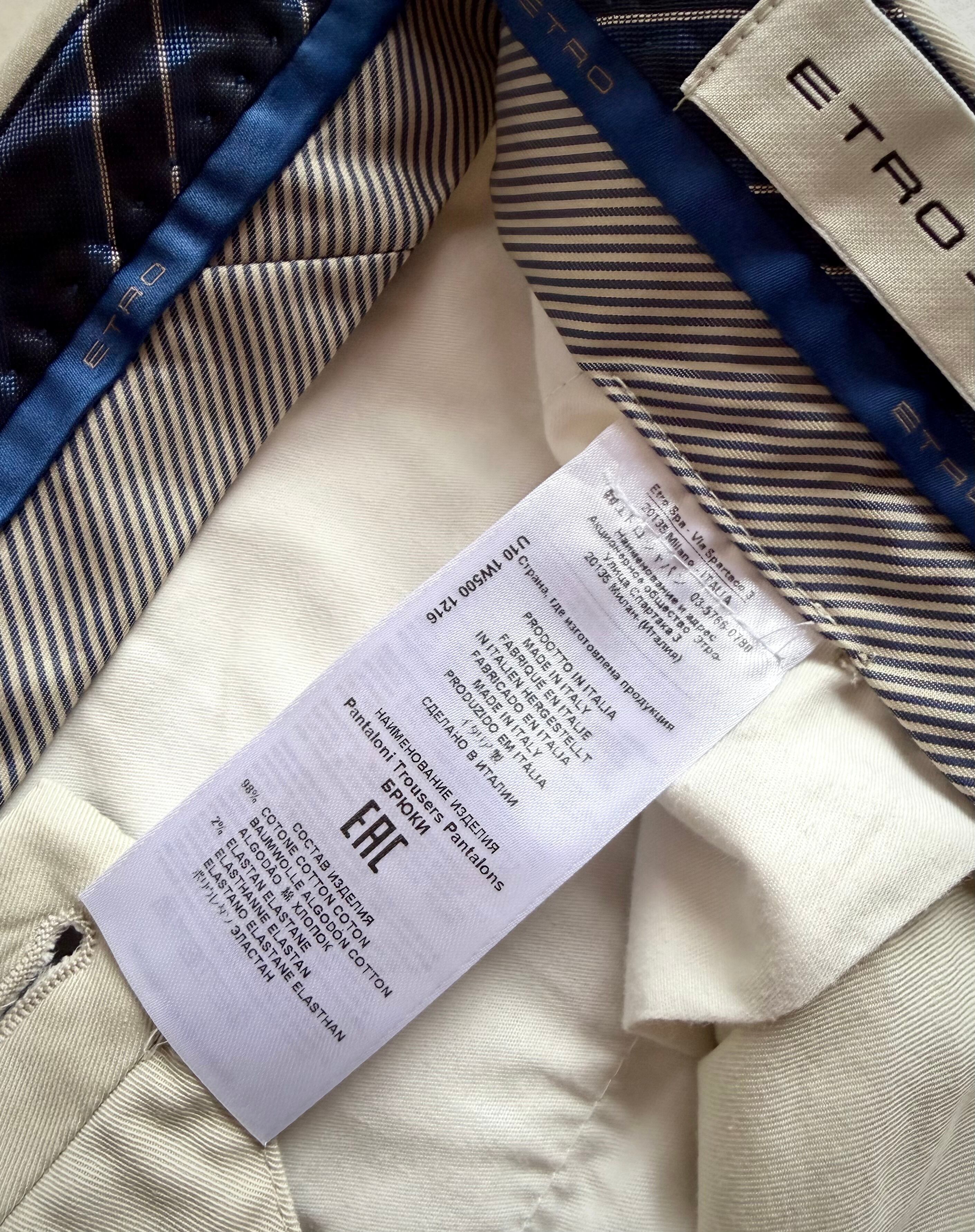 MADE IN ITALY “ ETRO ” SLIM FIT COTTON CHINO TROUSERS 。