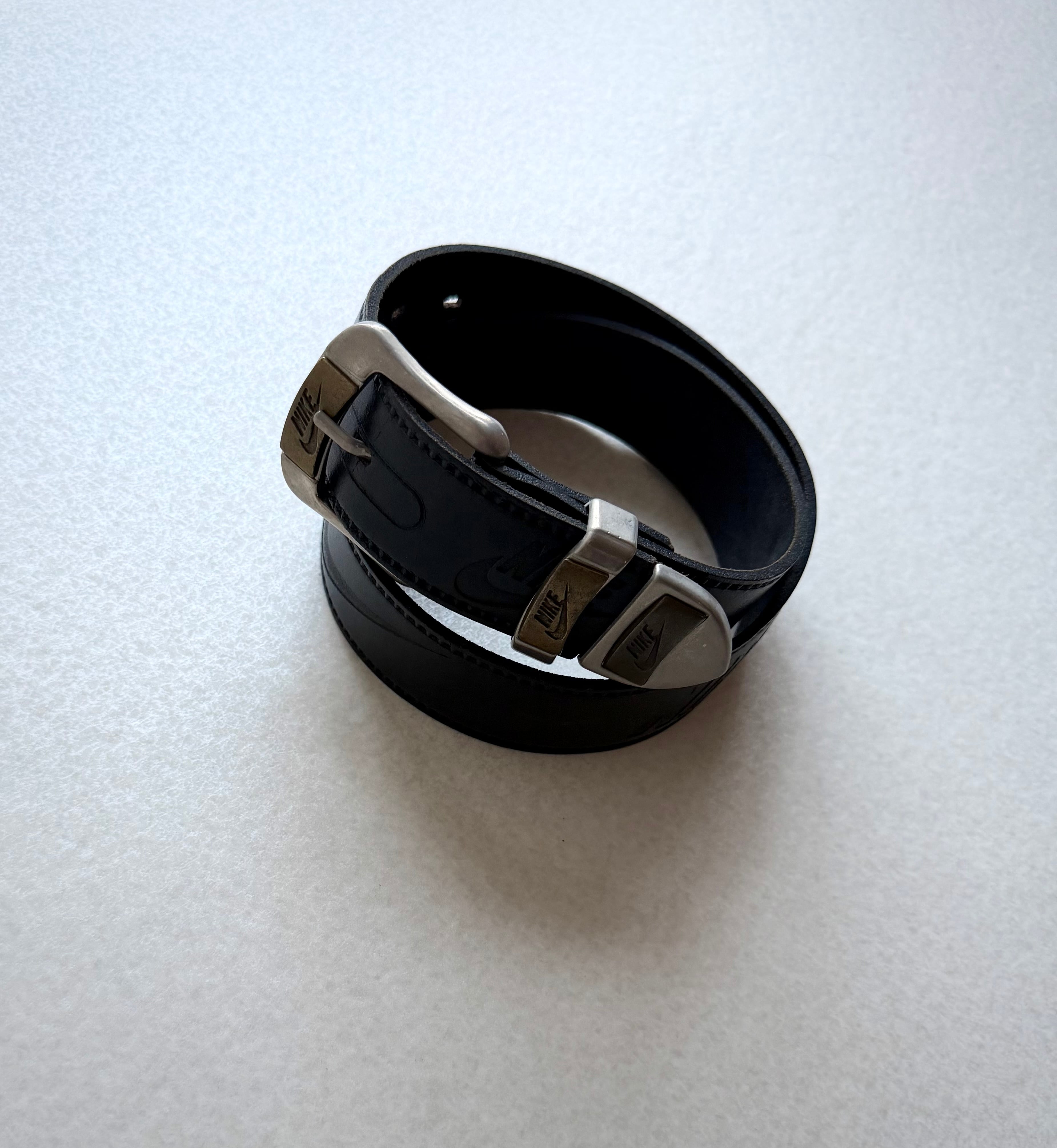 90s〜 “ NIKE ” EMBOSSED LOGO LEATHER BELT BLACK OLD VINTAGE ナイキ エンボスロゴ 本革 レザーベルト ブラック オールド ビンテージ