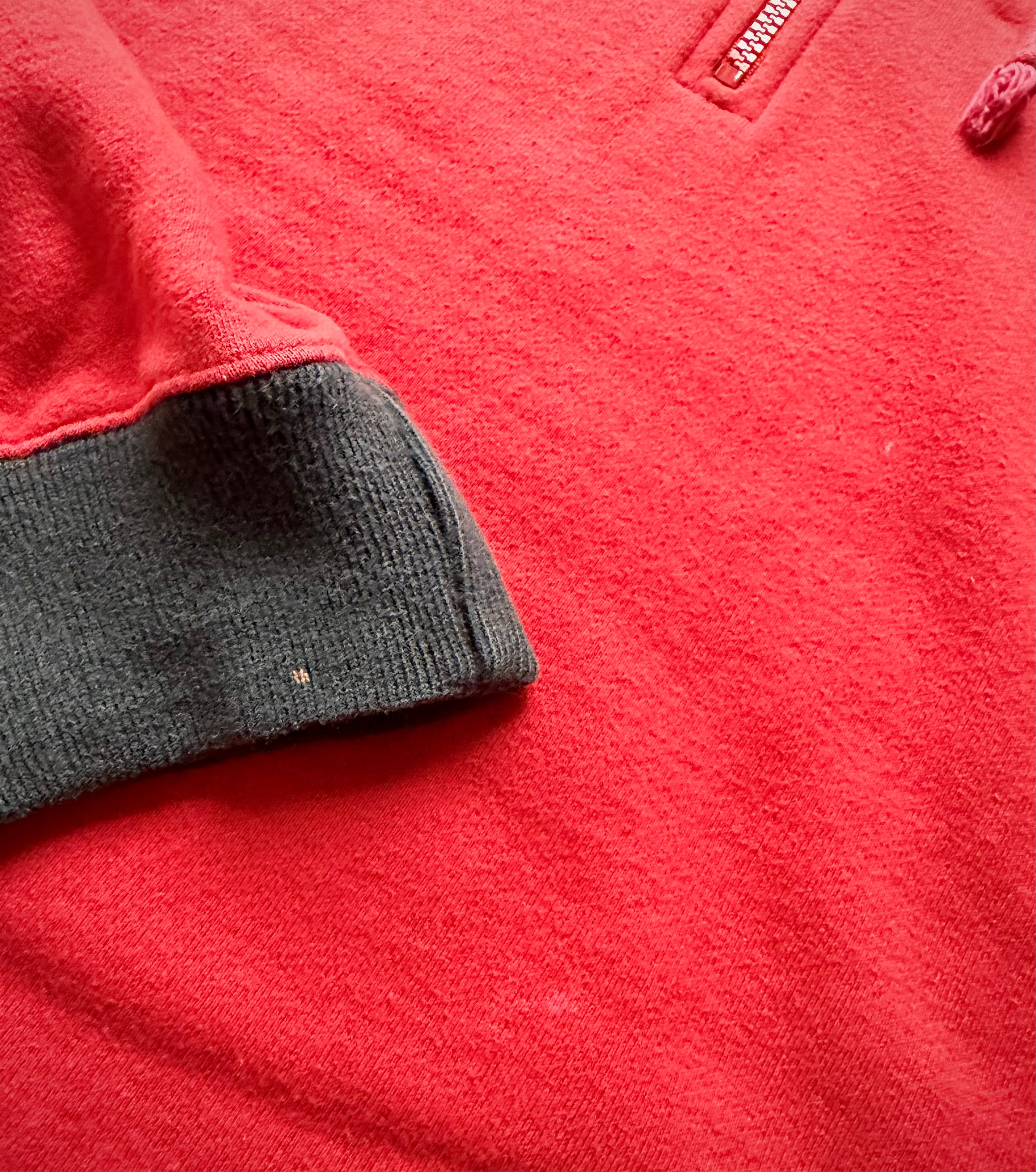 USED.ビンテージならではの多少使用感,所々に毛羽,色褪せ,フロント中央.右袖リブに僅かな変色が見受けられますが、その他,着用に支障のある目立つような汚れや大きなダメージは見受けられません。
