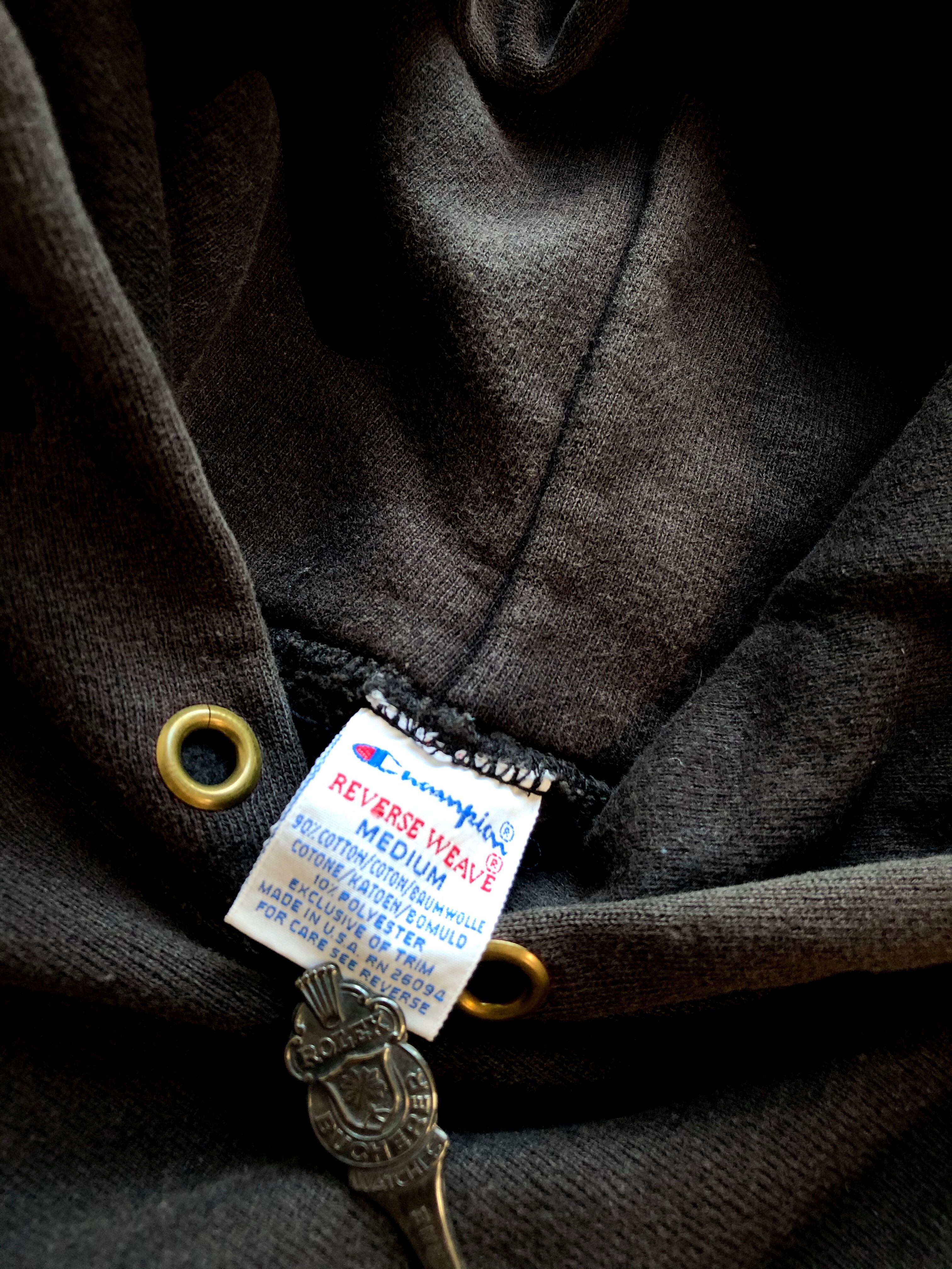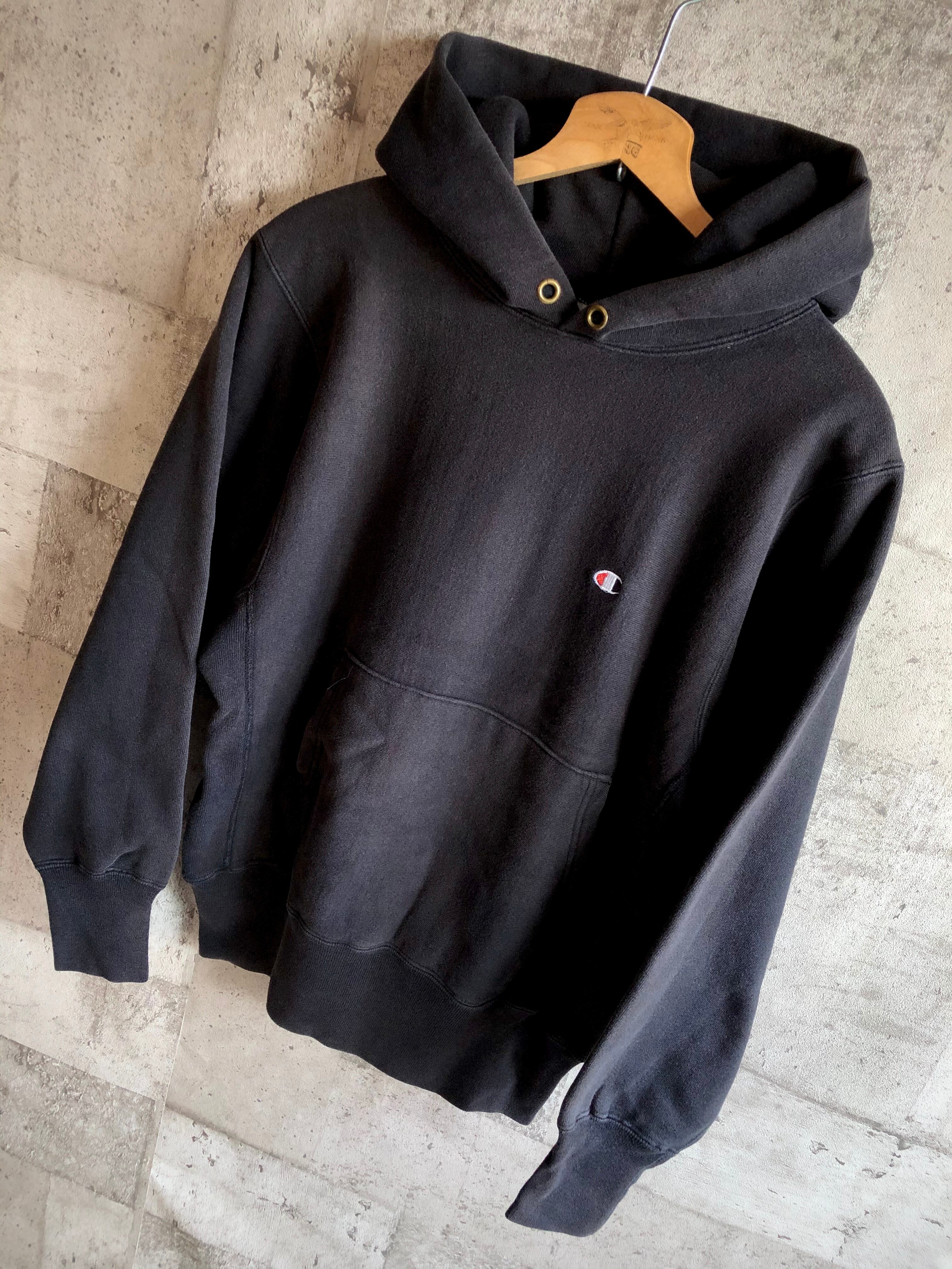 90s~ USA製 VINTAGE CHAMPION REVERSE WEAVE P/O SWEAT PARKA BLACK COLOR SOLID。