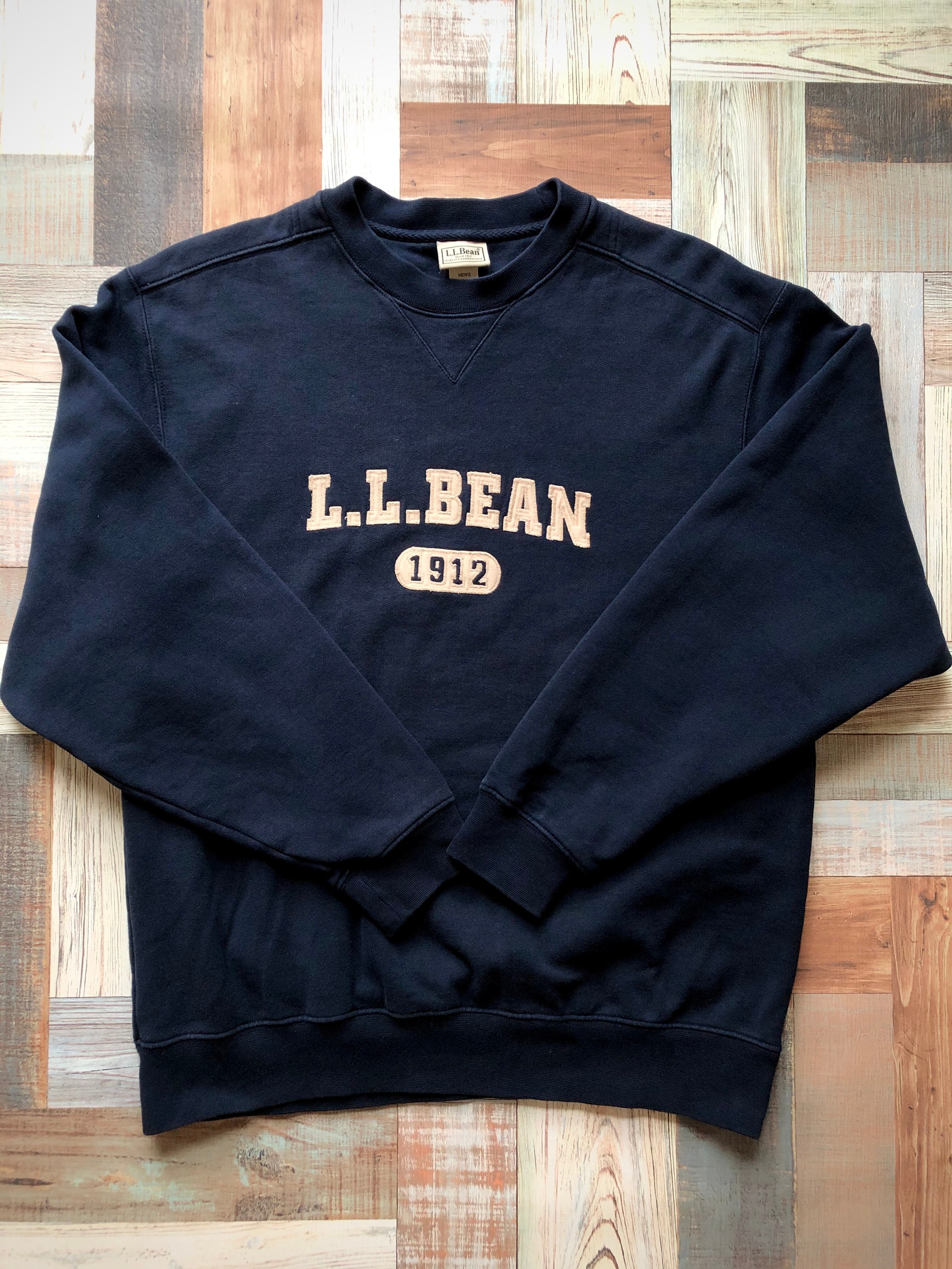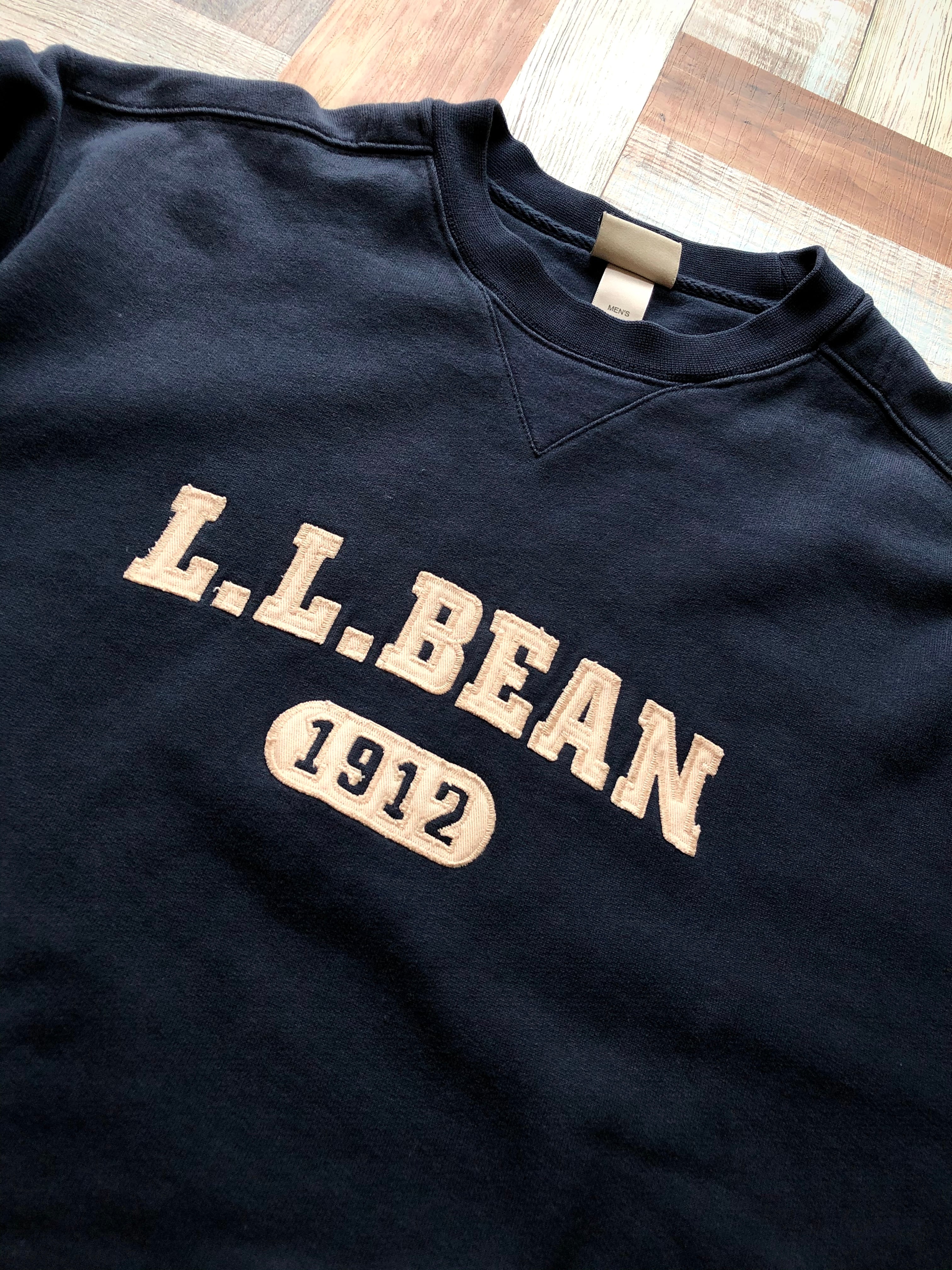 名品 PERU製 LL.BEAN LOGO DESIGN SWEAT SHIRT ネイビーカラー M オールド レギュラー