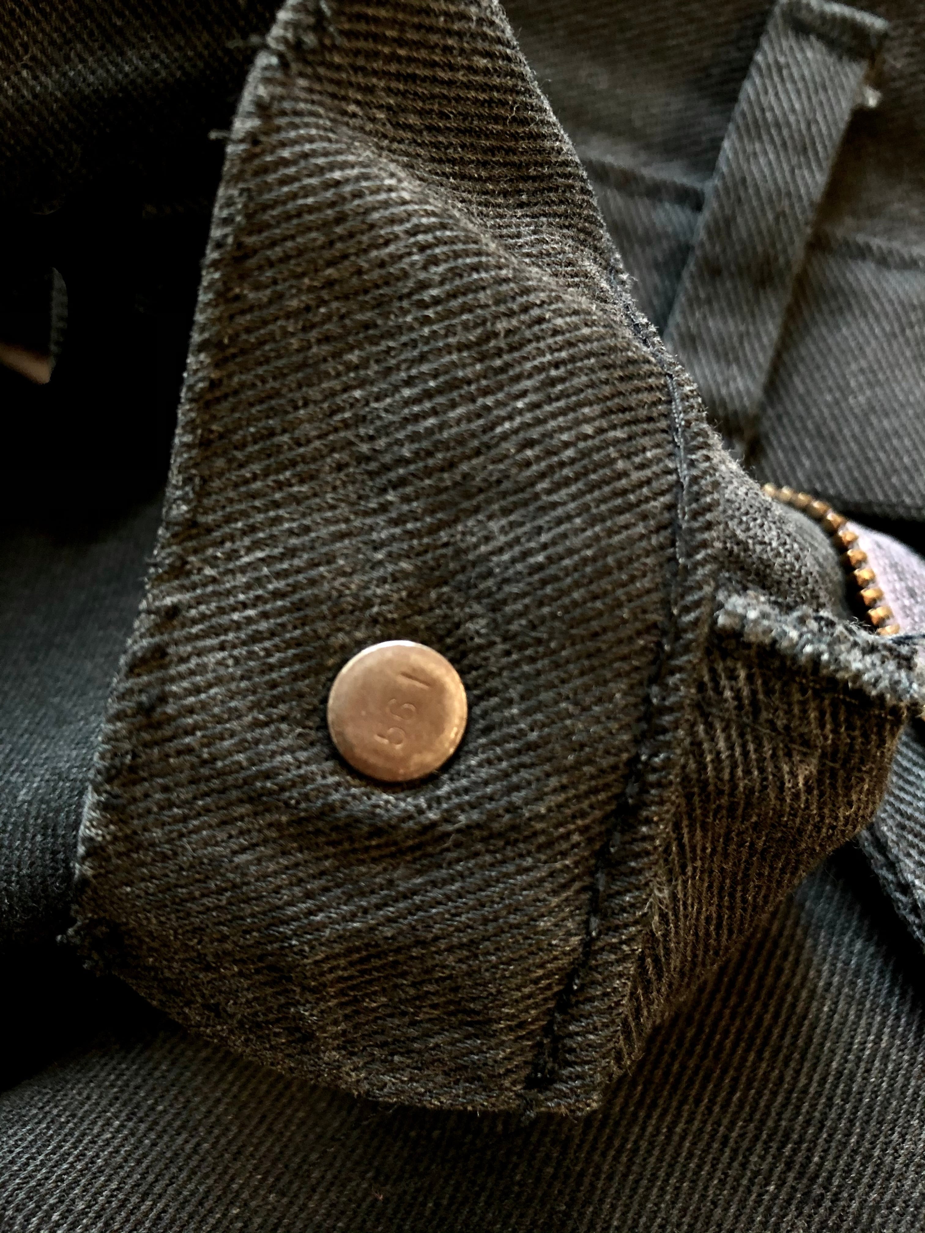 フロント42TALONジッパーにボタン裏561刻印、ポケットはアーキュエイト無しで均等Vとなった黒×金タイプのBig-Eタブ付き、品番こそ確認出来ませんが細かなディティールから518で確定だと思われます。