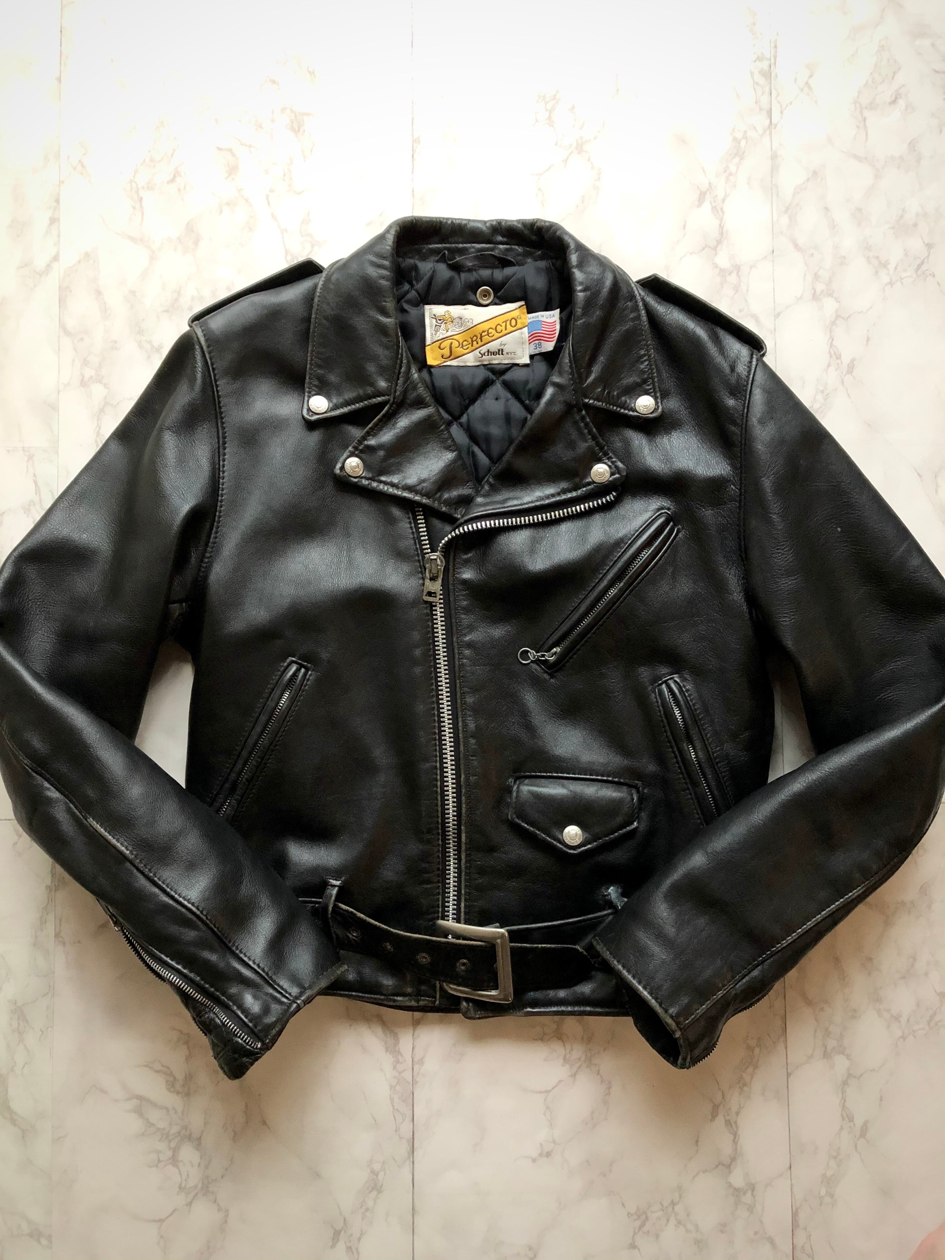 80s USA製 SCHOTT NYC PERFECTO 618 W-RIDERS LEATHER JACKET ショット 本革 ステアハイド レザー ライダースジャケット オールド ビンテージ