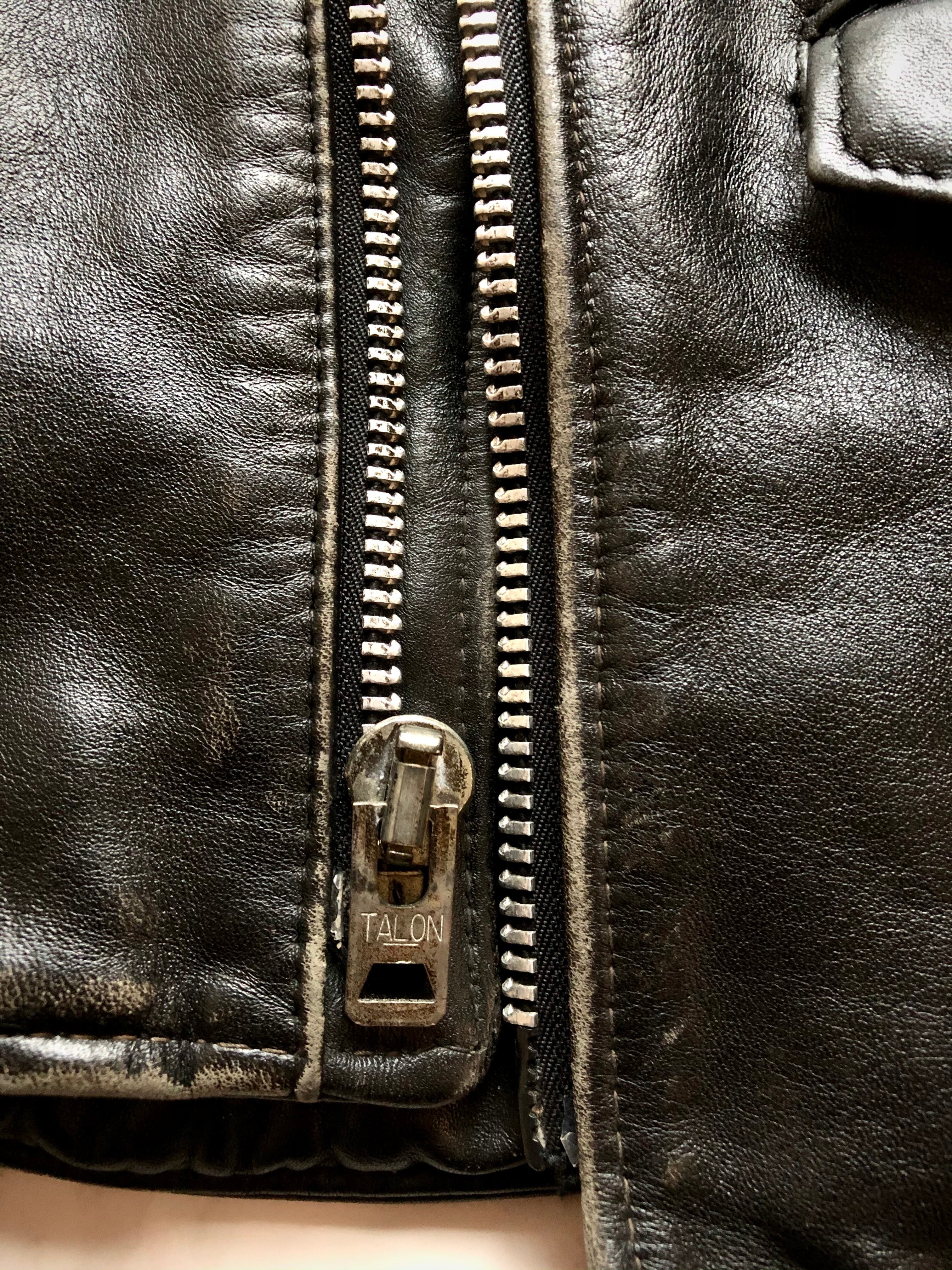 上質でハリコシがあり非常にしっかりとした質感の本革GENUINE LEATHERはステアハイド仕立てとなっており、80sならではのフロントTALONジッパーや袖先IDEAL、首元に付いた旧バイクタグ等のディテールで、年代によりバラつきはありますが革の質感は非常に良く正にホンモノと呼ぶに相応しい質実剛健なライダースジャケットです。