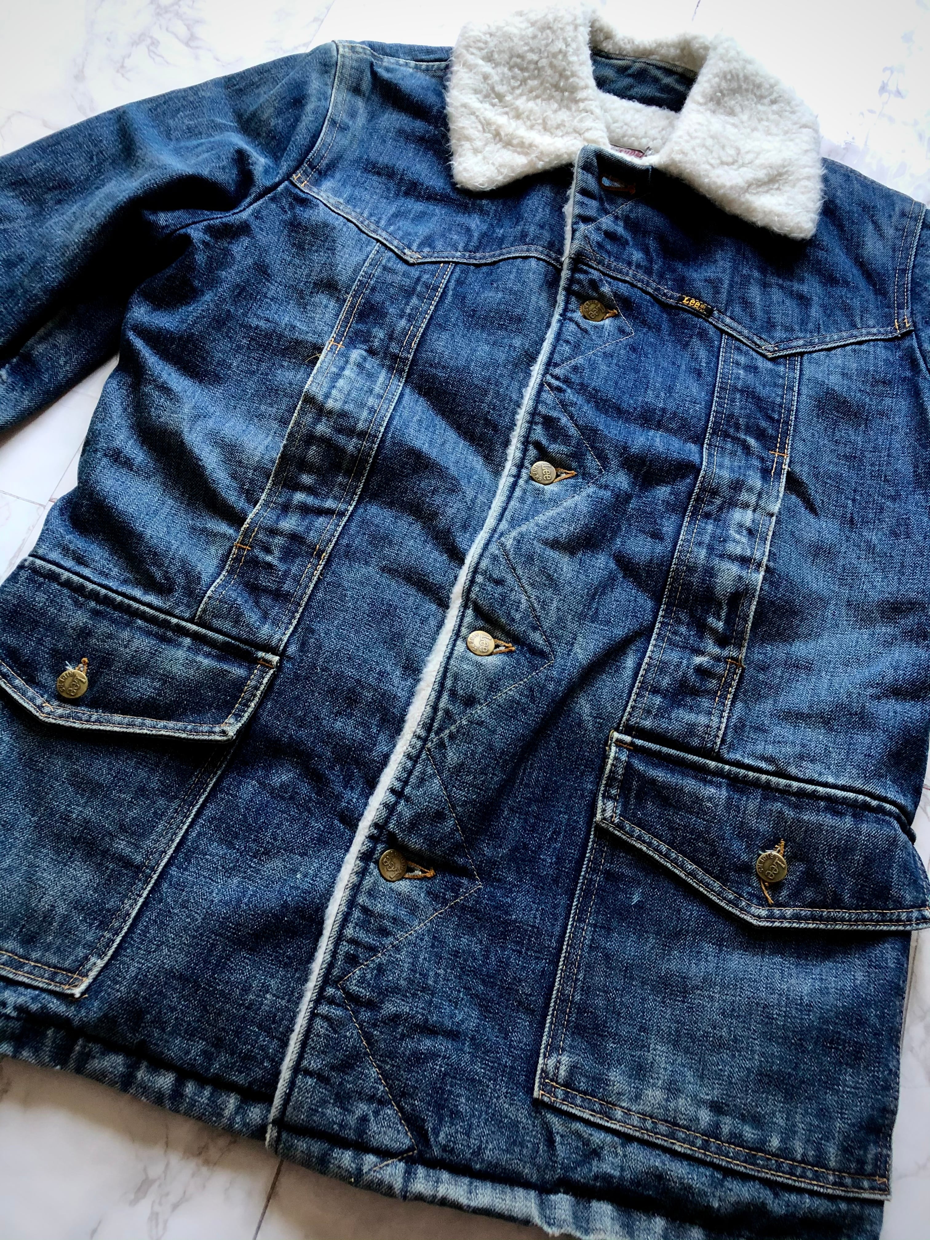 70s〜 MADE IN USA LEE STORM RIDER DENIM BOA JACKET 220 MIDDLE OLD VINTAGE 。