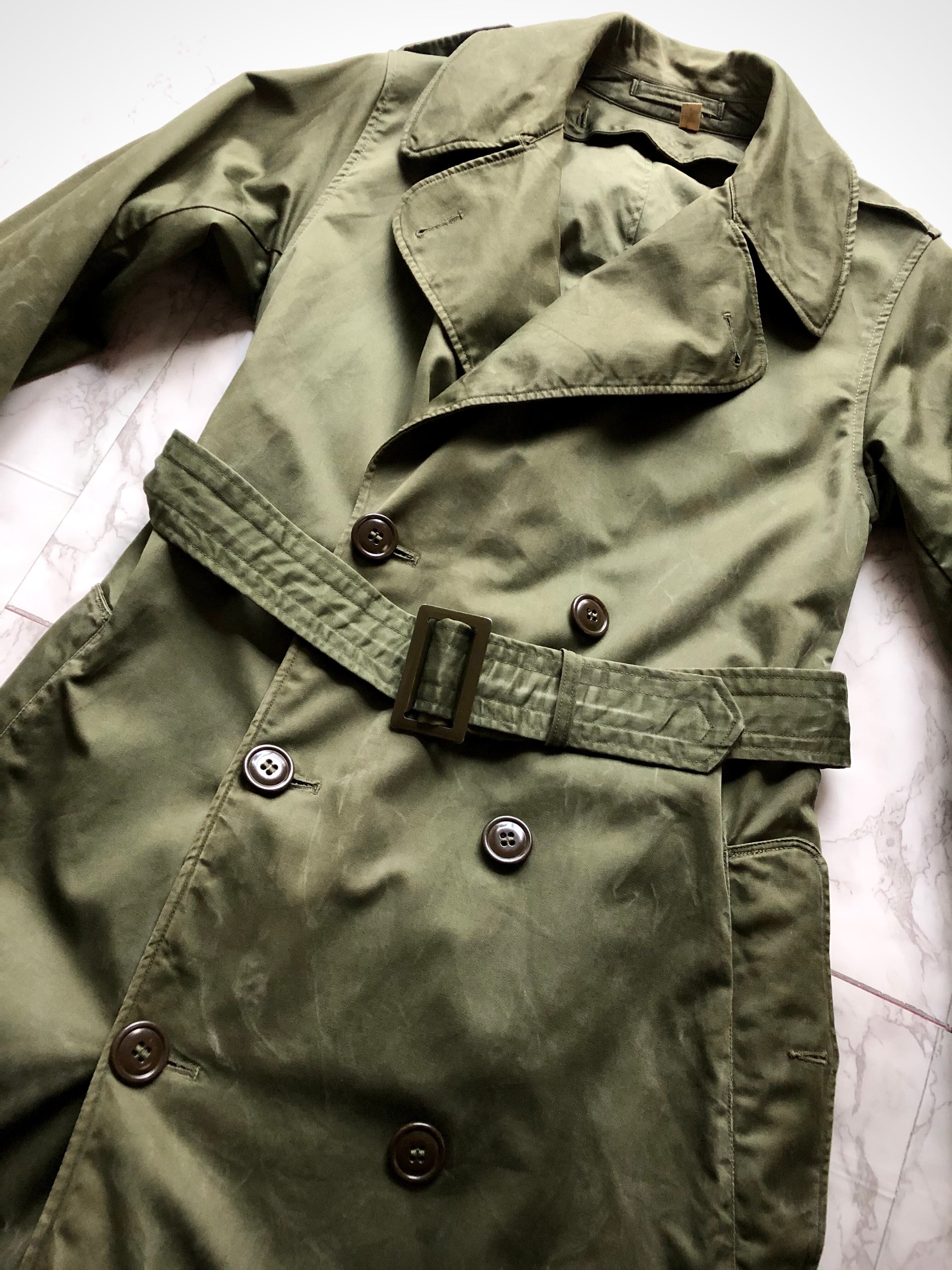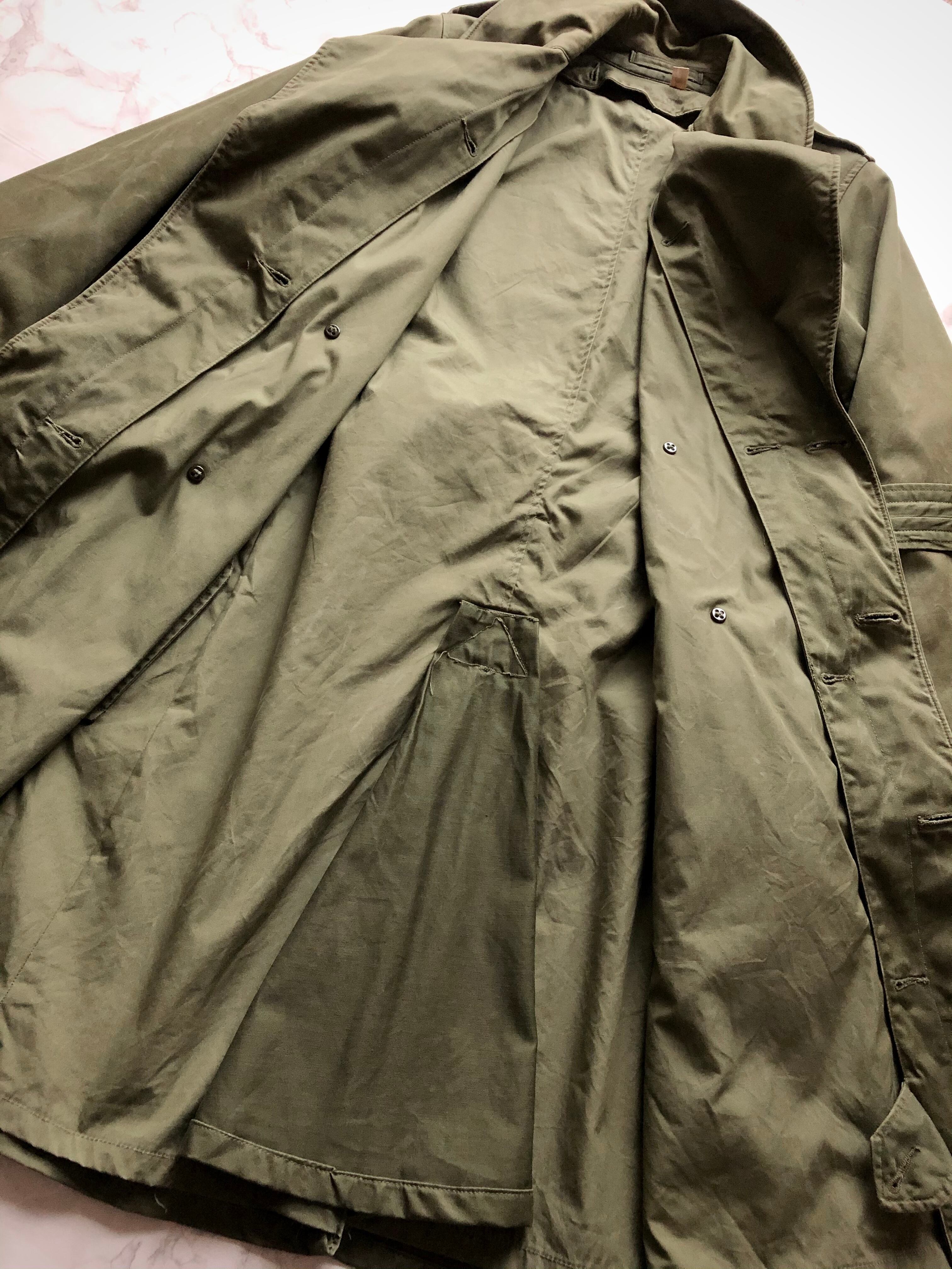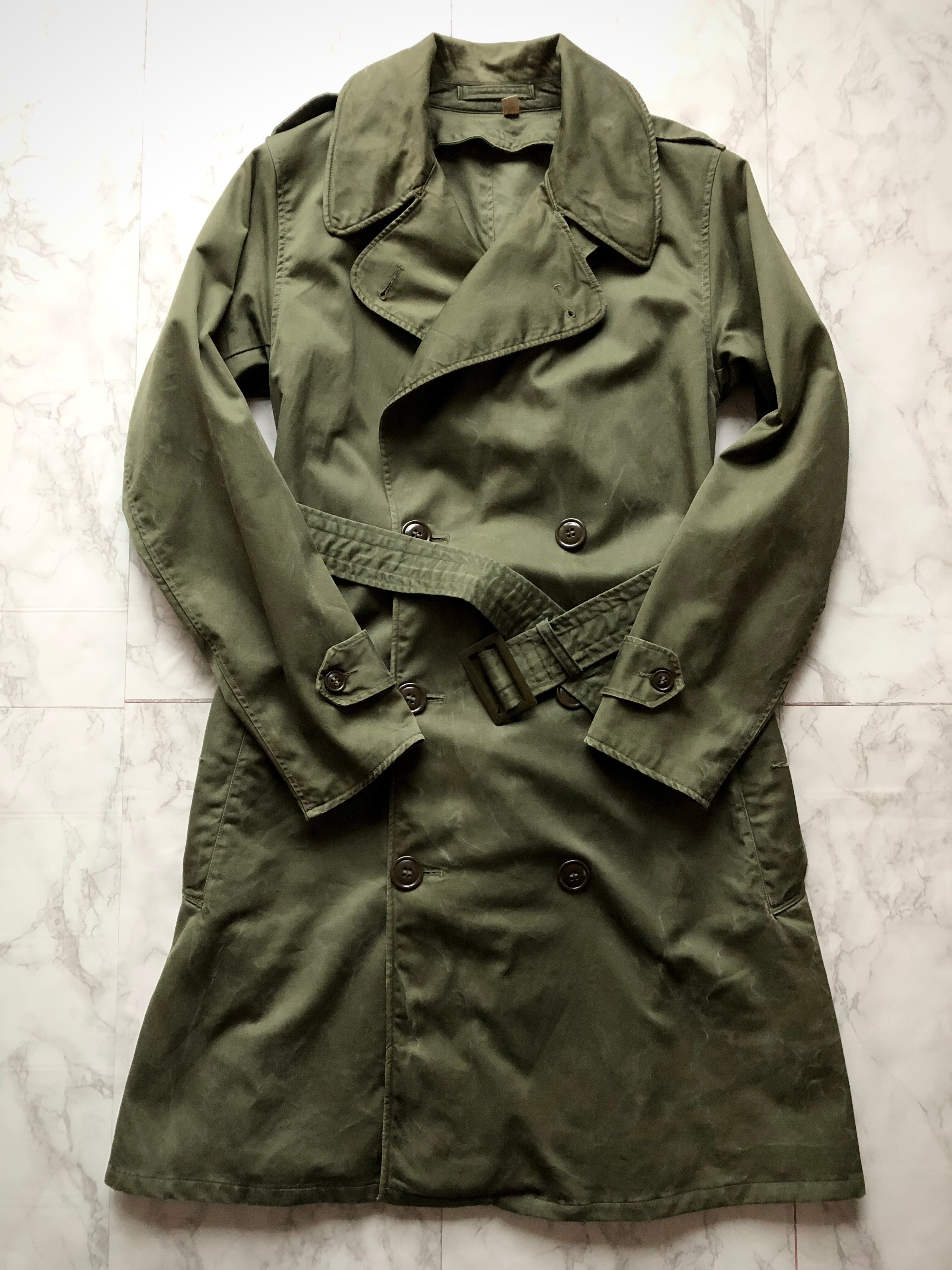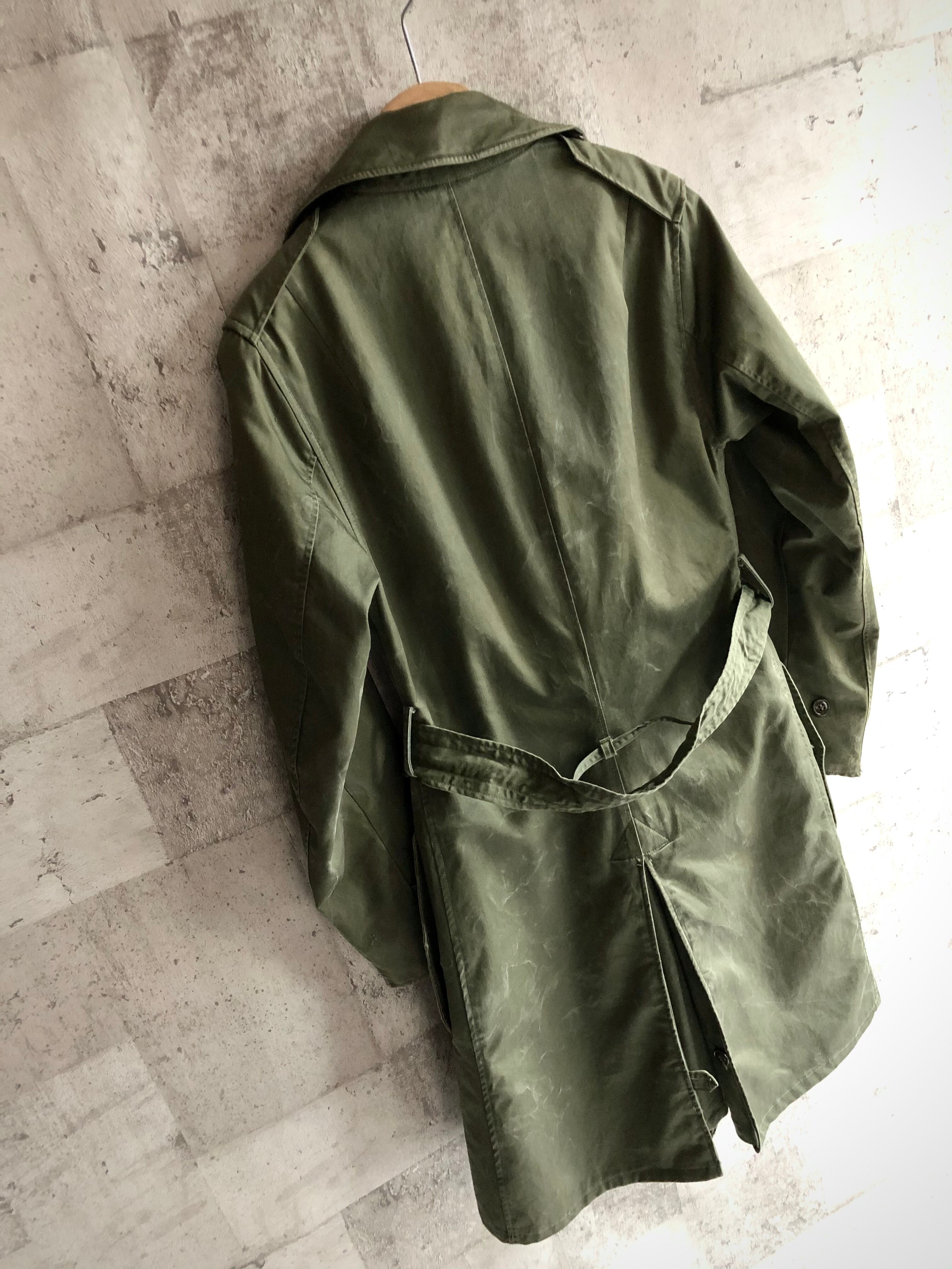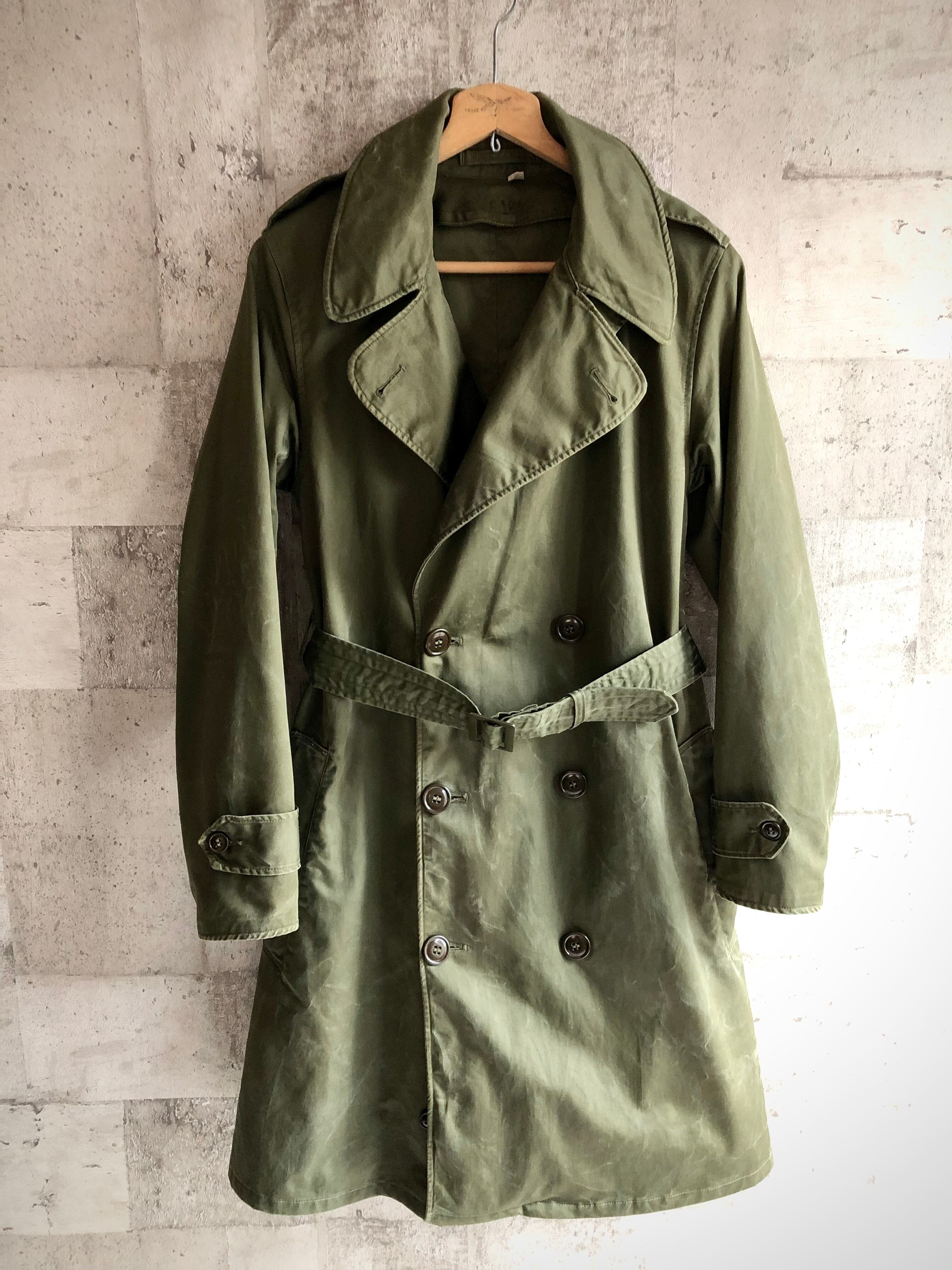 滑らかな曲線で美しいAラインシルエット、トレンチコートタイプなので普段のコーディネートにも取り入れやすく現在では非常に希少となってしまった50年代のミリタリーVINTAGE、お好きな方は是非この機会にいかがでしょうか。