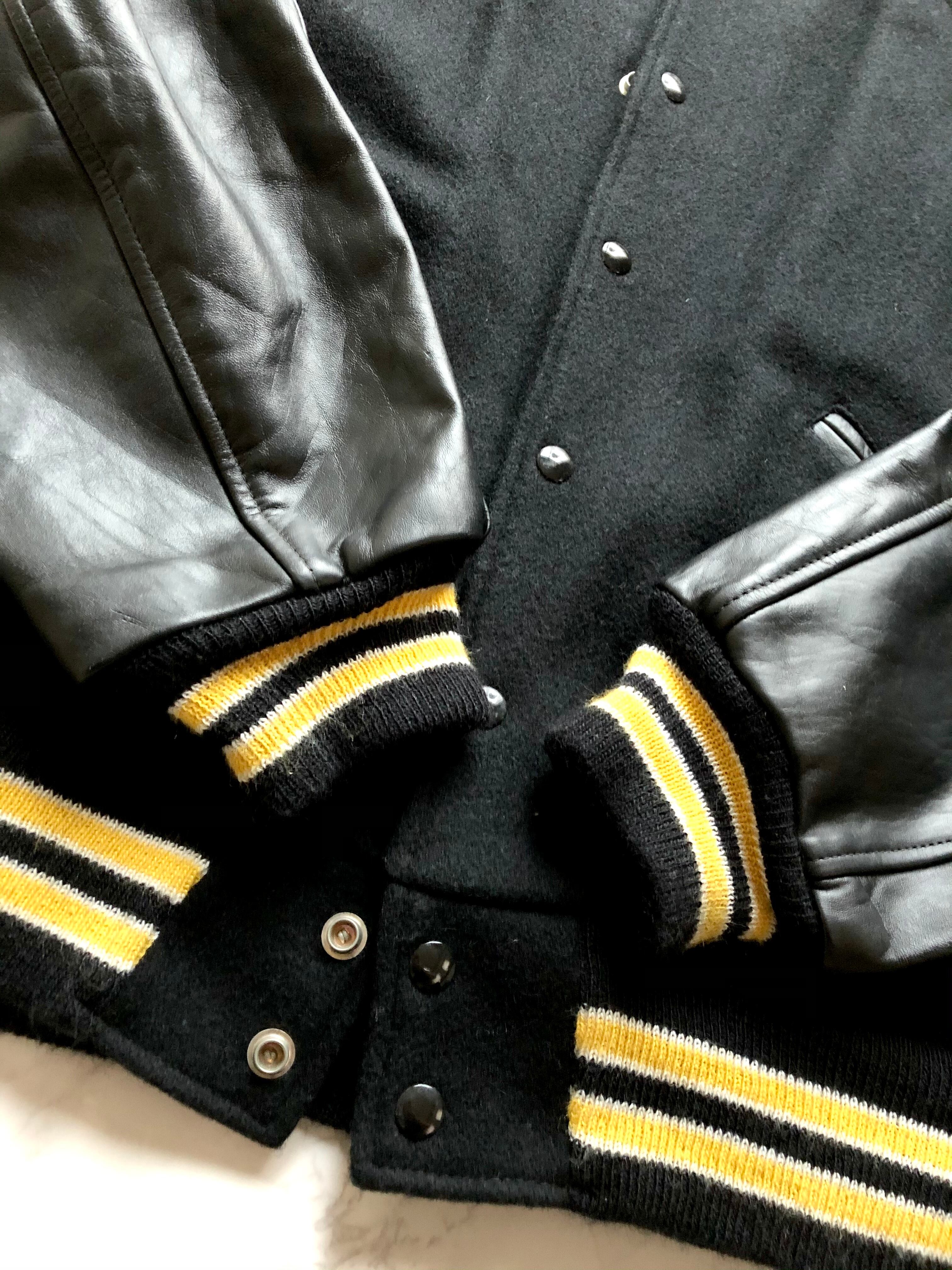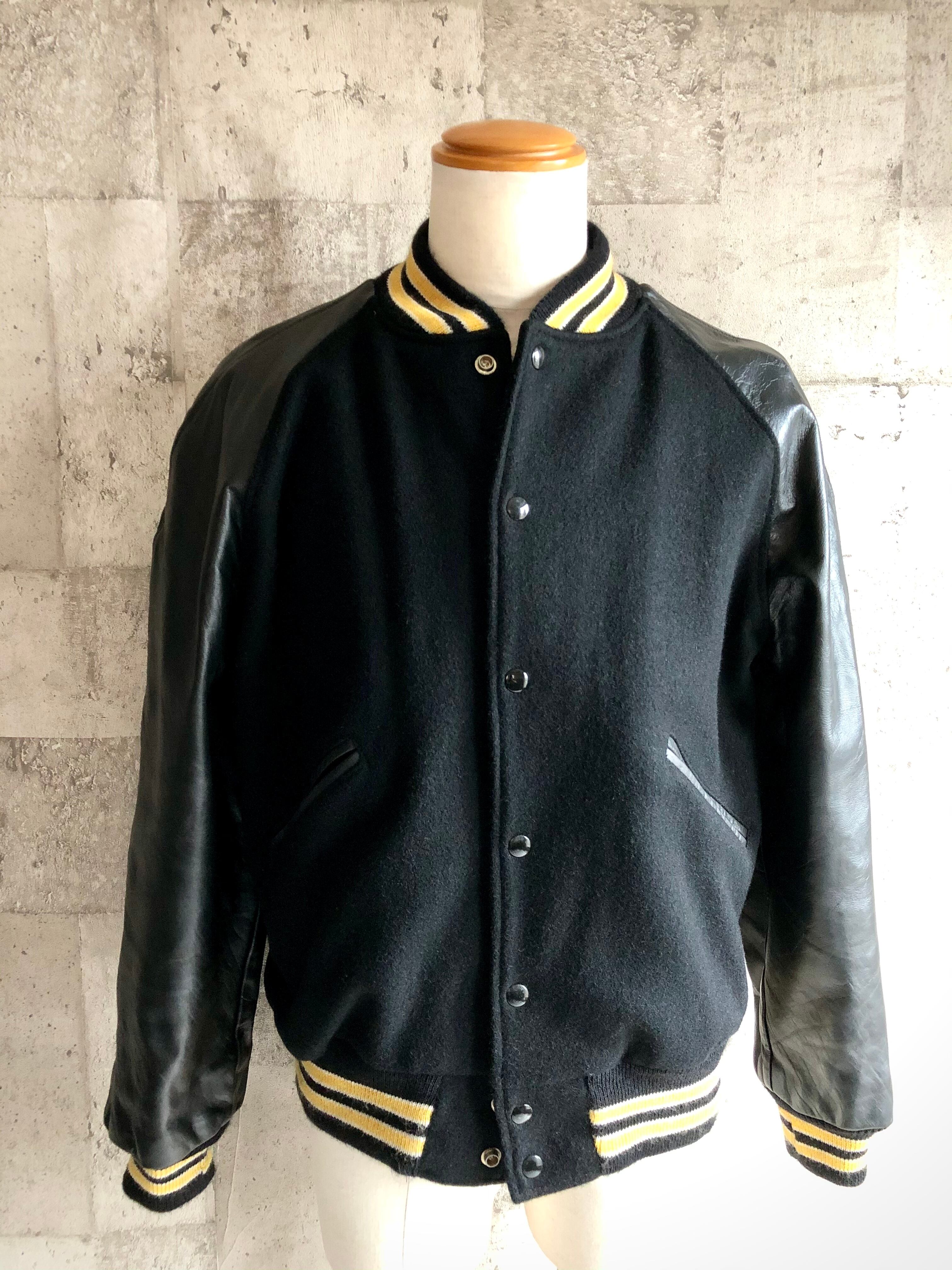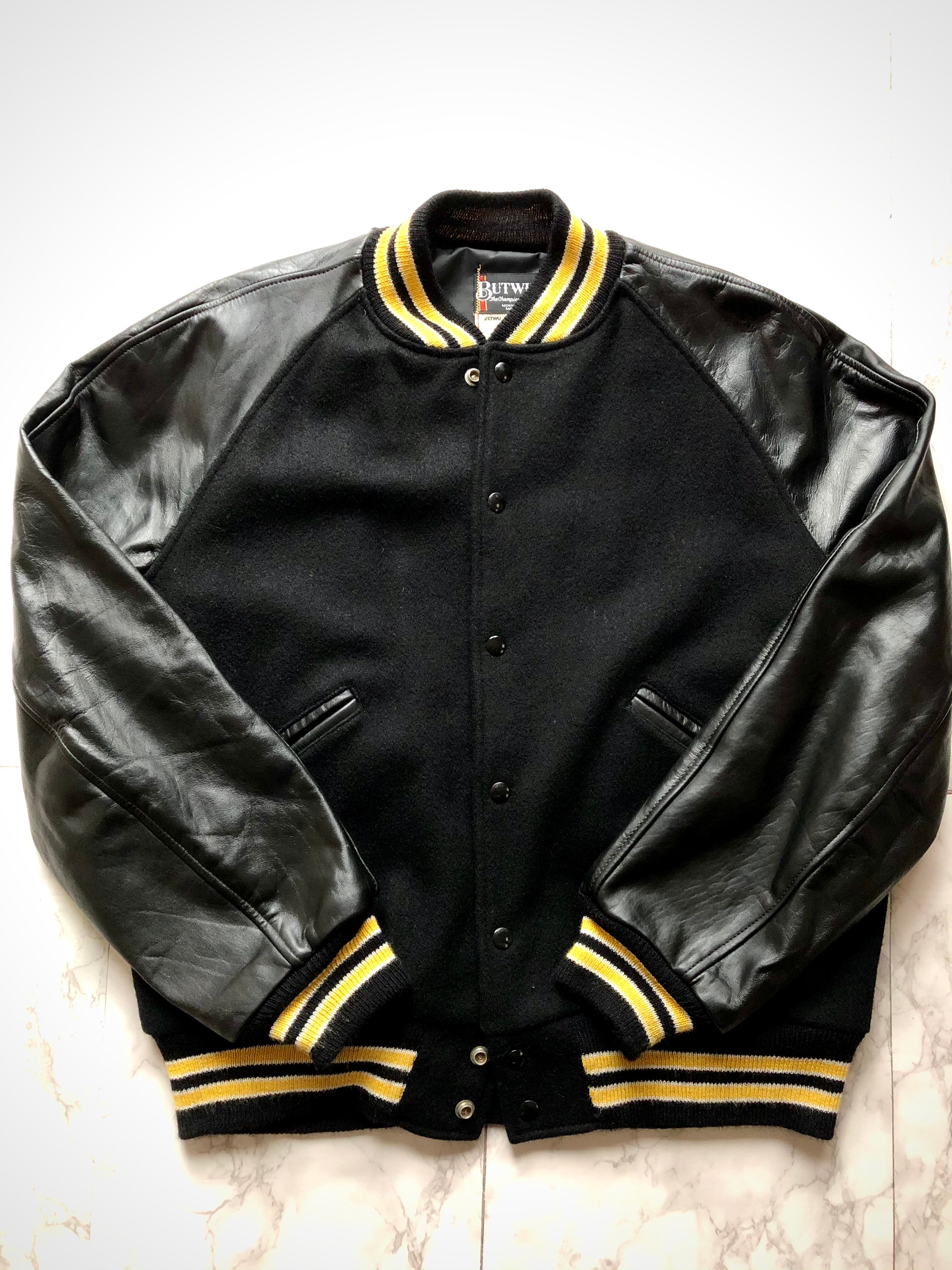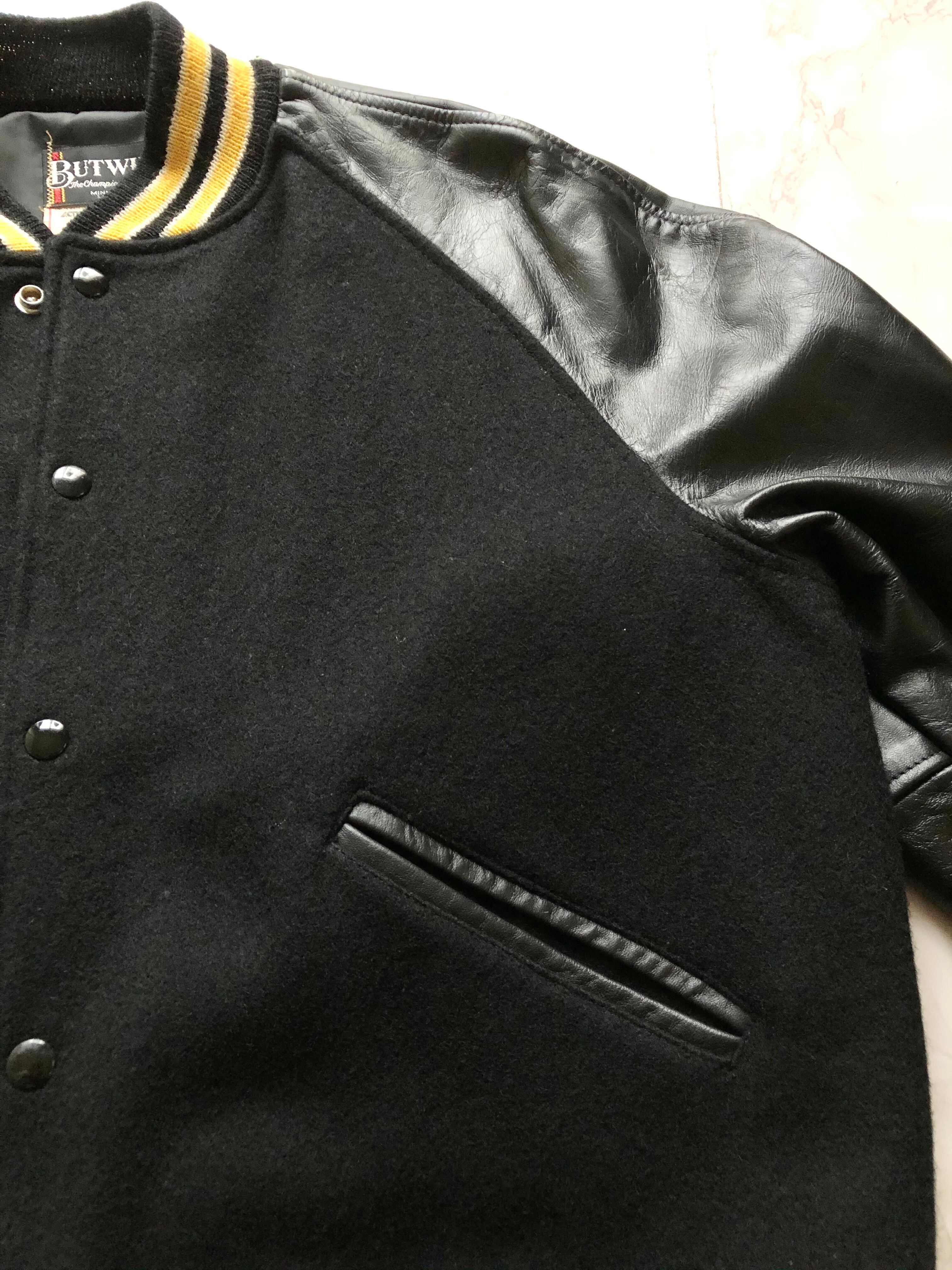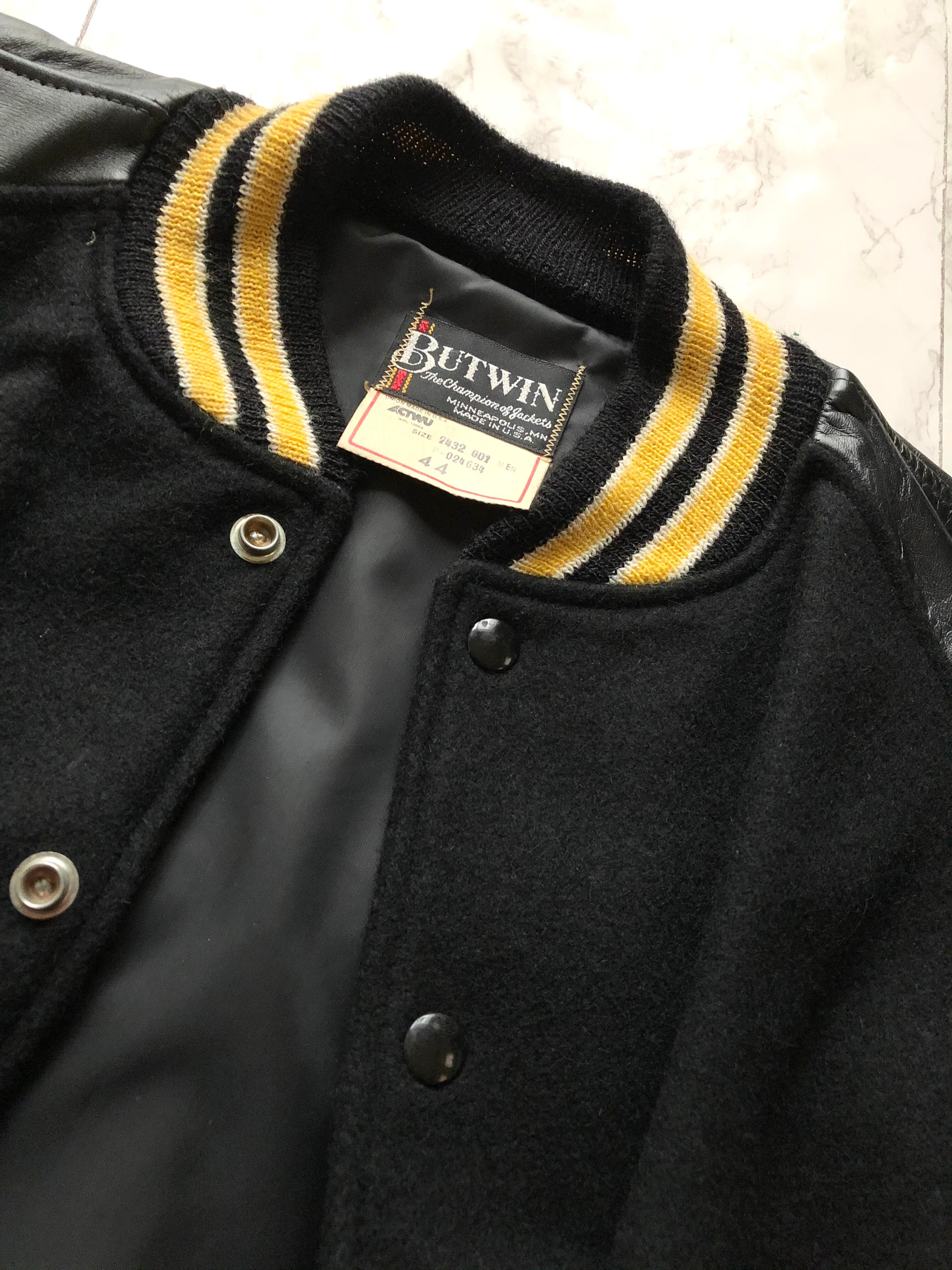 80s〜 MADE IN USA BUTWIN BLACK × YELLOW RIB LINE TWO TONE TYPE AWARD JACKET OLD VINTAGE 。