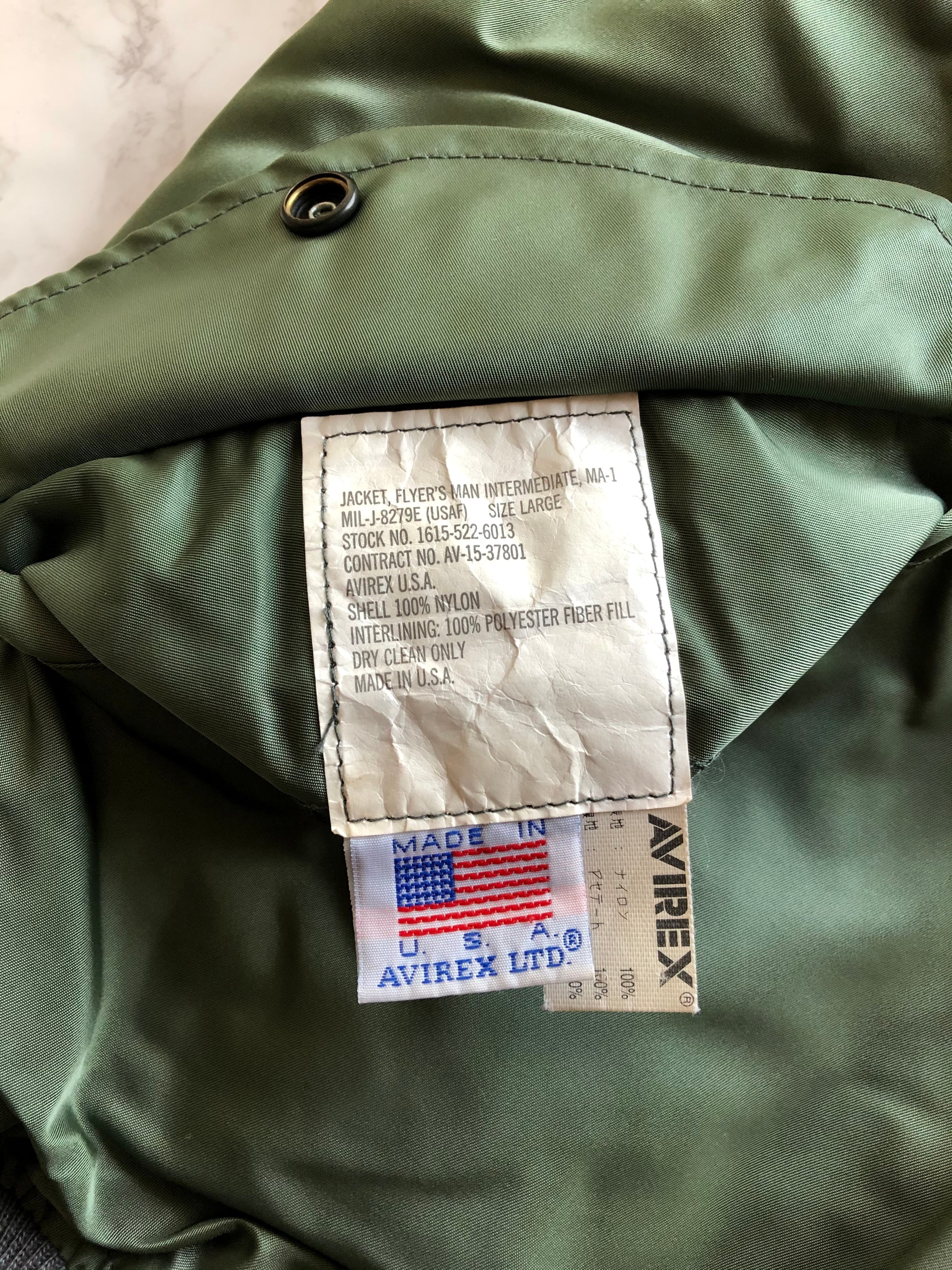 90s〜00s USA製 AVIREX MA-1 FLYER’S JACKET MIL-8279E USAF-TYPE アヴィレックス MA1 フライトジャケット オリーブ 廃番 オールド ビンテージ