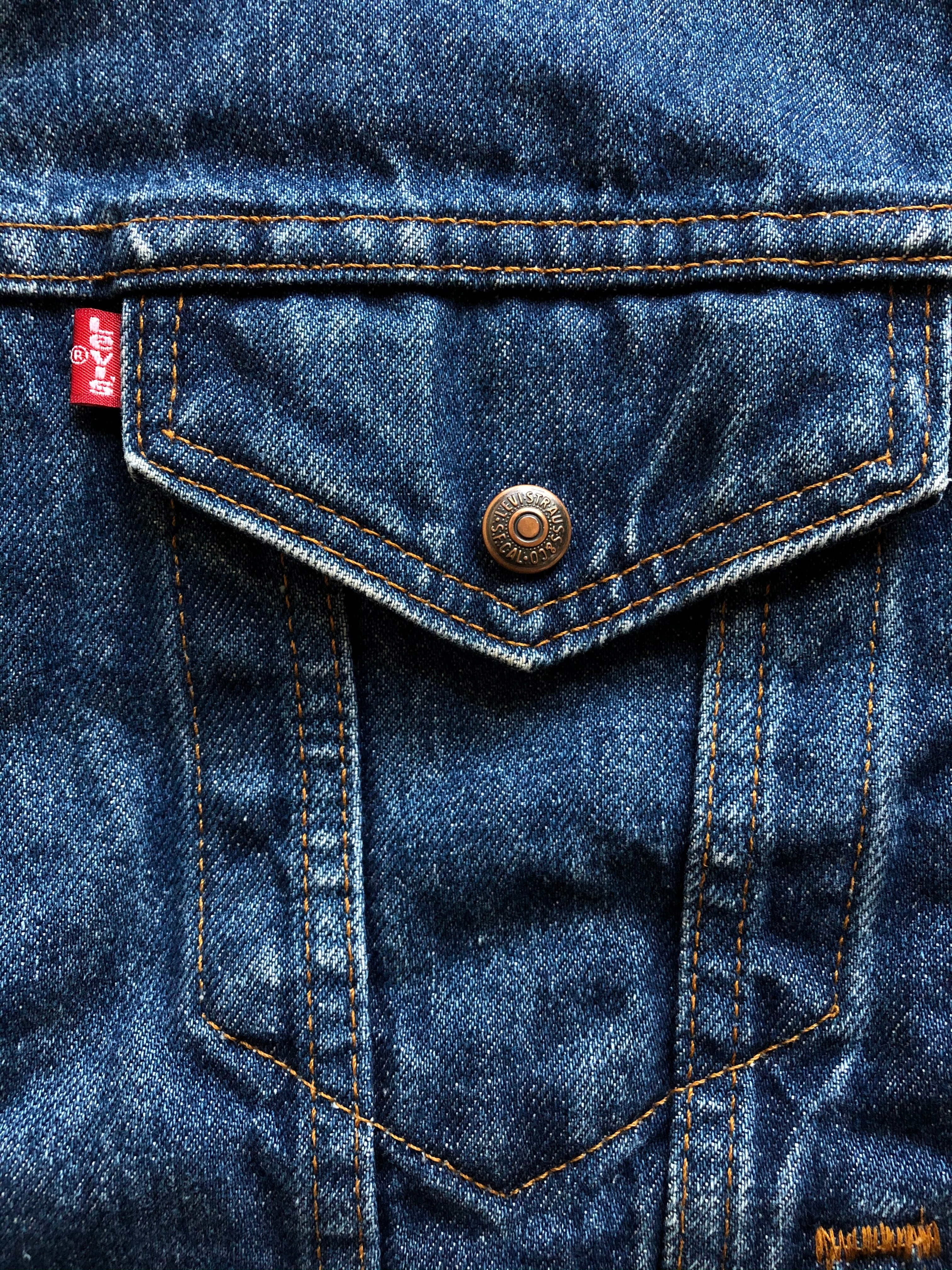 80年代辺りからのディティールでもあるホワイトベースにレッドカラーの刺繍タグが付き、ボタン裏は527刻印と当時物ならではのディテール、全体的に色残りの良い濃紺状態で使用感が少なく、古さを感じさせない絶妙な雰囲気の綺麗なビンテージアイテムです。